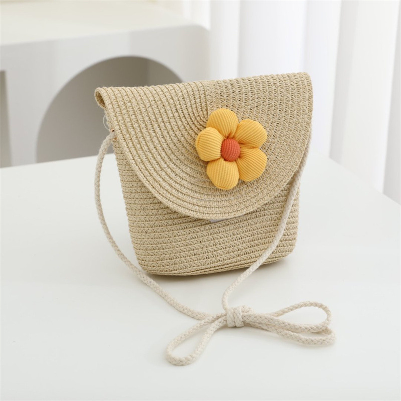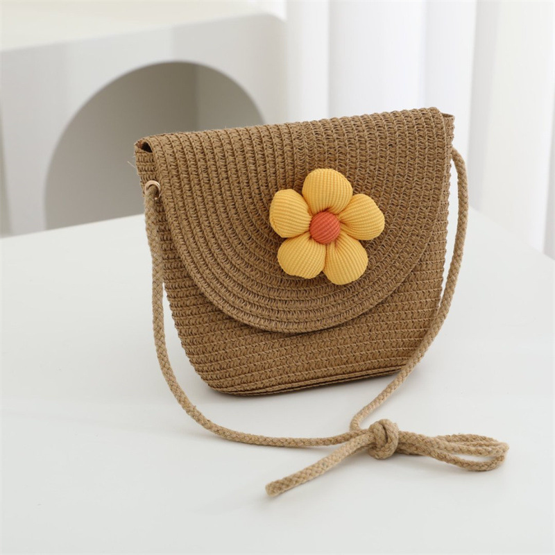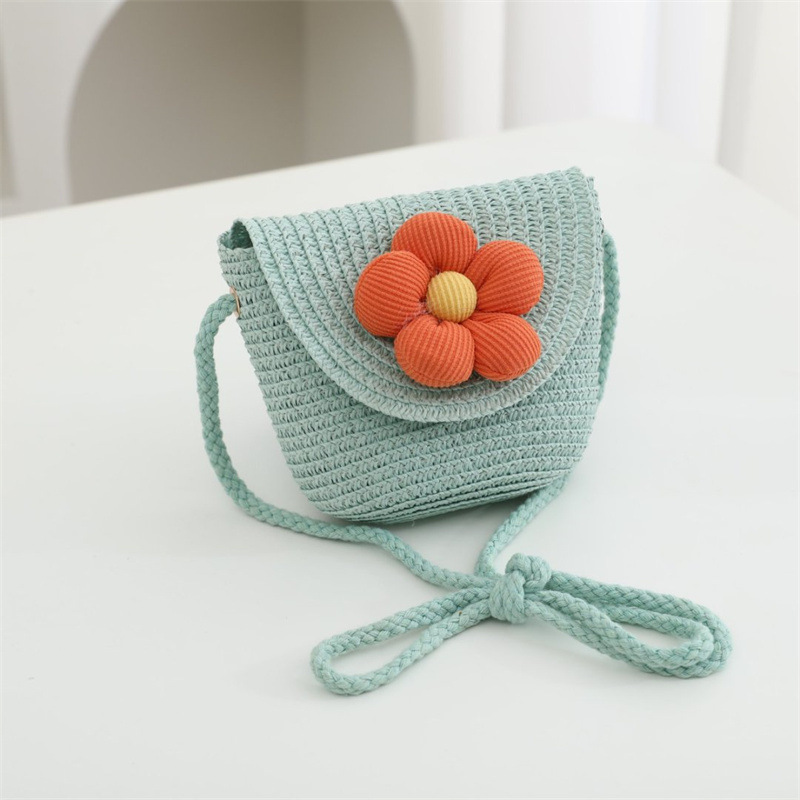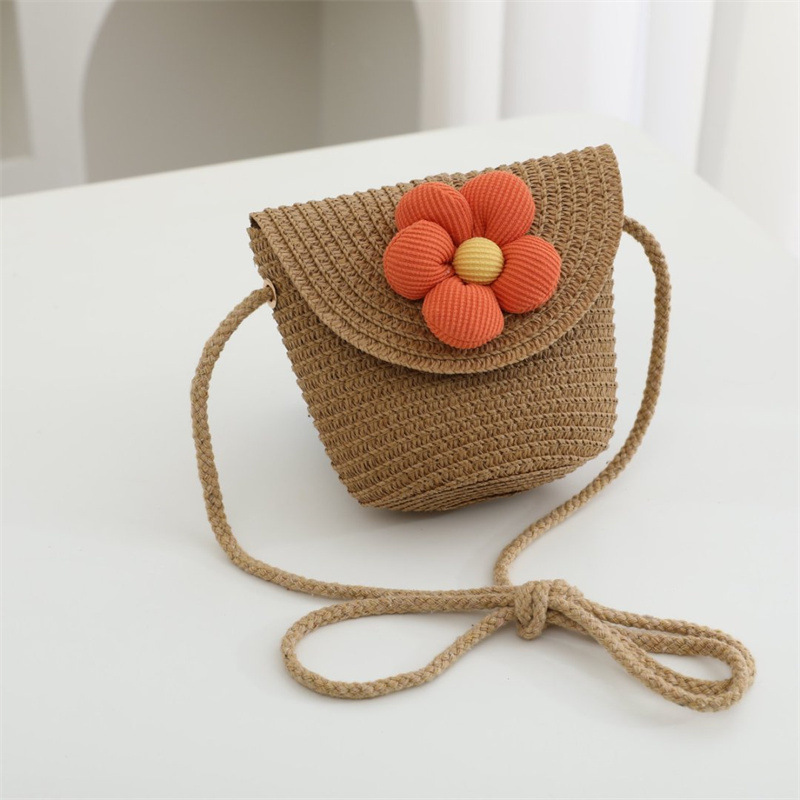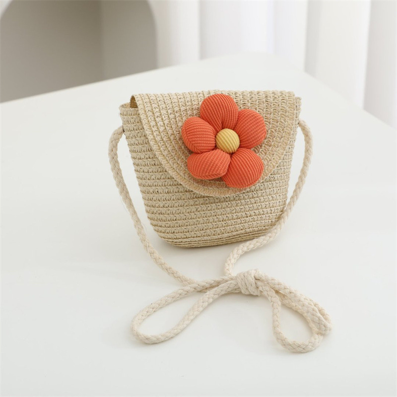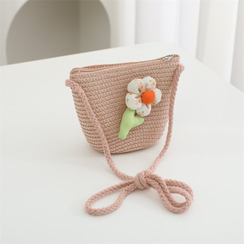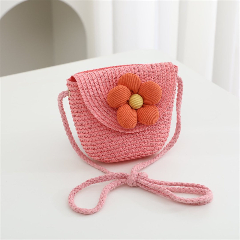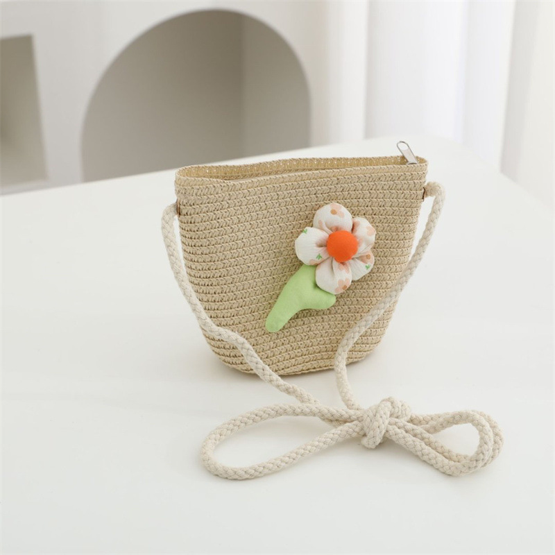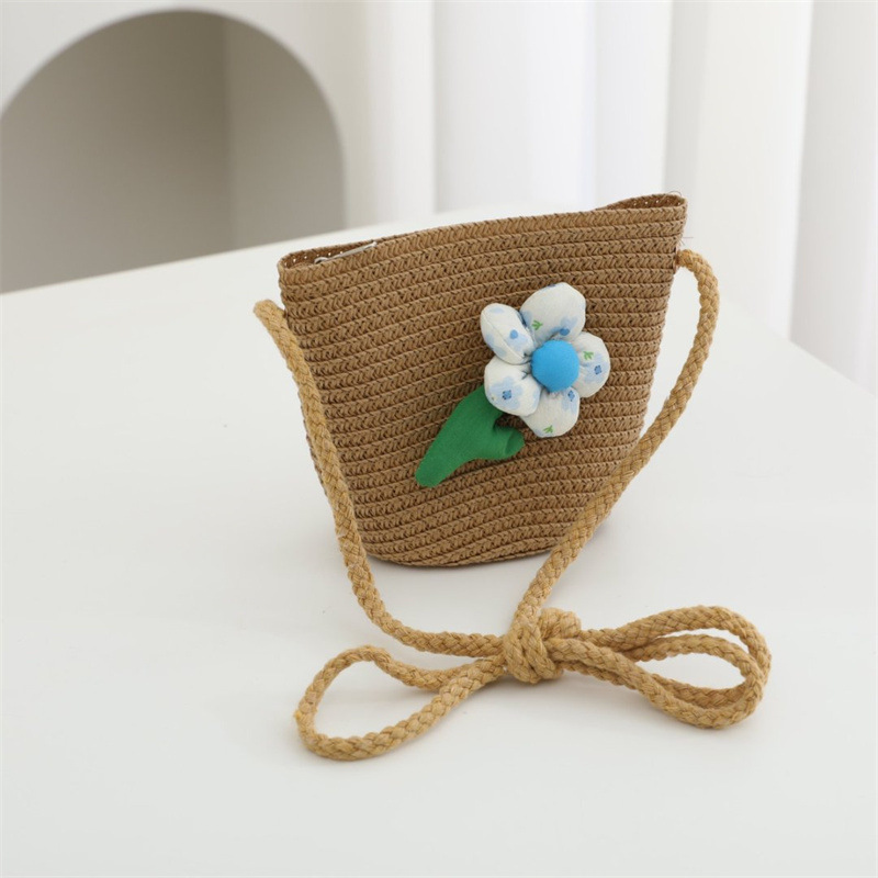 Ins 스타일 소녀 가방 어린이 밀짚 가방 여름 꽃 가방 창조적 인 동전 지갑 아기 크로스 바디 가방 어깨 가방