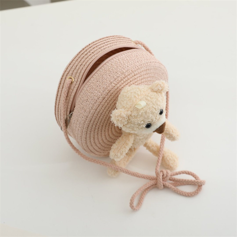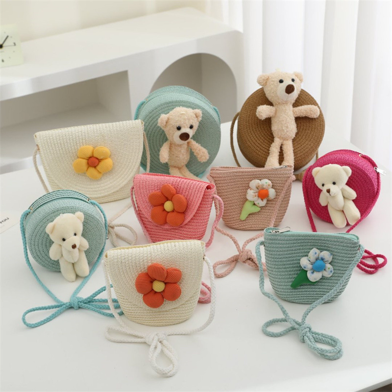 Ins 스타일 소녀 가방 어린이 밀짚 가방 여름 꽃 가방 창조적 인 동전 지갑 아기 크로스 바디 가방 어깨 가방스토어 가기