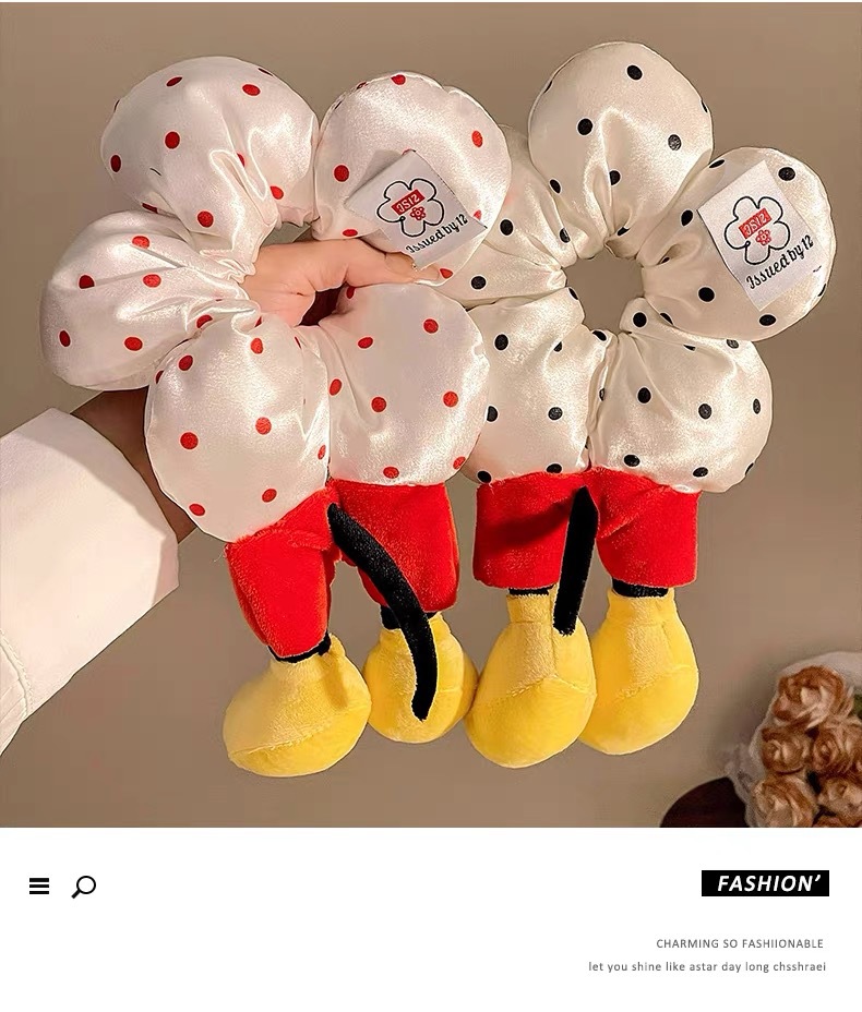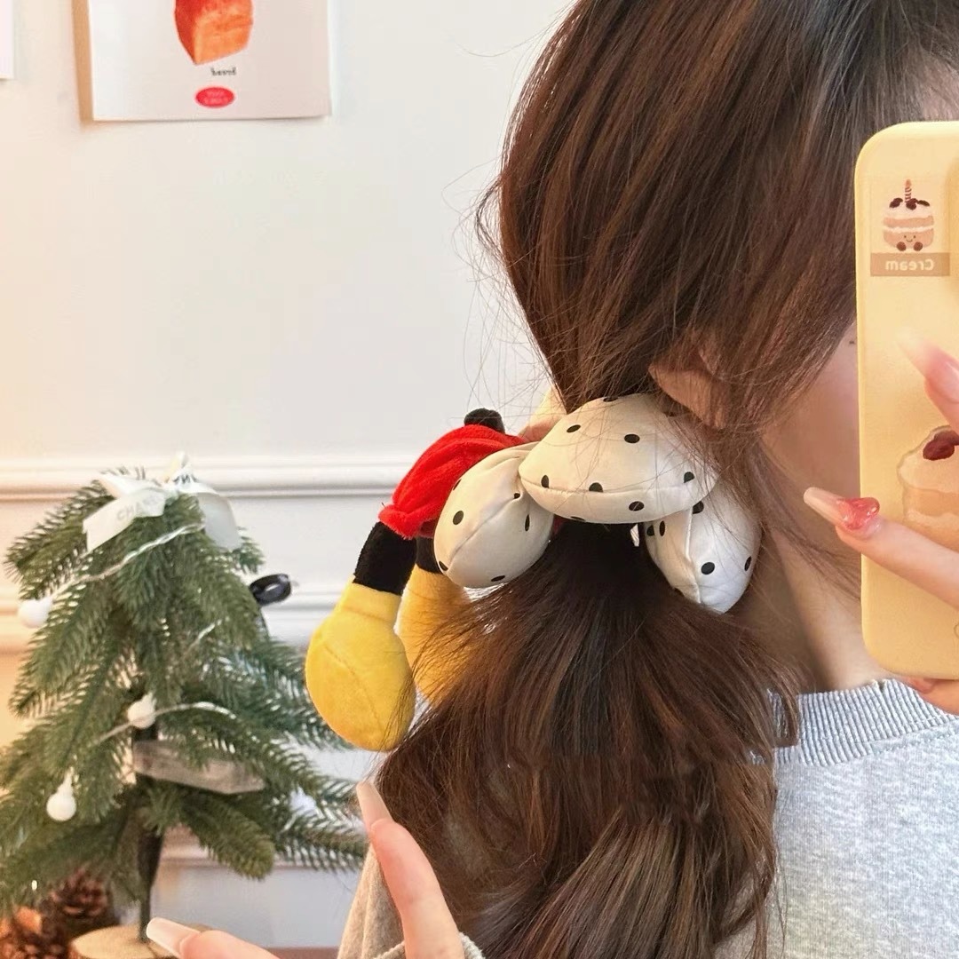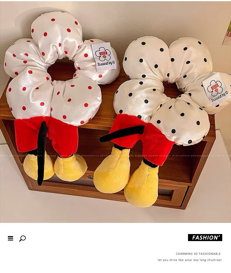 미키 꽃 웨이브 포인트 방귀 대장 머리 반지 여성 귀여운 봉제 공 머리 꽃 공주 가을 고무 밴드 헤어 액세서리스토어 가기