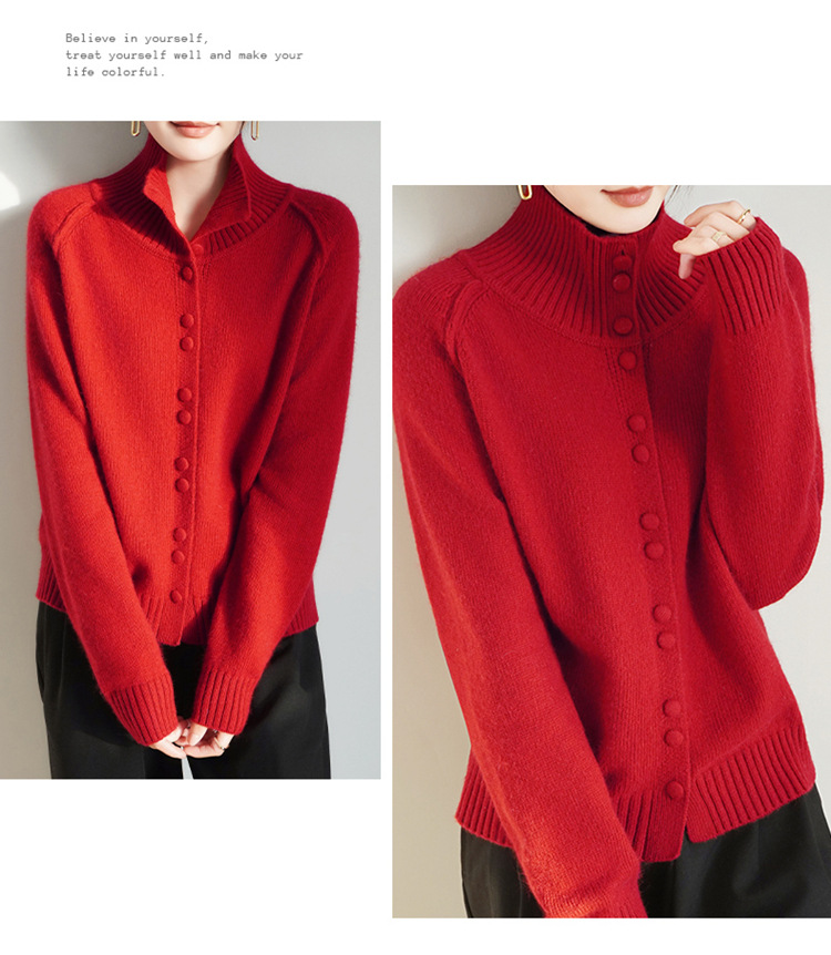푸위안 모직 스웨터 칼라 니트 카디건으로 새해 전쟁 로브 두꺼운 새로운 하이 엔드 센스 탑 겨울 여자 레드 스웨터