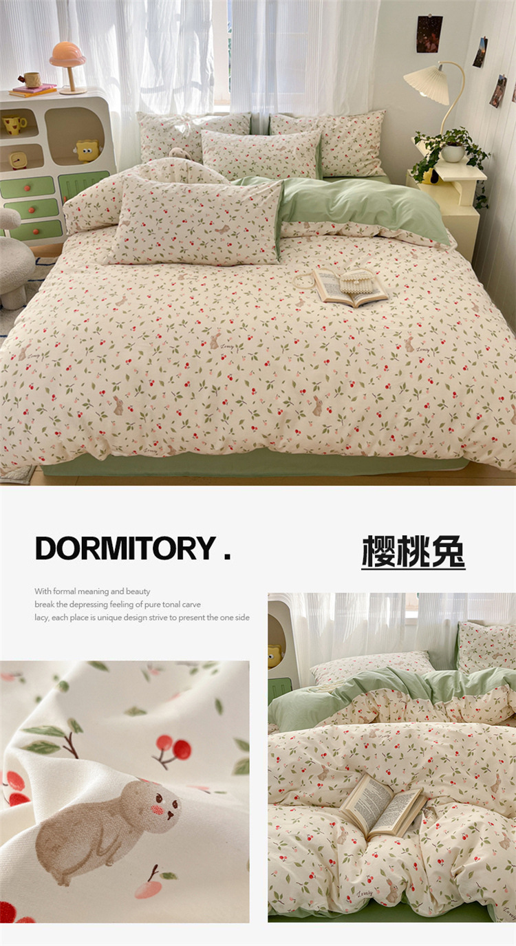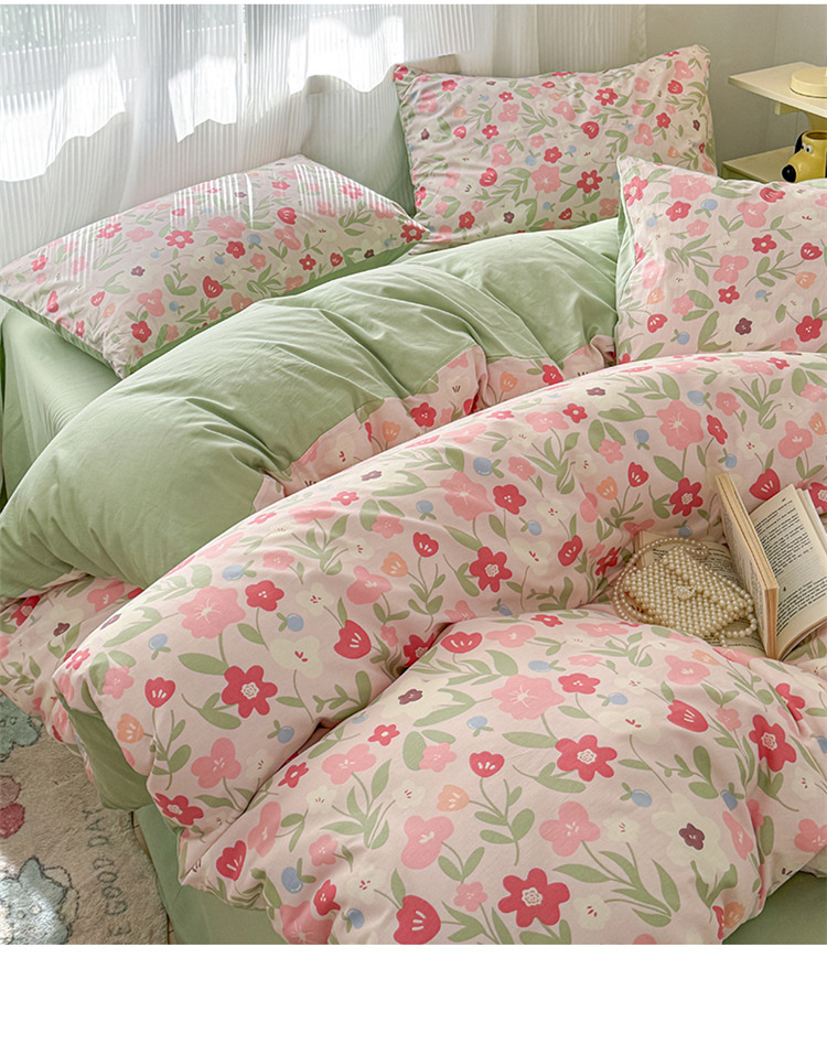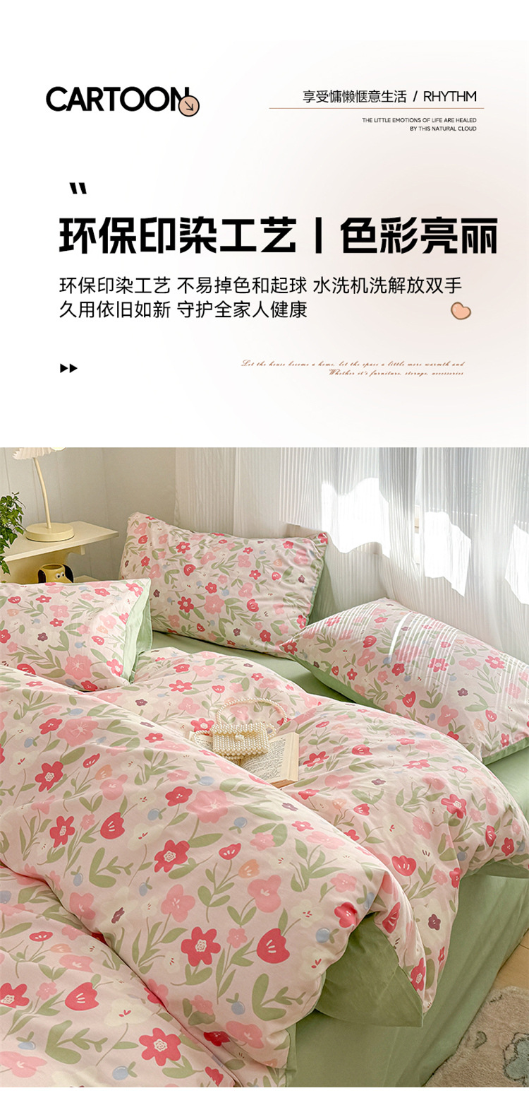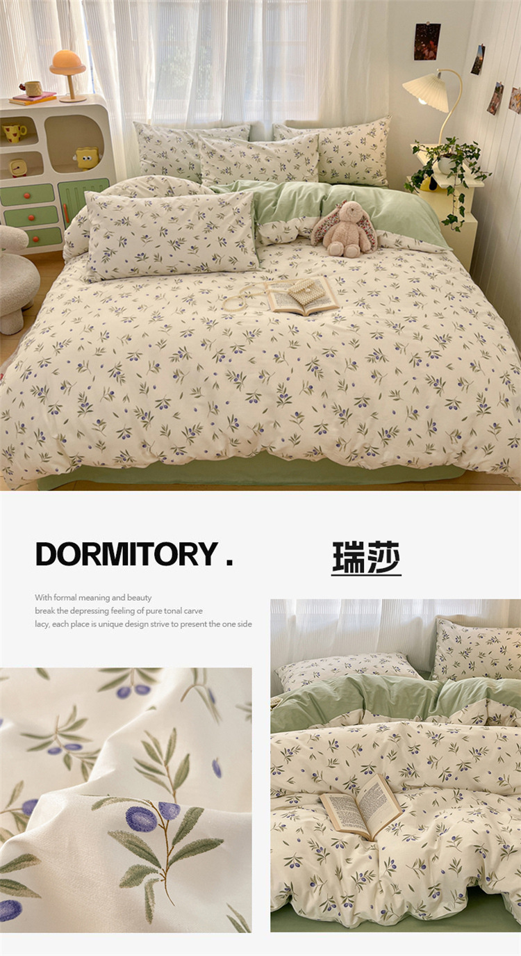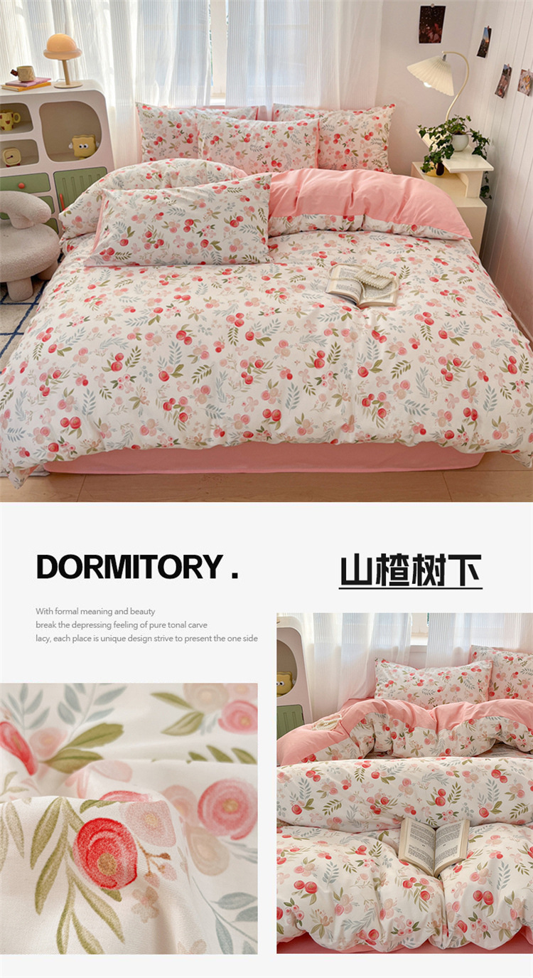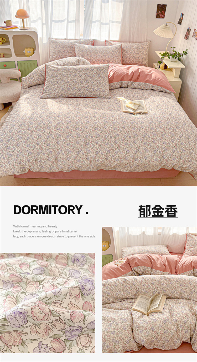 순수한면 4 피스면 2025 새로운 침구 작은 신선한 꽃 싱글 퀼트 커버 기숙사 침대 모자 3 피스 세트스토어 가기