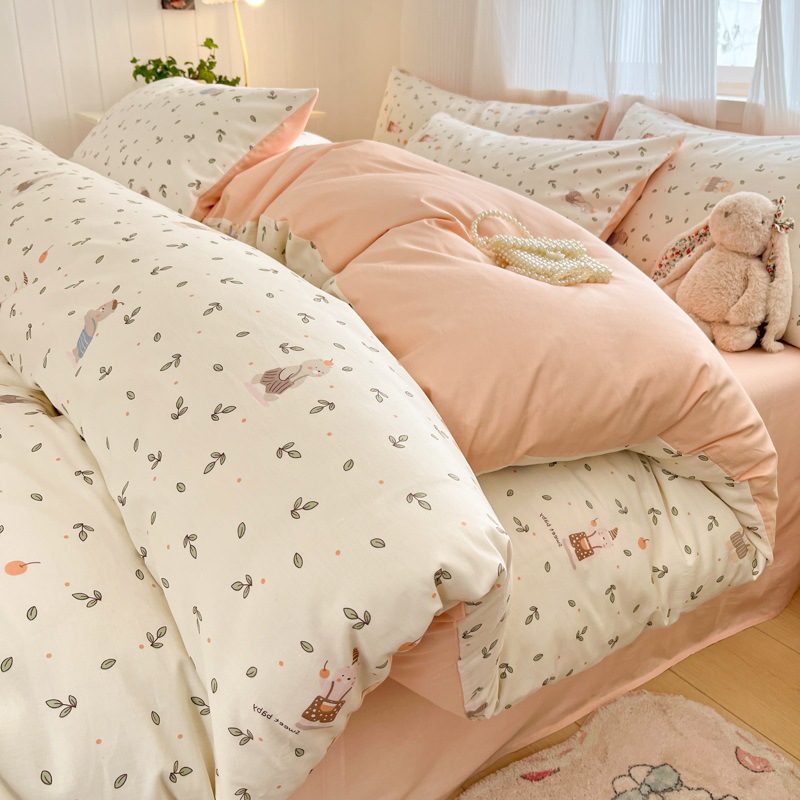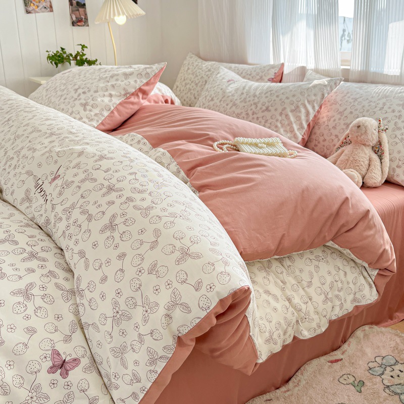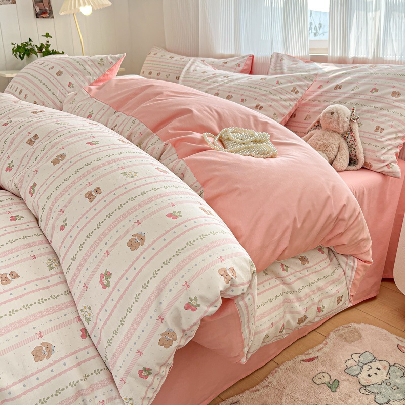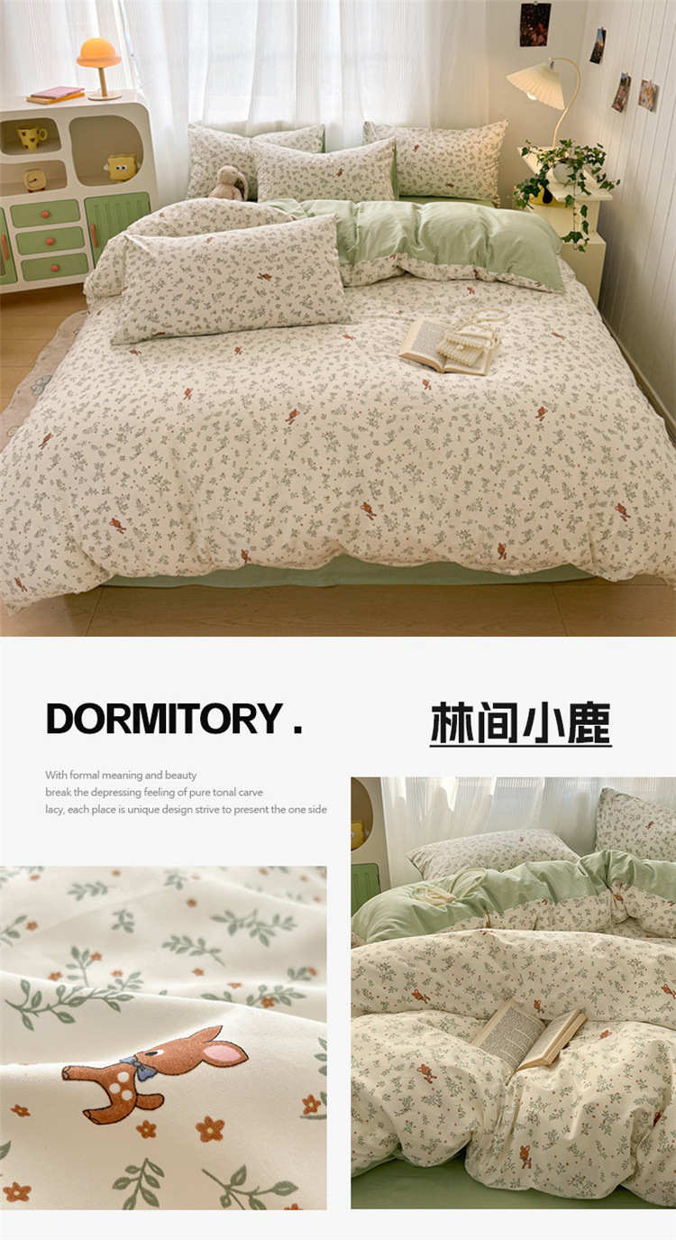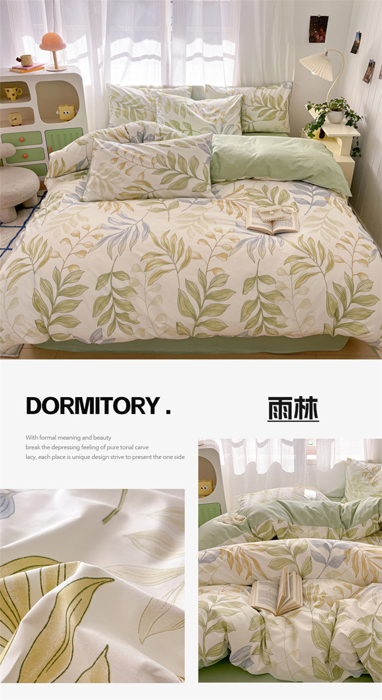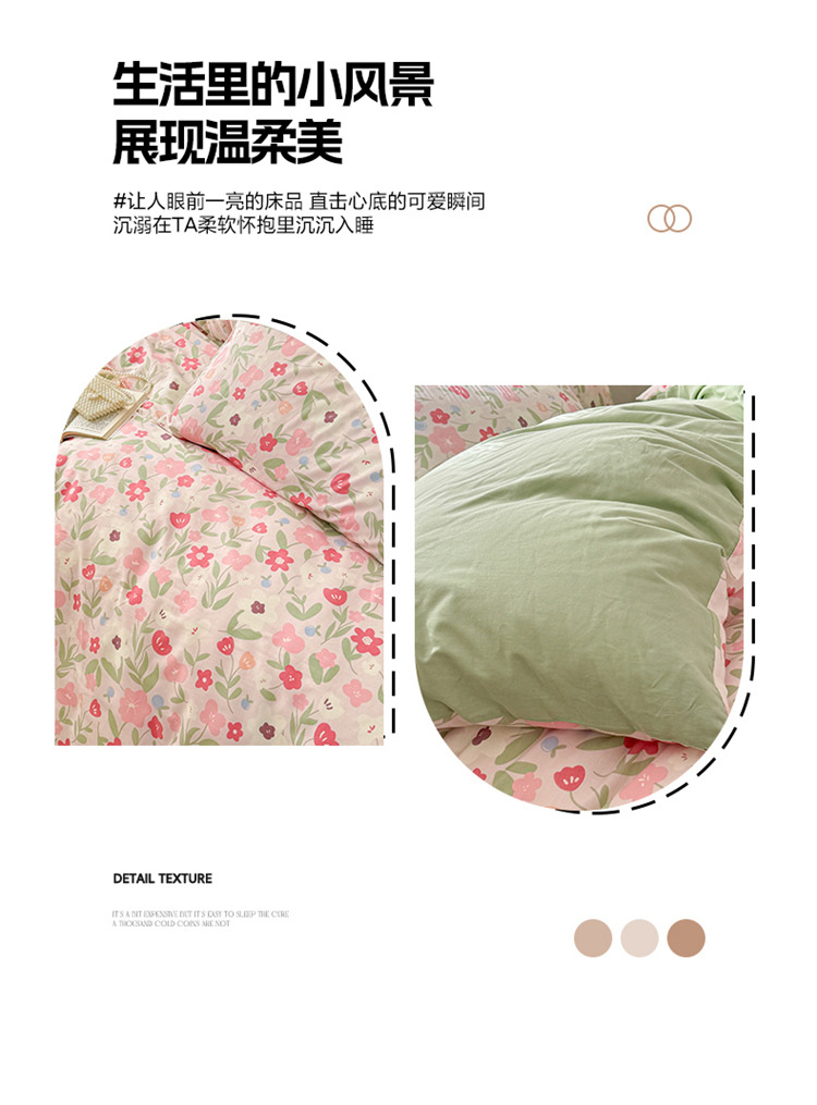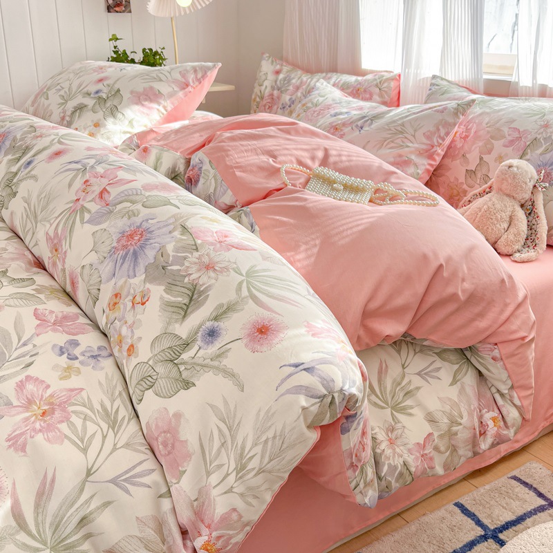 순수한면 4 피스면 2025 새로운 침구 작은 신선한 꽃 싱글 퀼트 커버 기숙사 침대 모자 3 피스 세트스토어 가기
