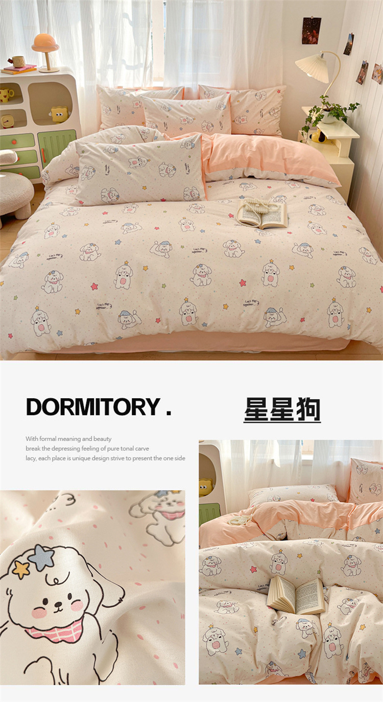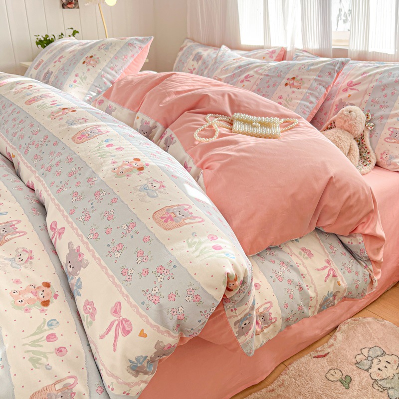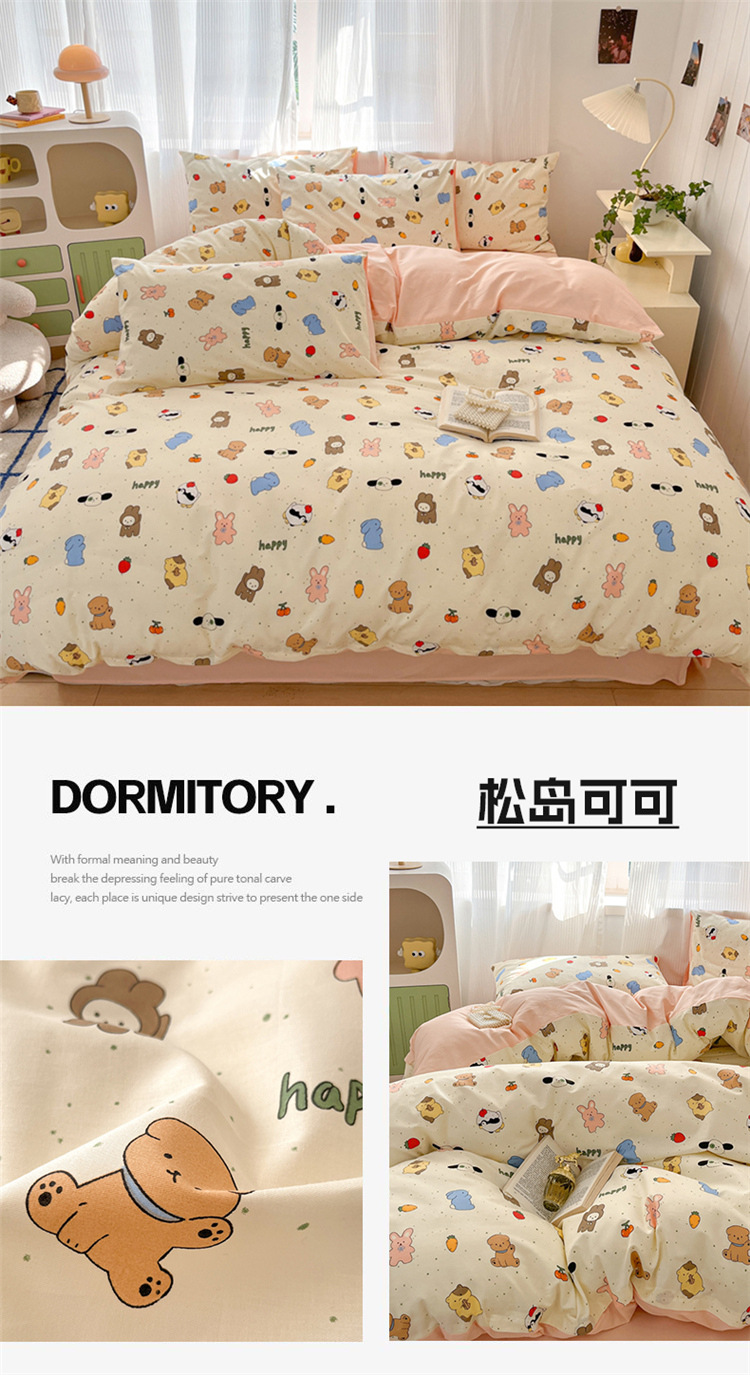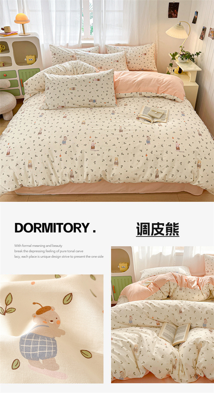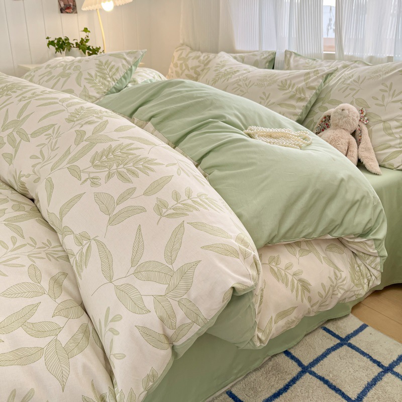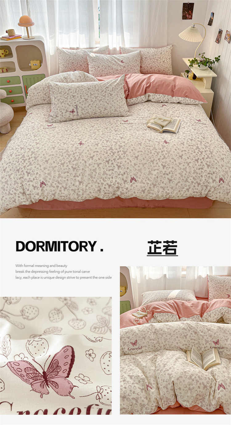 순수한면 4 피스면 2025 새로운 침구 작은 신선한 꽃 싱글 퀼트 커버 기숙사 침대 모자 3 피스 세트스토어 가기