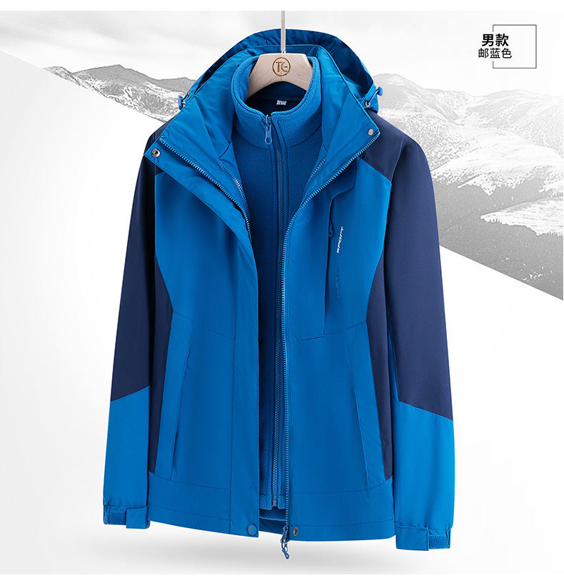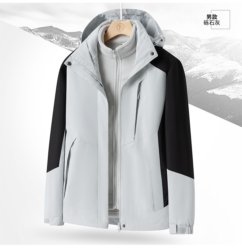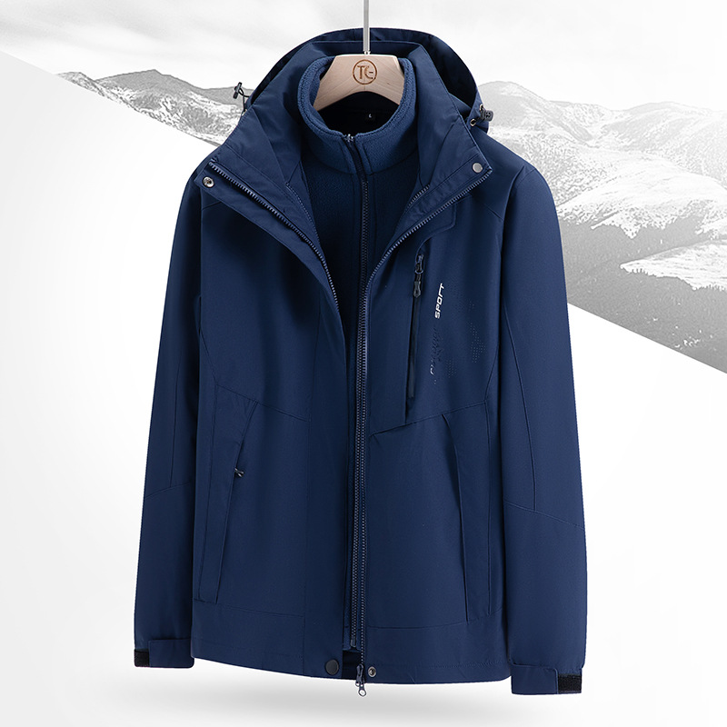 야외 스포츠 3 대 1 분리 가능한 2 피스 재킷 남자 방풍 및 방비 재킷 기모 두꺼운 재킷 유행스토어 가기