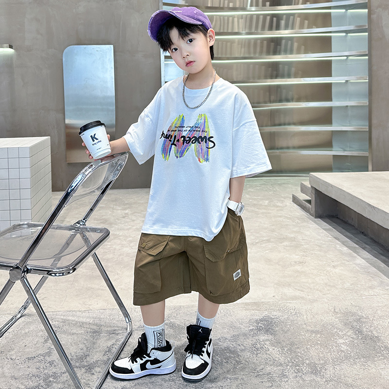 남학생 여름 반팔 반바지 세트 2025 신작 소년 중대형 어린이 캐주얼 인쇄 스포츠 투피스 세트