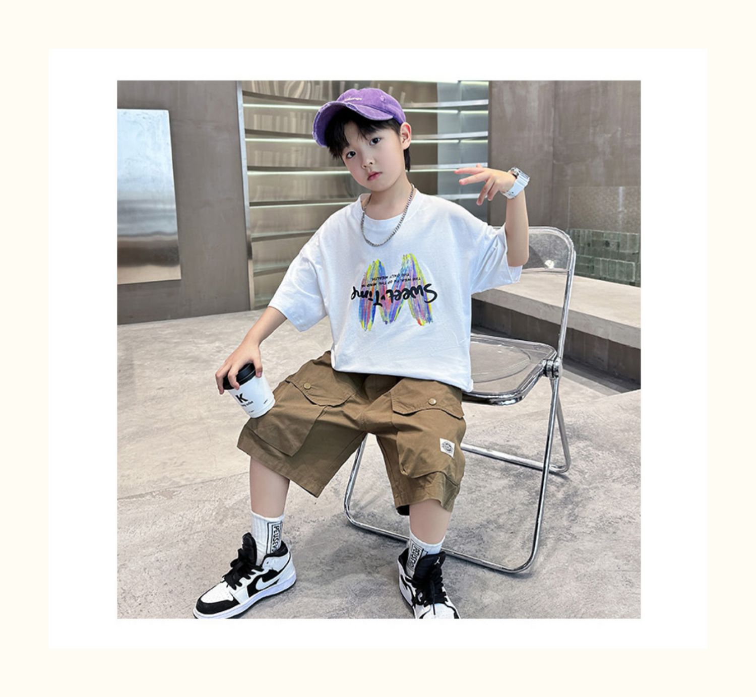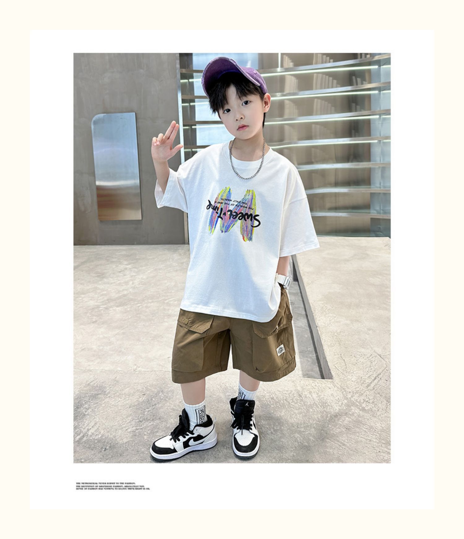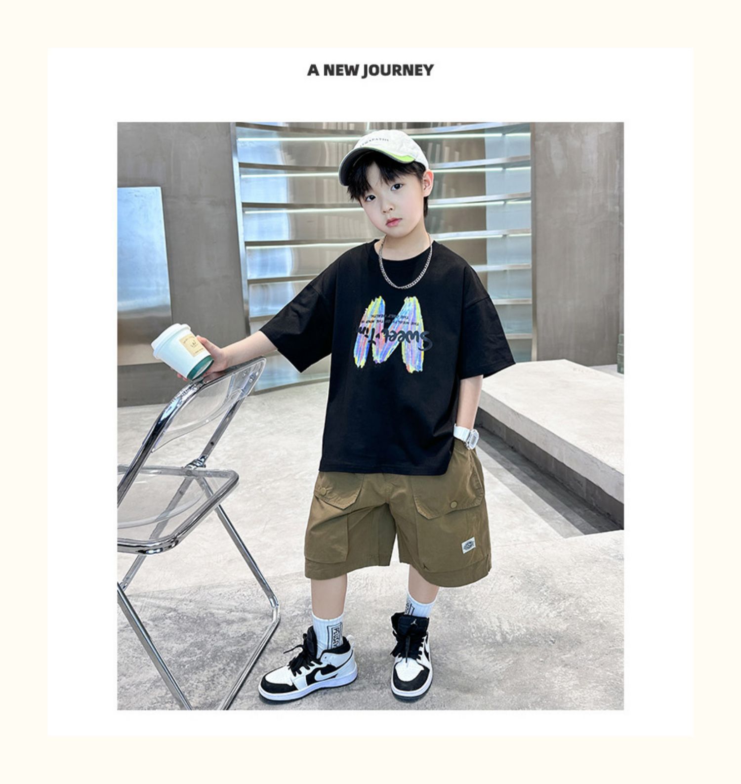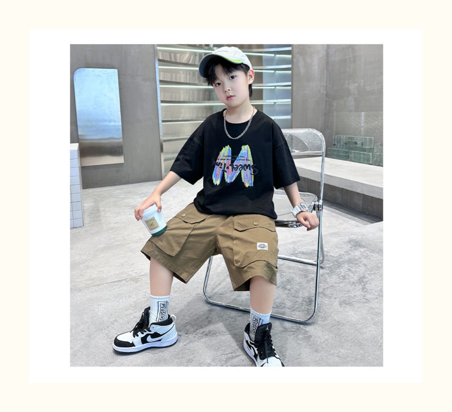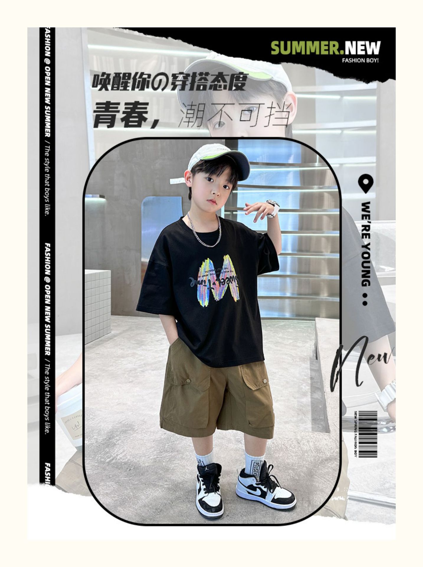남학생 여름 반팔 반바지 세트 2025 신작 소년 중대형 어린이 캐주얼 인쇄 스포츠 투피스 세트스토어 가기
