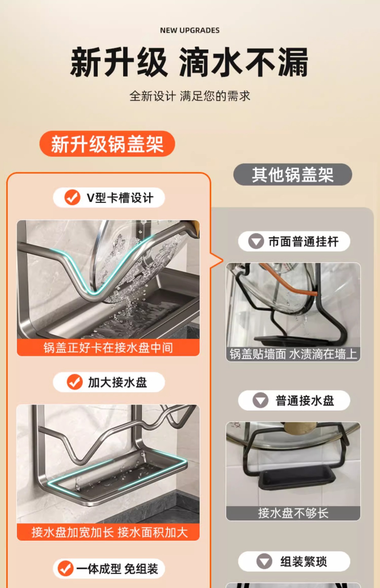 • 업그레이드된 냄비 뚜껑 홀더 - 건 그레이 더블 레이어