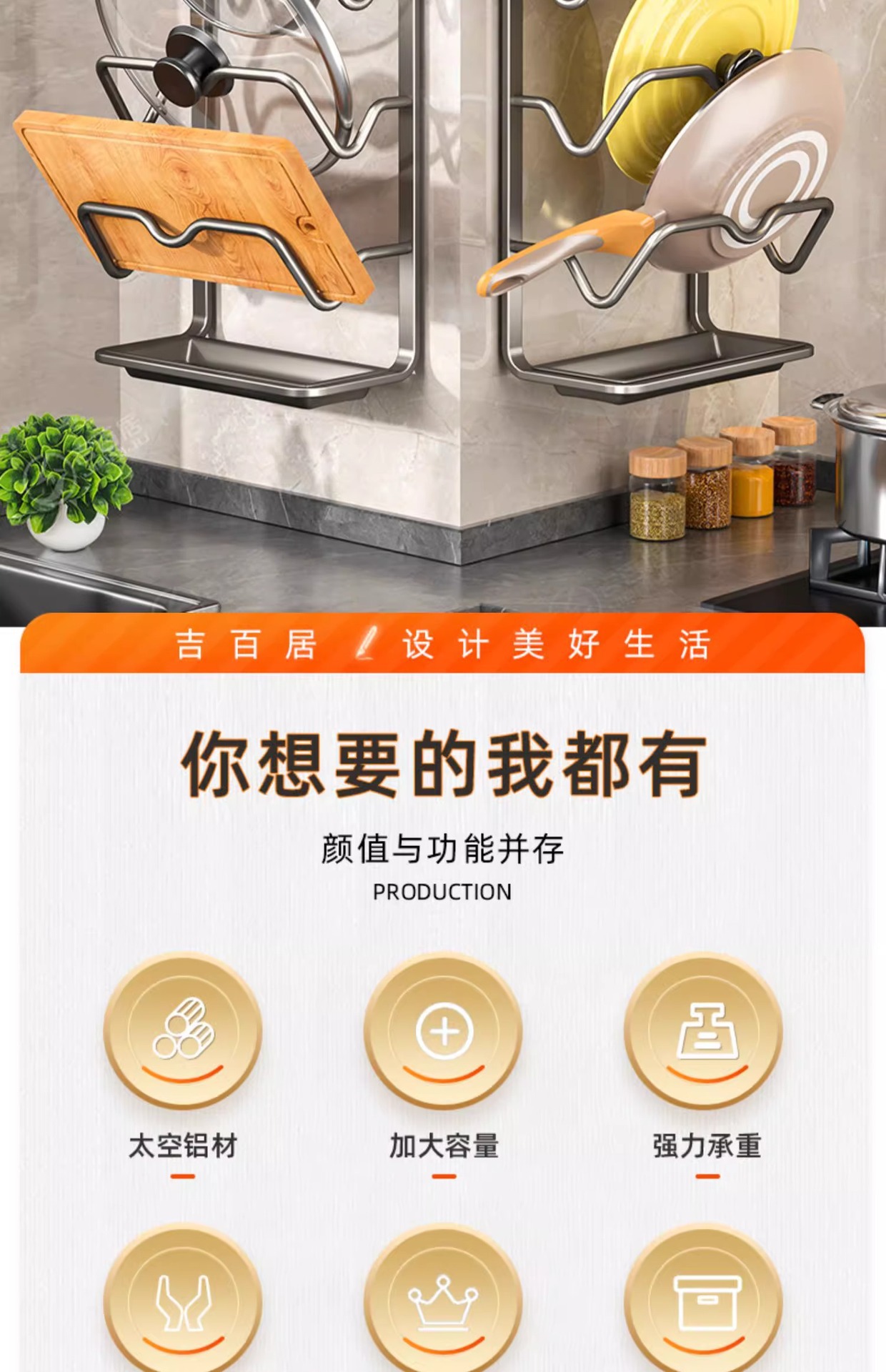 • 업그레이드된 냄비뚜껑홀더 - 건그레이 3단