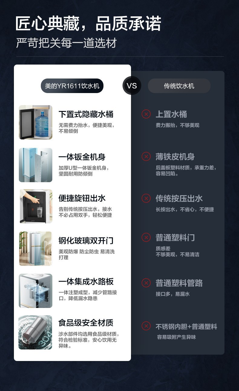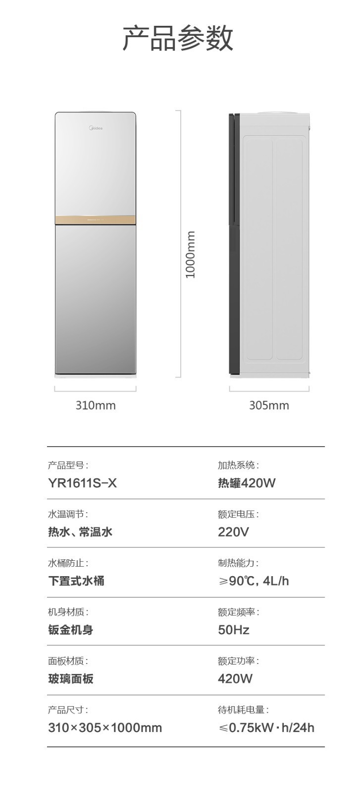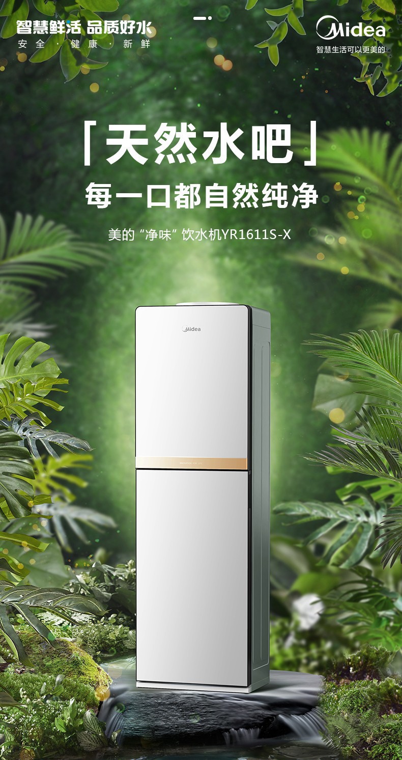 Midea 워터 디스펜서 가정용 하단 배치 생수 온수 이중 목적 수직 사무실 티 디스펜서 YR1611S-X스토어 가기