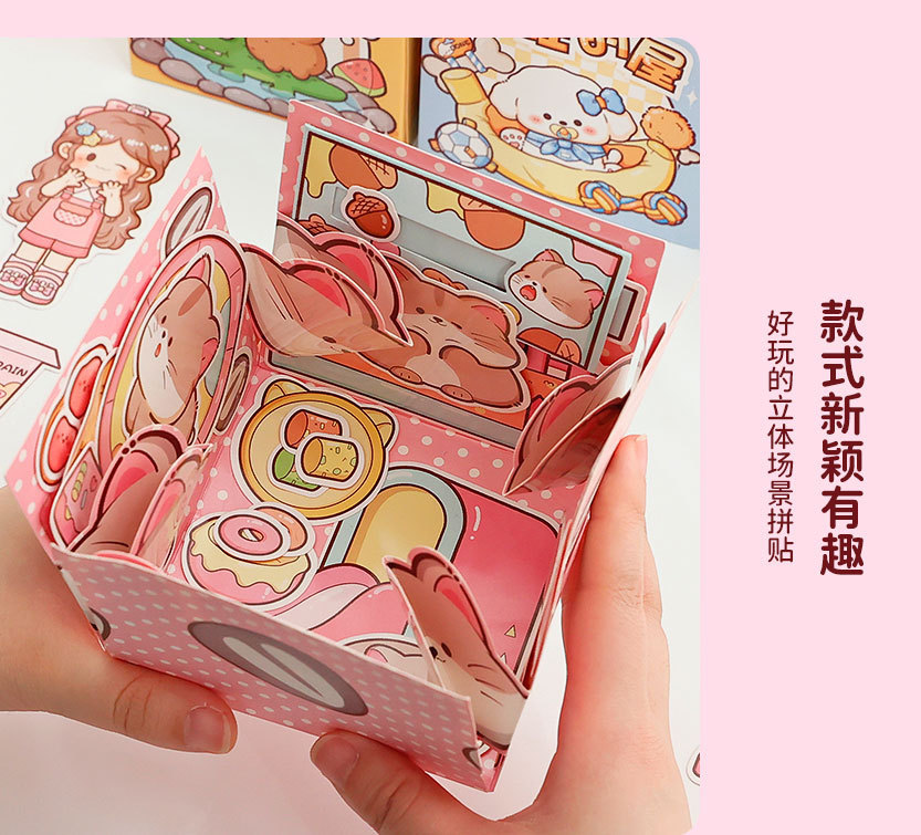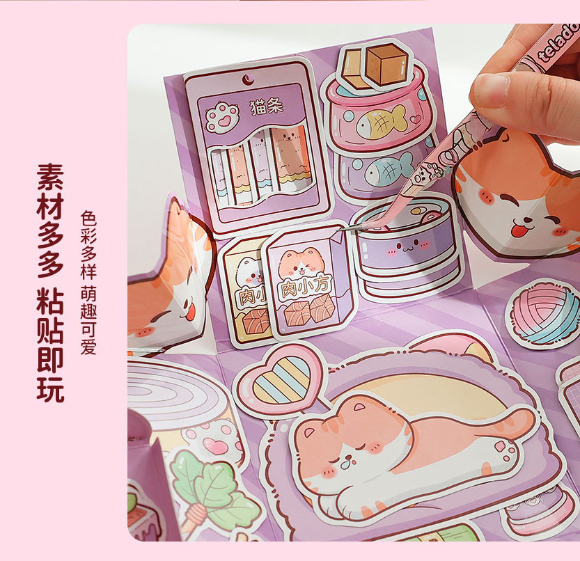 Tiradoumeng Chong 조용한 집 손 계정 스티커 소녀 어린이 3 차원 조용한 책 DIY 소재 손 계정 스티커 장난감스토어 가기