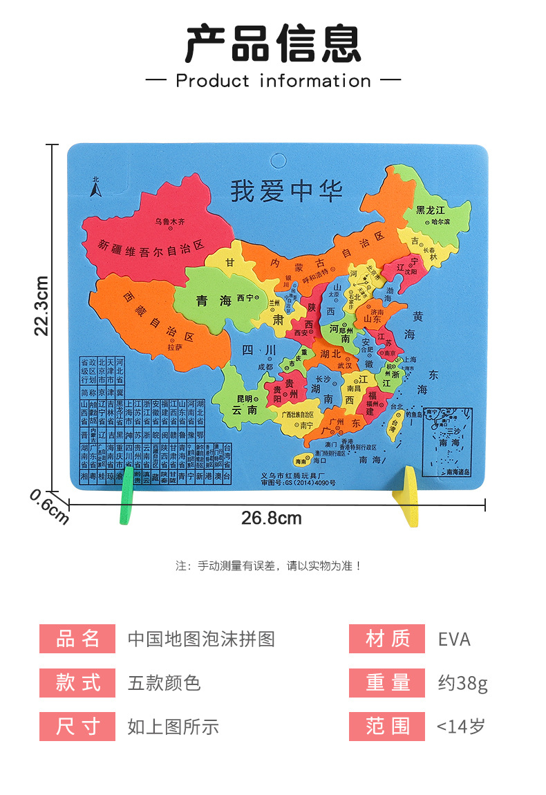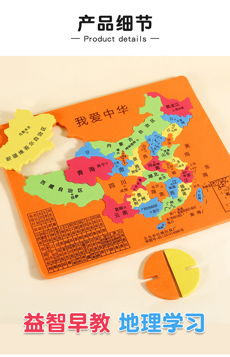 교육 장난감 퍼즐 컬러 버블지도 퍼즐 중국 지리적 인식 어린이 조기 교육 장난감 도매