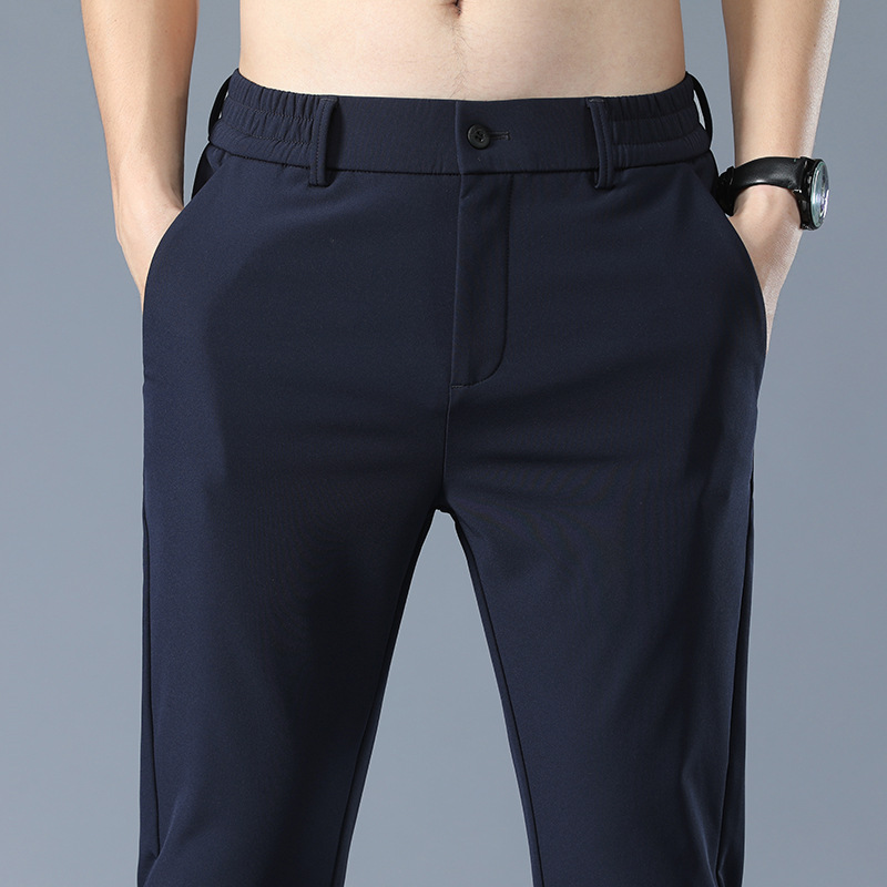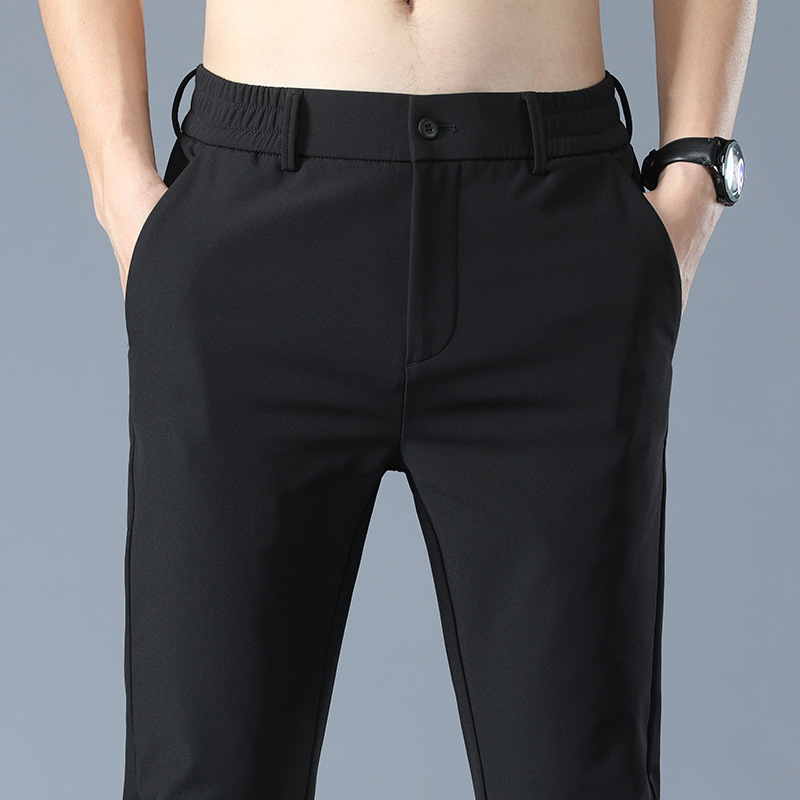 봄과 여름 얇은 실키 탄성 허리 웨스턴 바지 남성 캐주얼 바지 슬림 스트레이트 비즈니스 웨스턴 바지