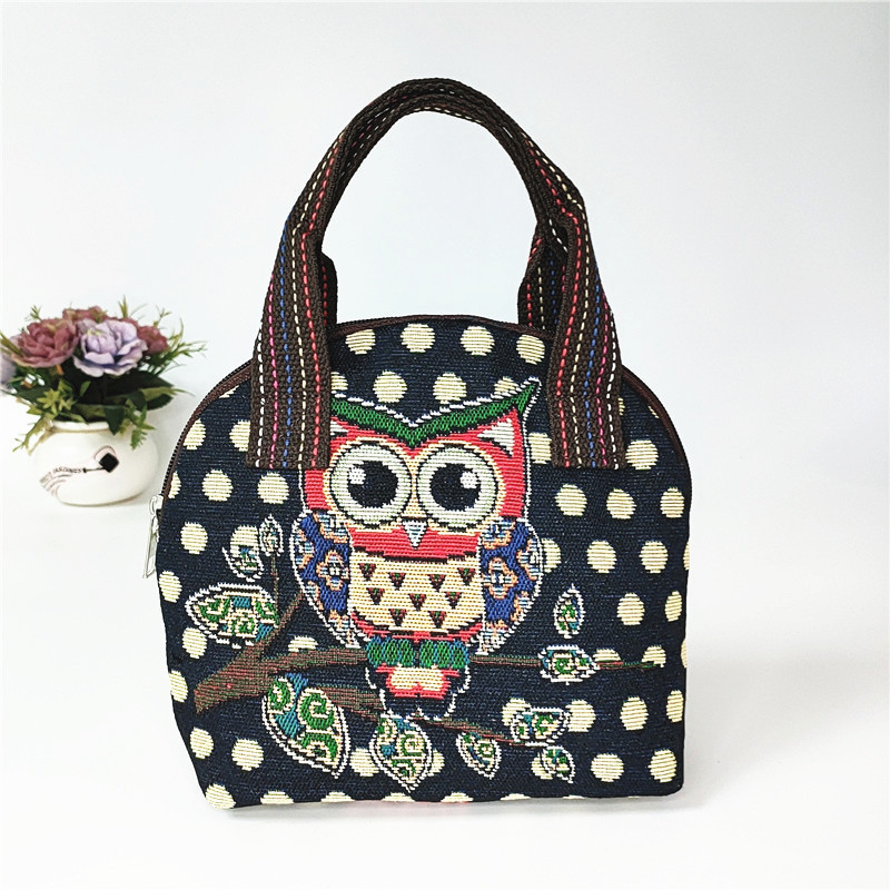 • 의.짙은 파란색 배경에 작은 점이 있는 올빼미 껍질 가방