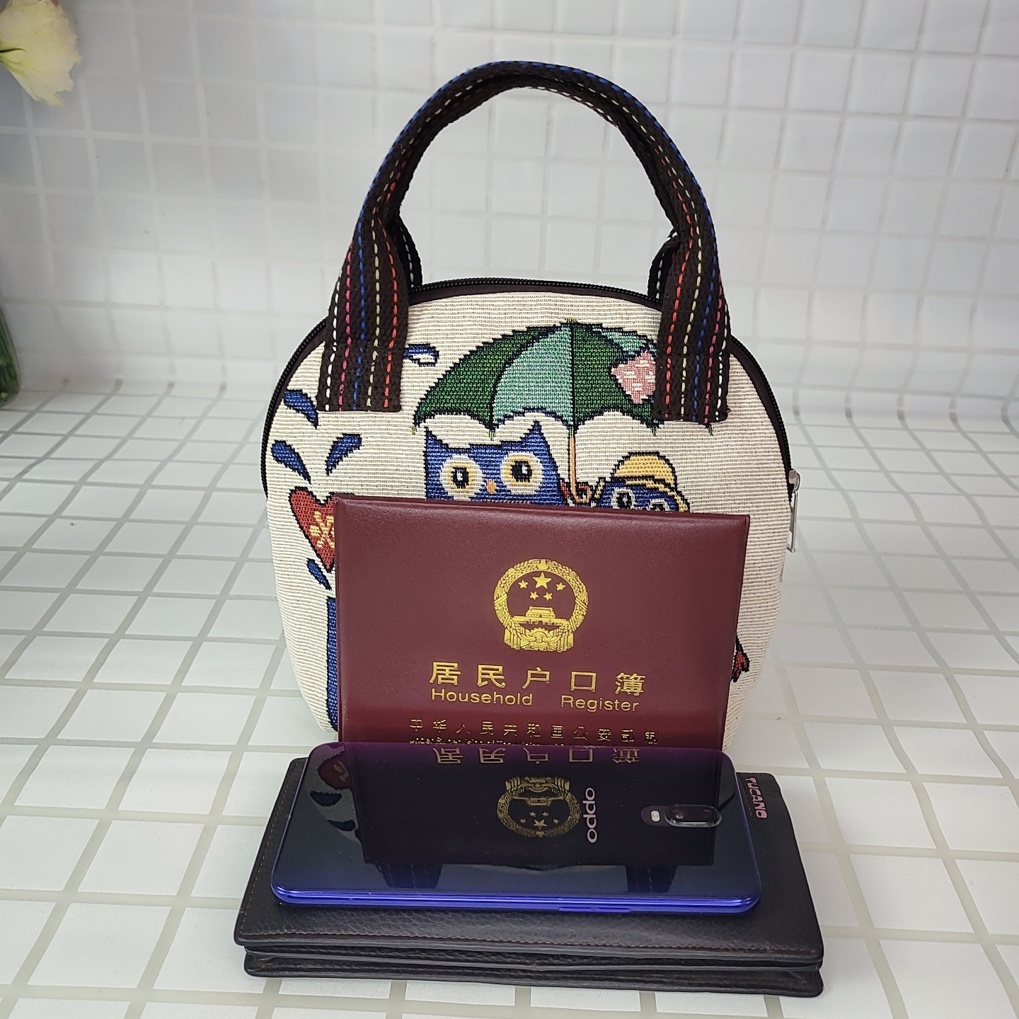 2024 새로운 캔버스 가방 자수 쉘 휴대용 소형 가방 휴대 전화 가방 변경 쇼핑 가방 민족 스타일 쇼핑백스토어 가기