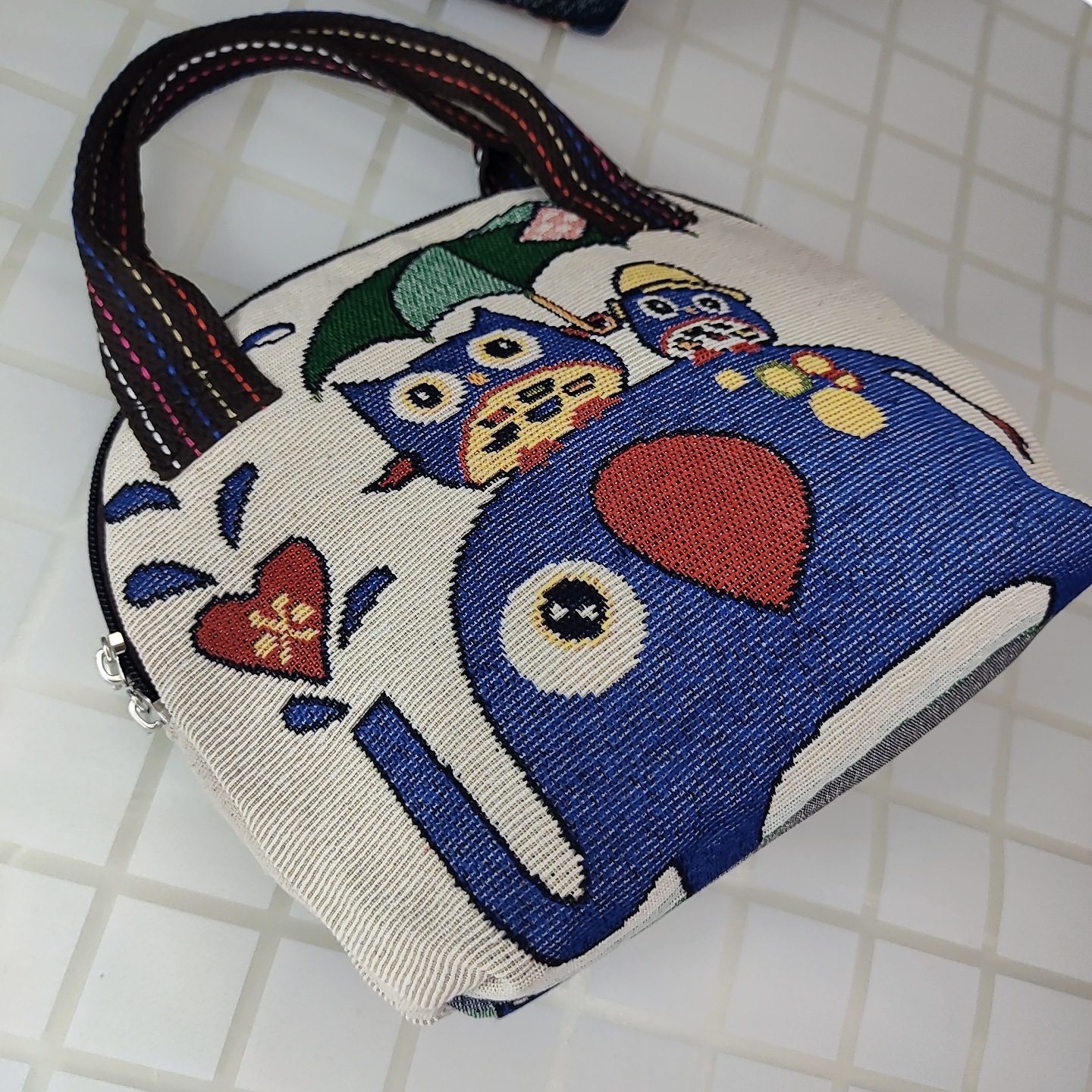 2024 새로운 캔버스 가방 자수 쉘 휴대용 소형 가방 휴대 전화 가방 변경 쇼핑 가방 민족 스타일 쇼핑백