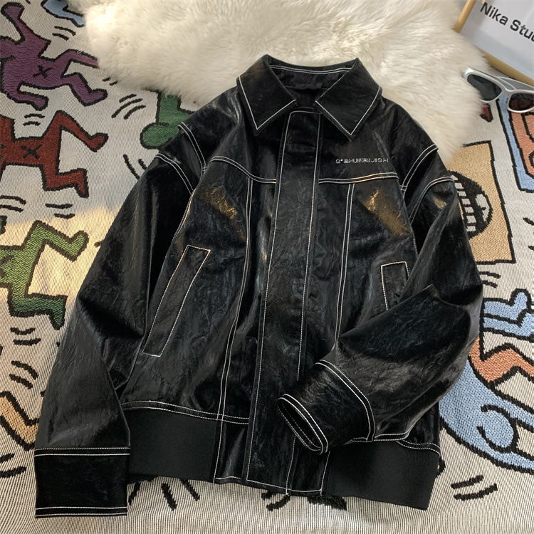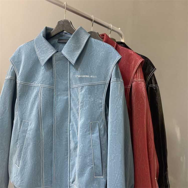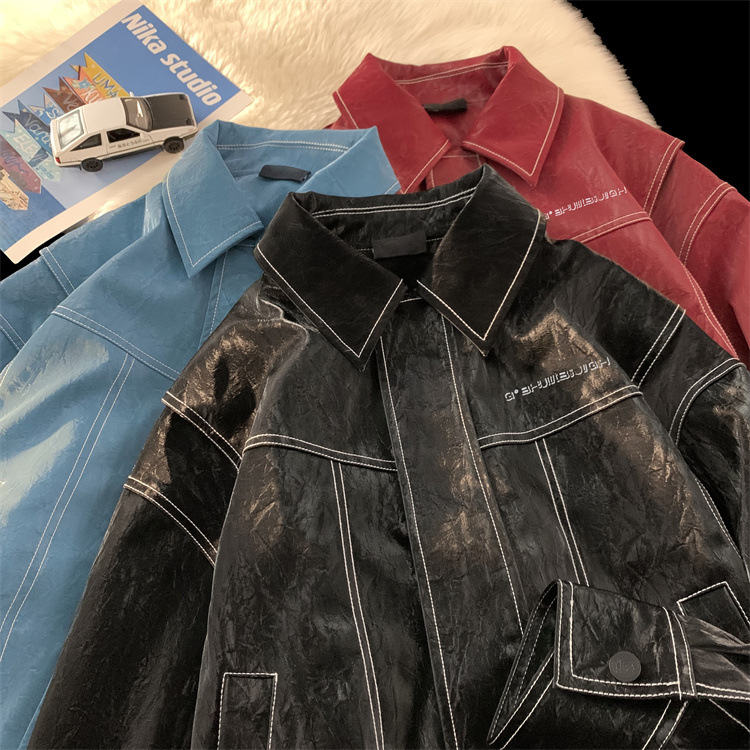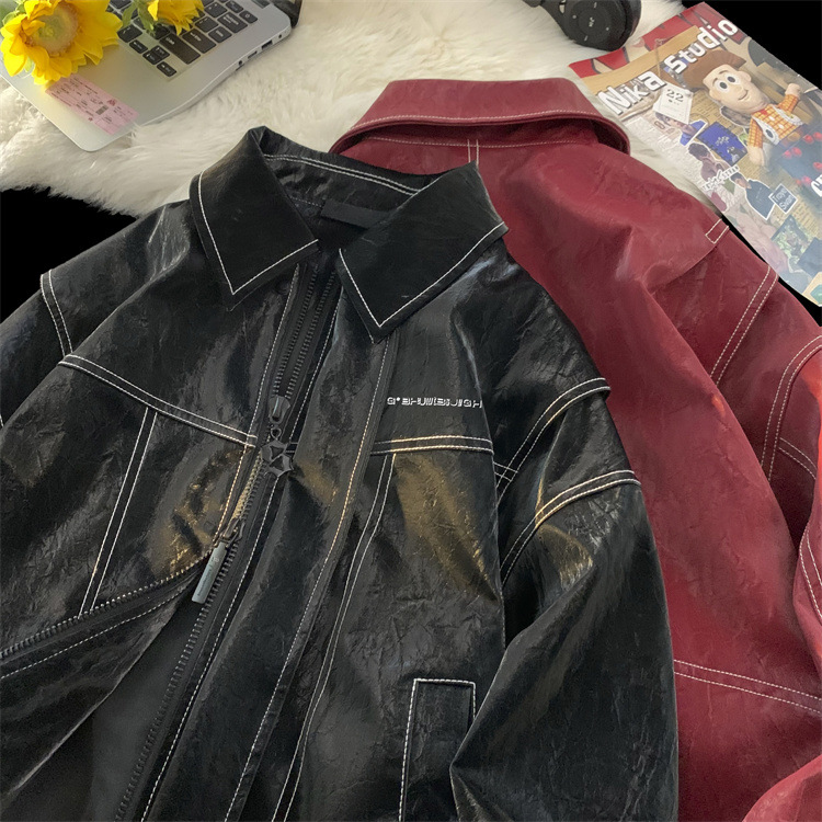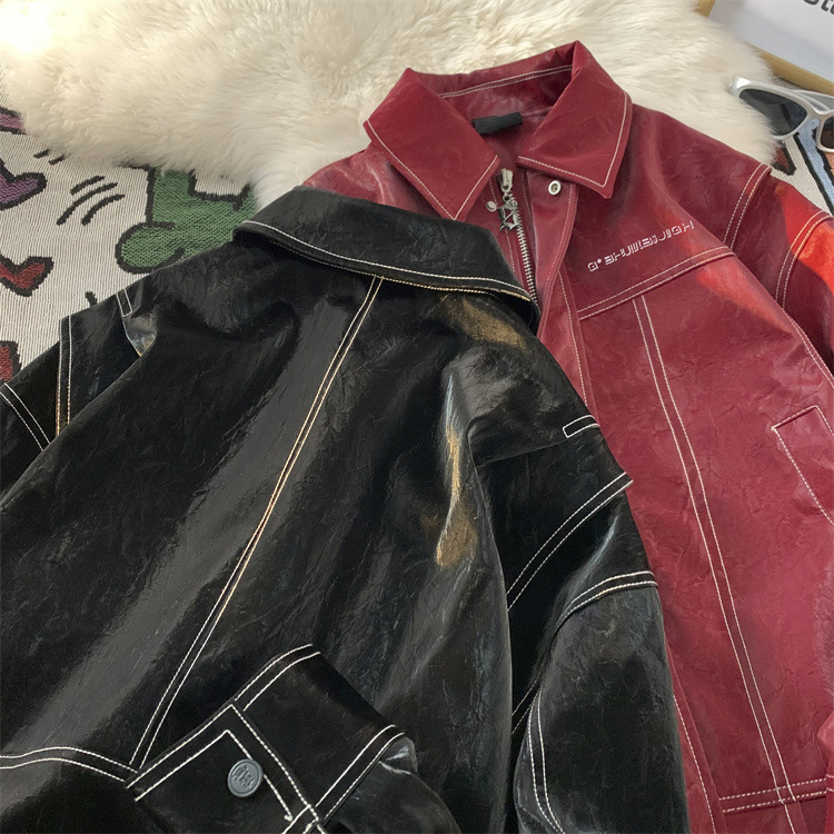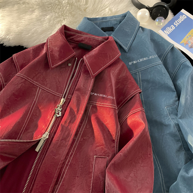 미국 복고풍 빨간 가죽 자켓 남자의 봄과 가을 2024 새로운 골동품 빈티지 캐주얼 자켓 탑스토어 가기