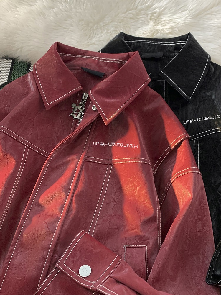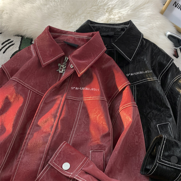 미국 복고풍 빨간 가죽 자켓 남자의 봄과 가을 2024 새로운 골동품 빈티지 캐주얼 자켓 탑