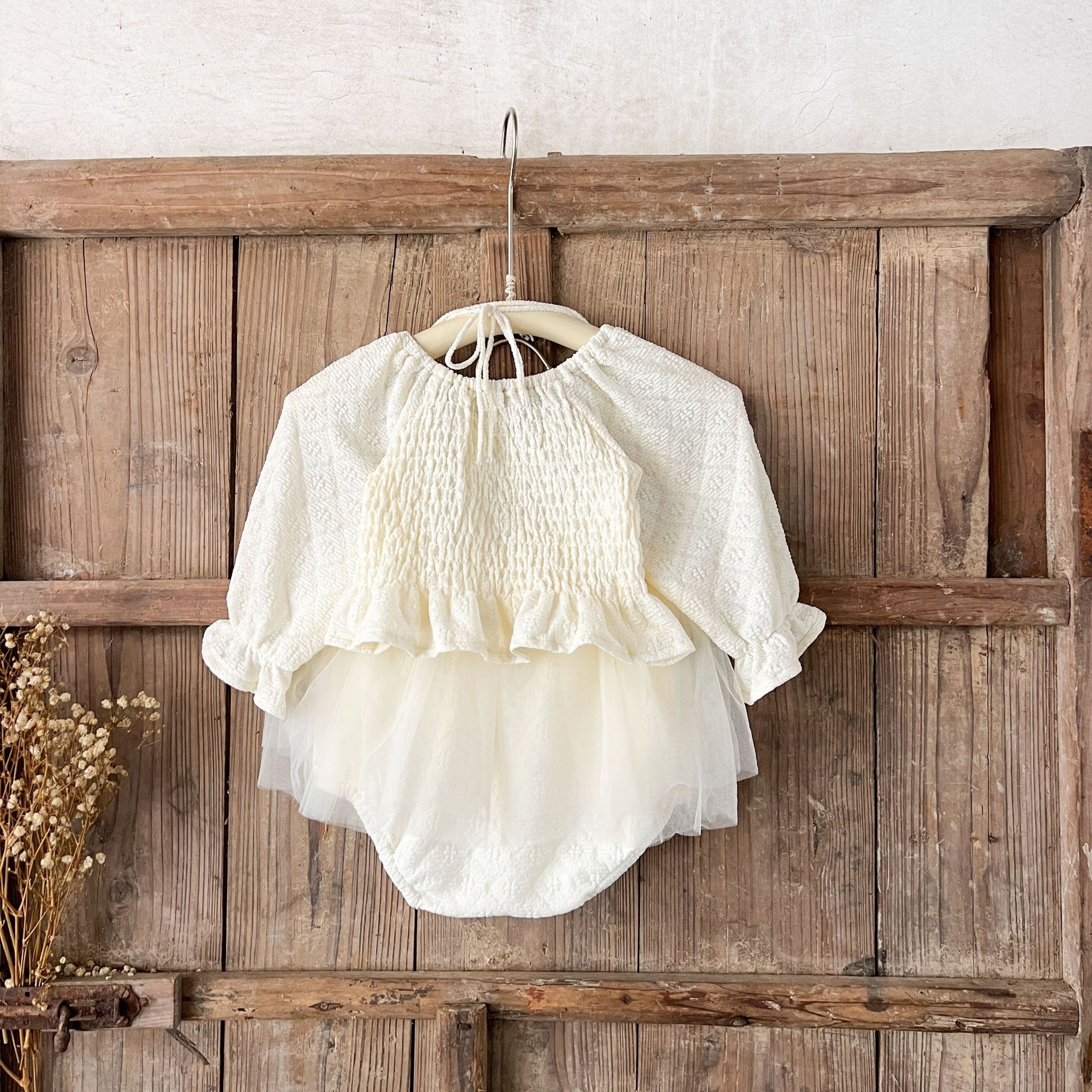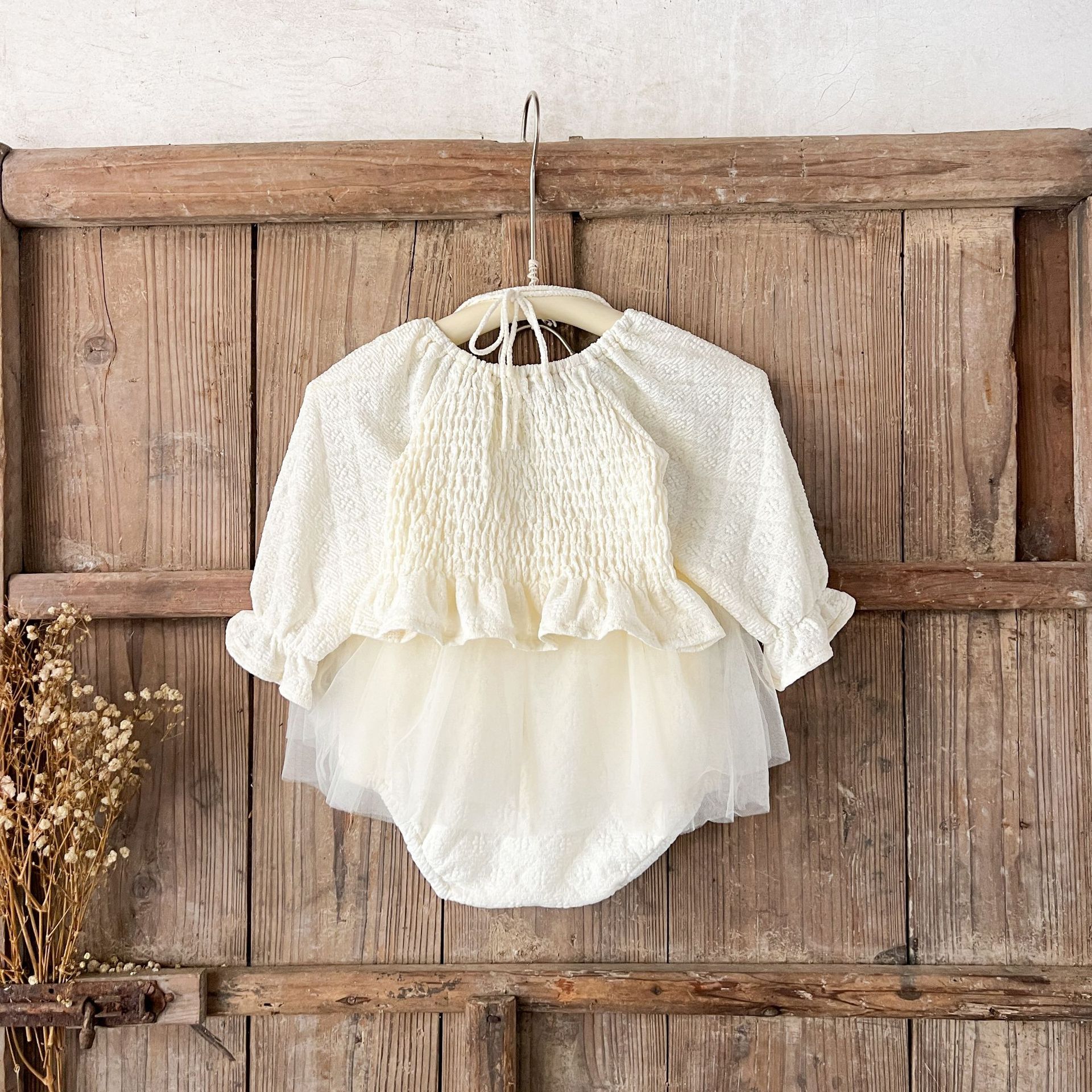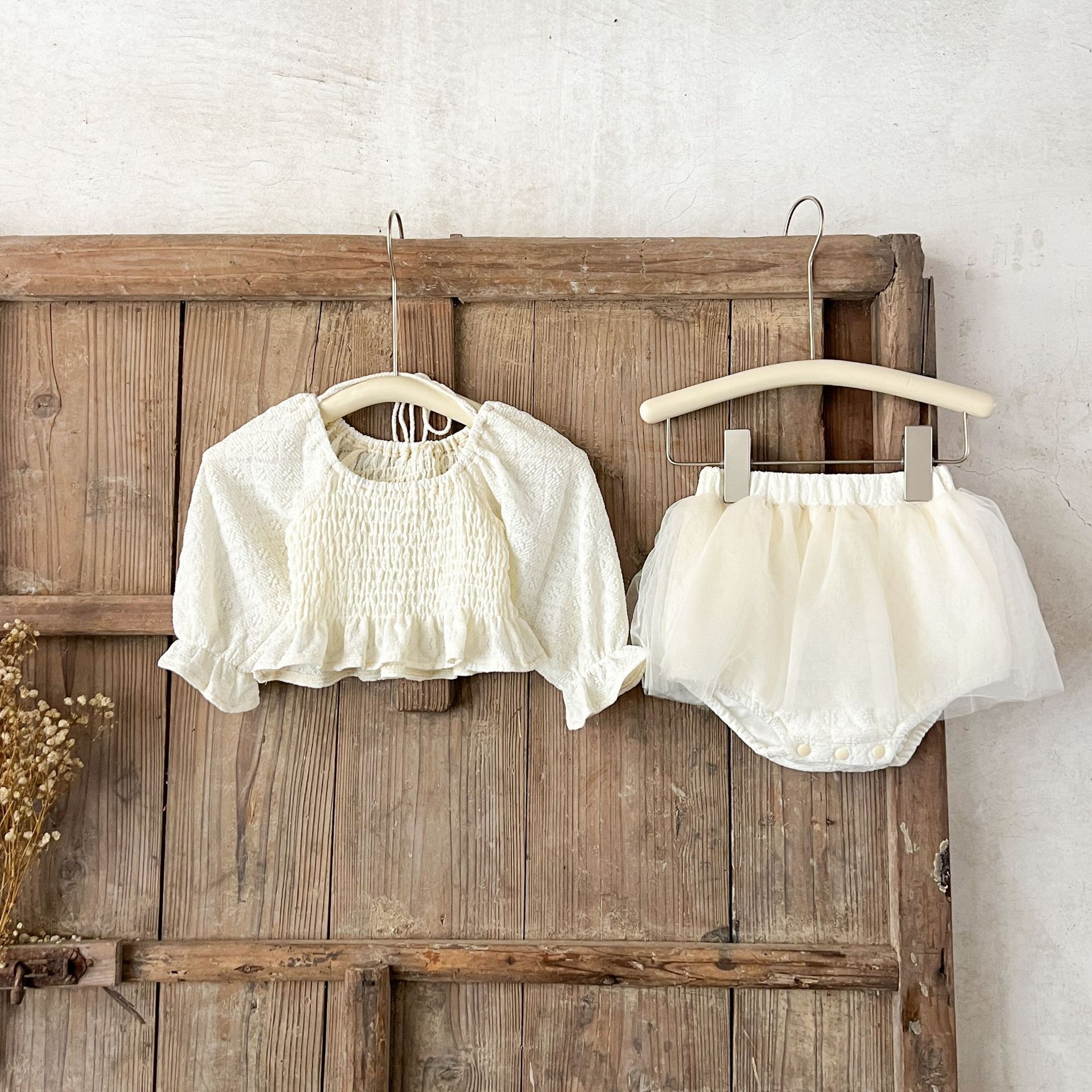 2025 봄 새로운 아기 소녀 달콤한 레이스 패키지 더블 코튼 근접 세트 거즈 스커트 베이비 세트