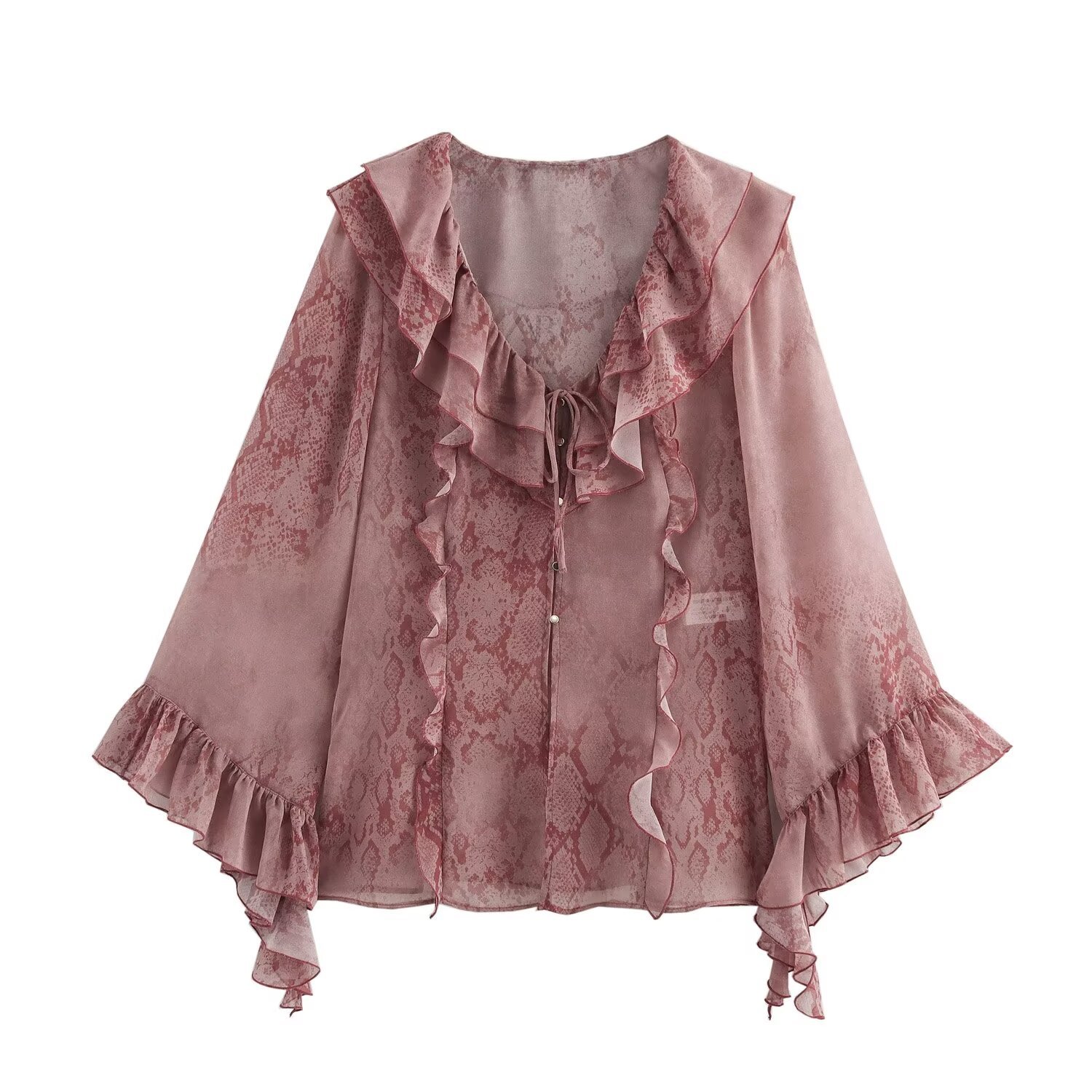 UC & ZA 유럽과 미국의 국경 간 AliExpress 여성용 V 넥 동물 인쇄 장식 긴 소매 셔츠 2067103