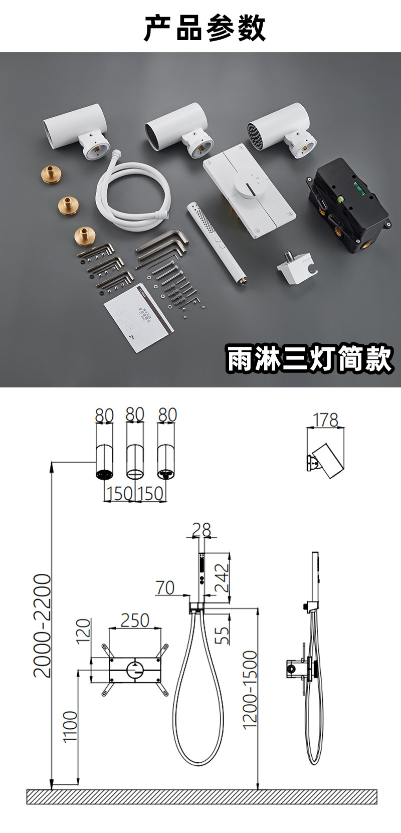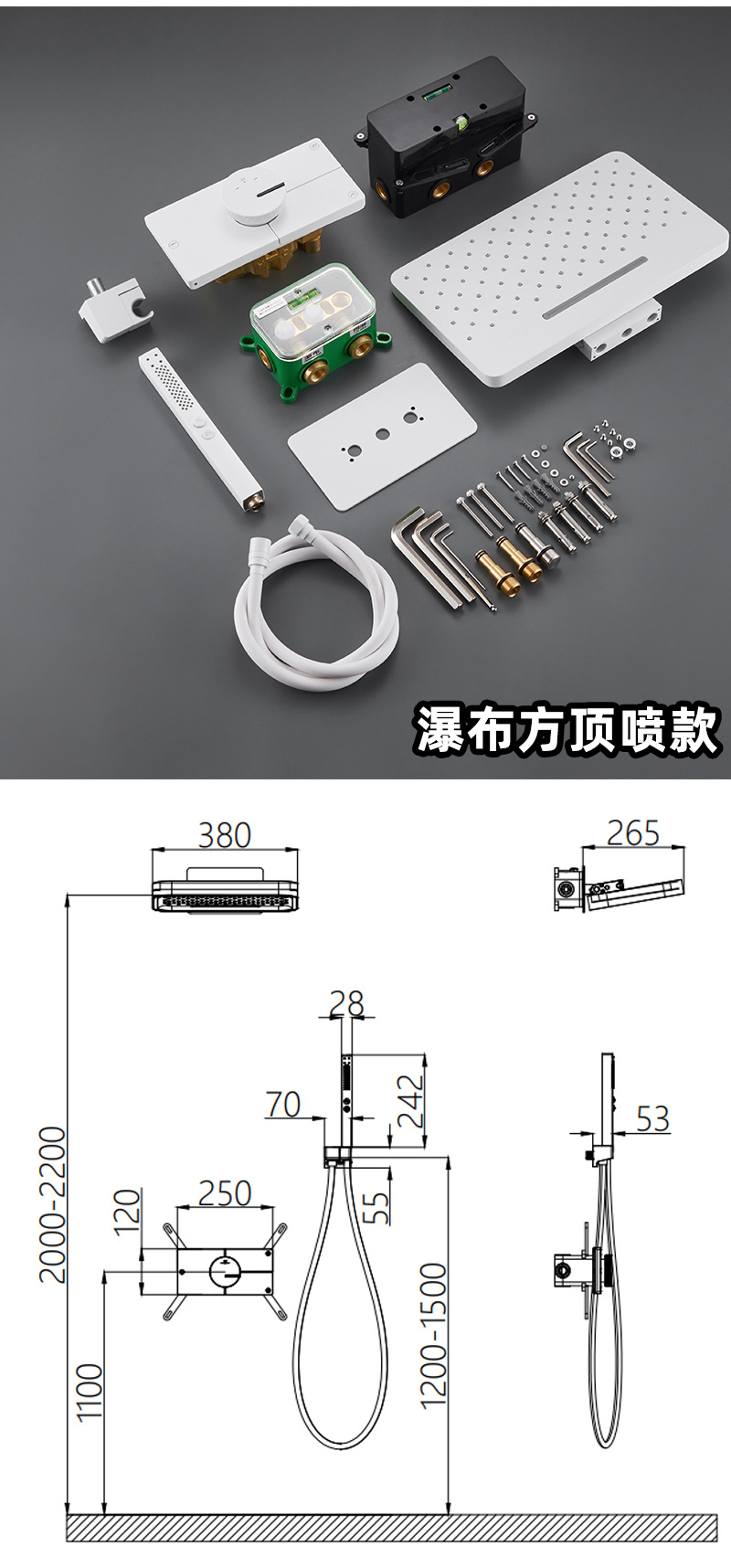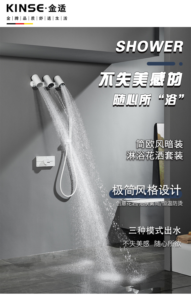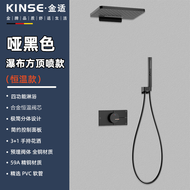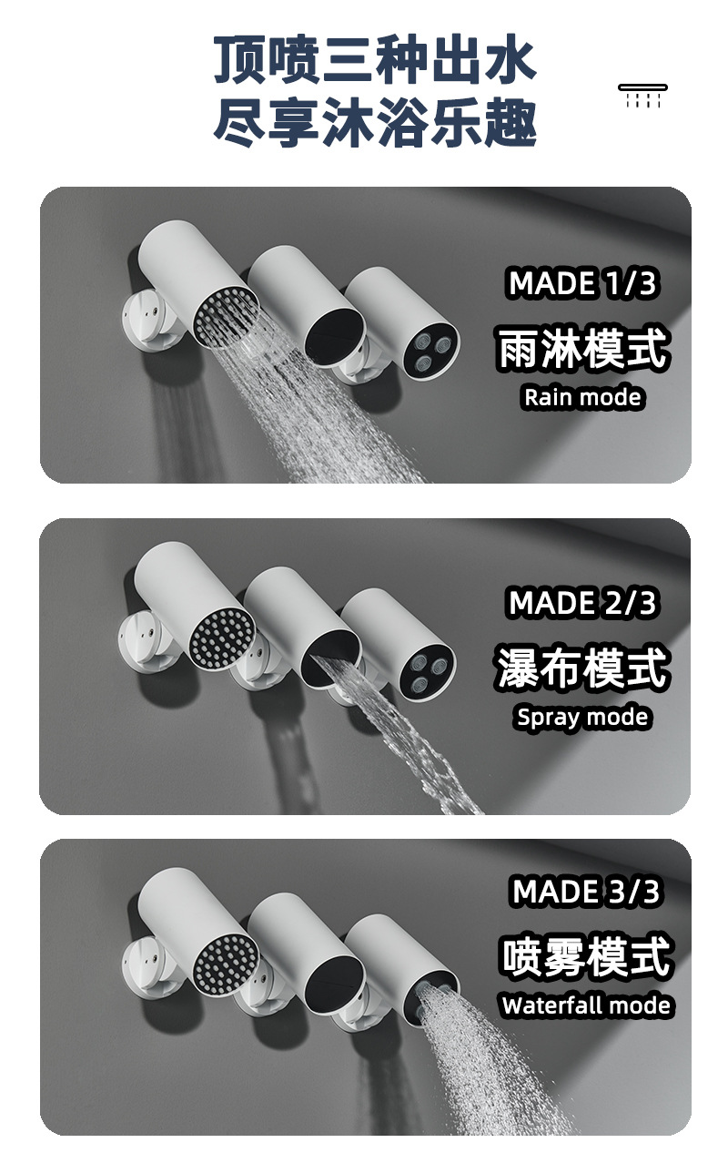국경 간 은폐 된 샤워 황동 디지털 디스플레이 환경 비 내장 벽 샤워 세트 폭포 비 창조적 인 은폐 된 샤워