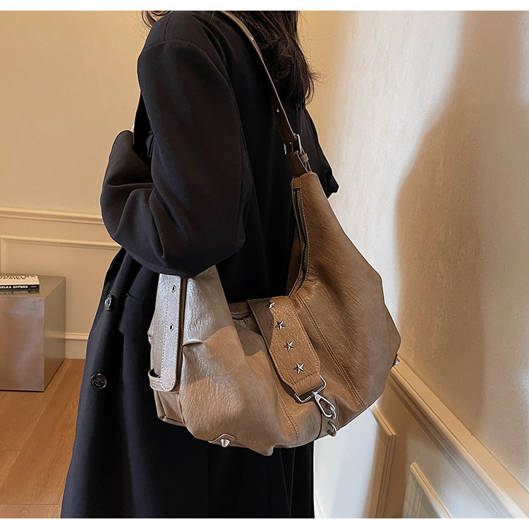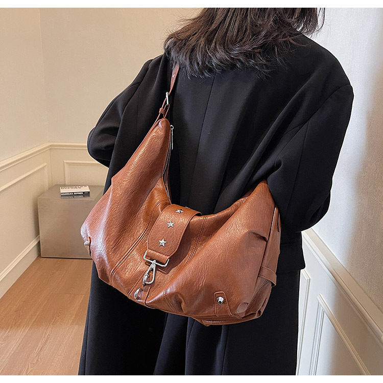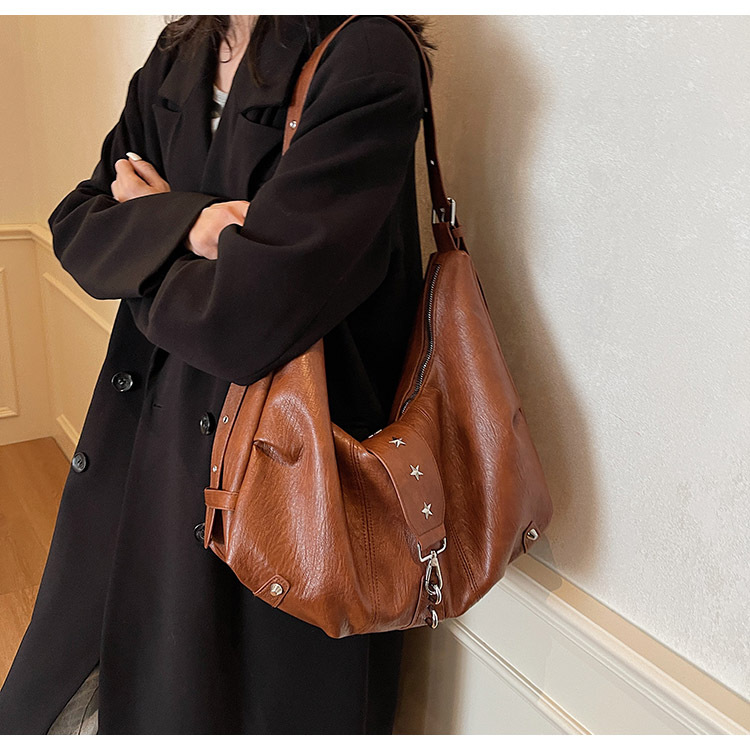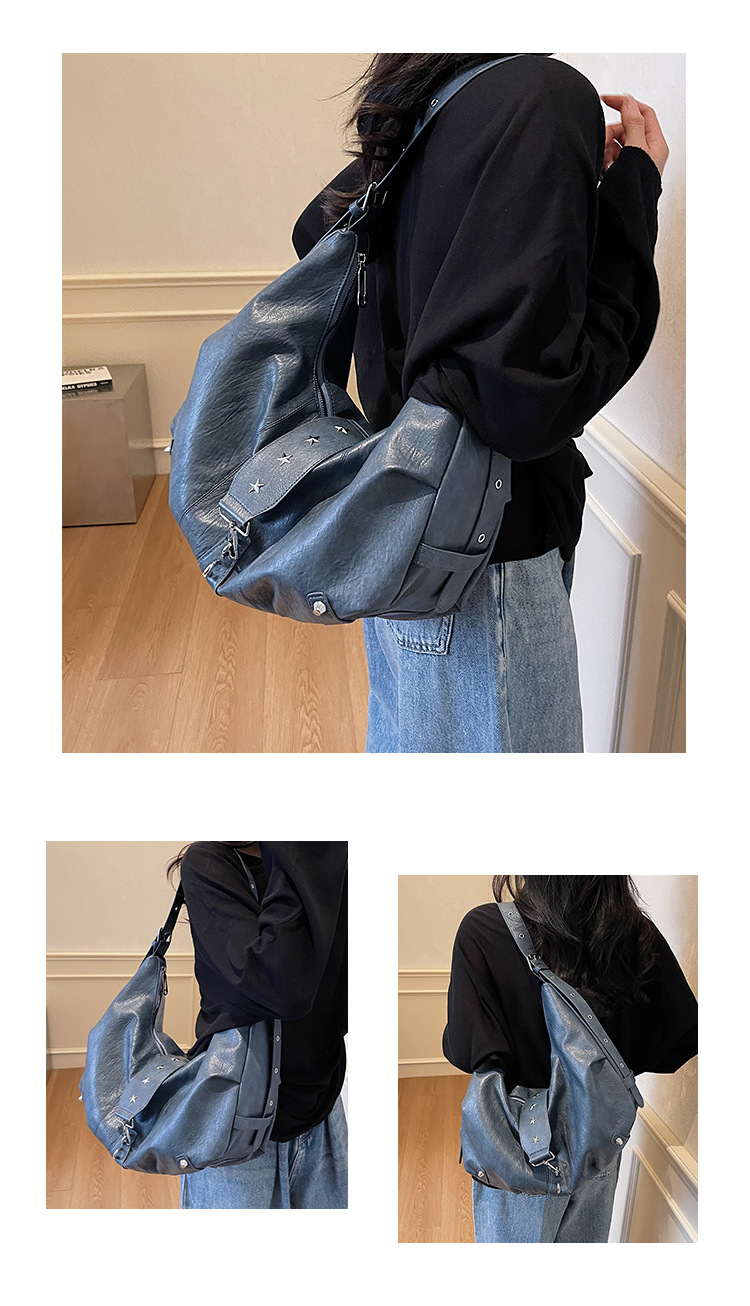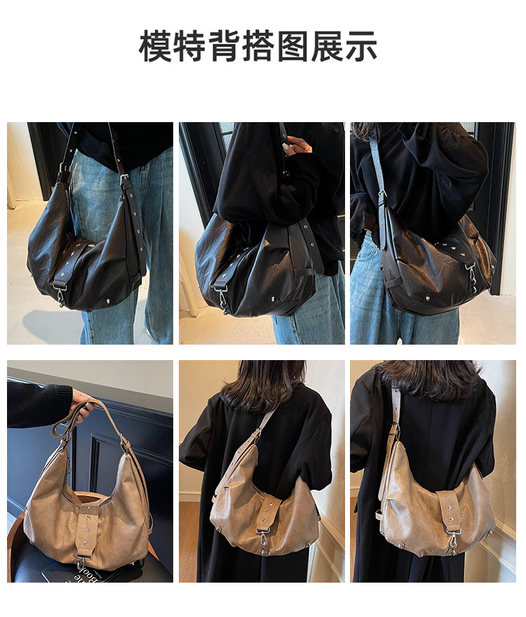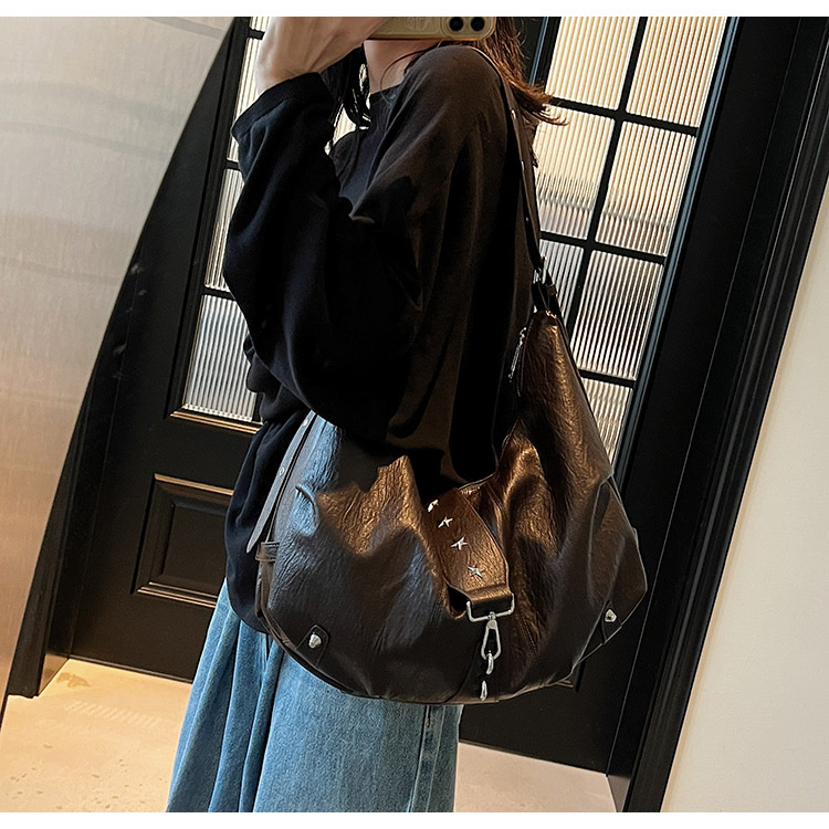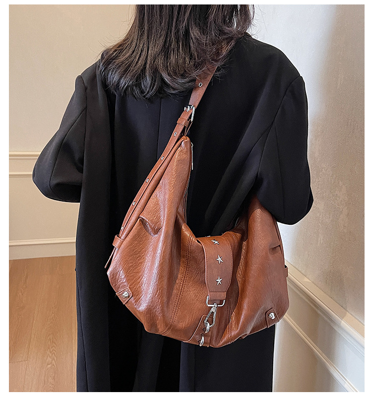대외 무역 국경 간 게으른 스타일 대용량 토트 백 새로운 하이 엔드 기관차 스타일 올 매치 리벳 휴대용 어깨 가방