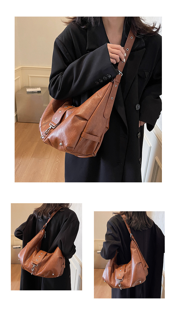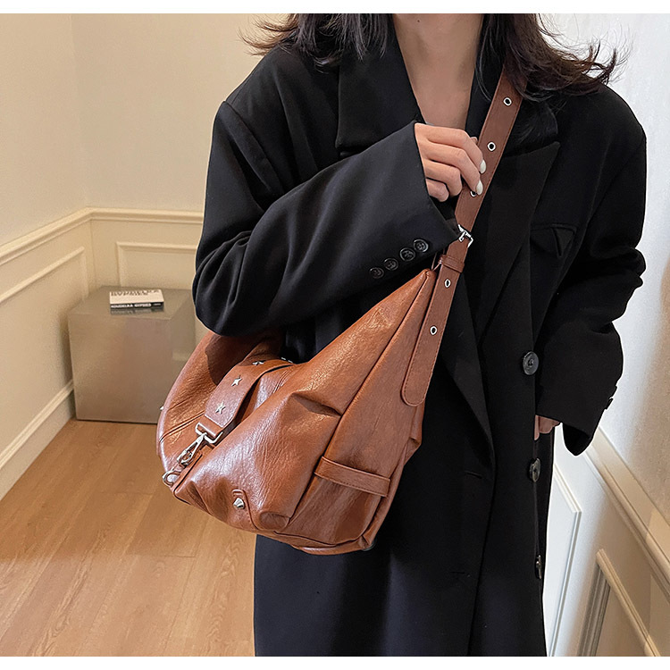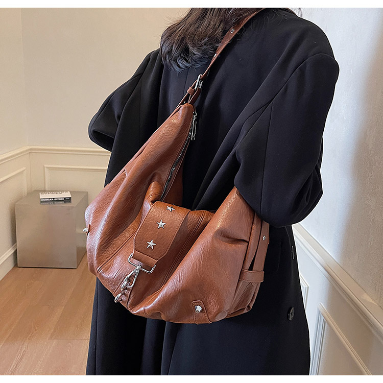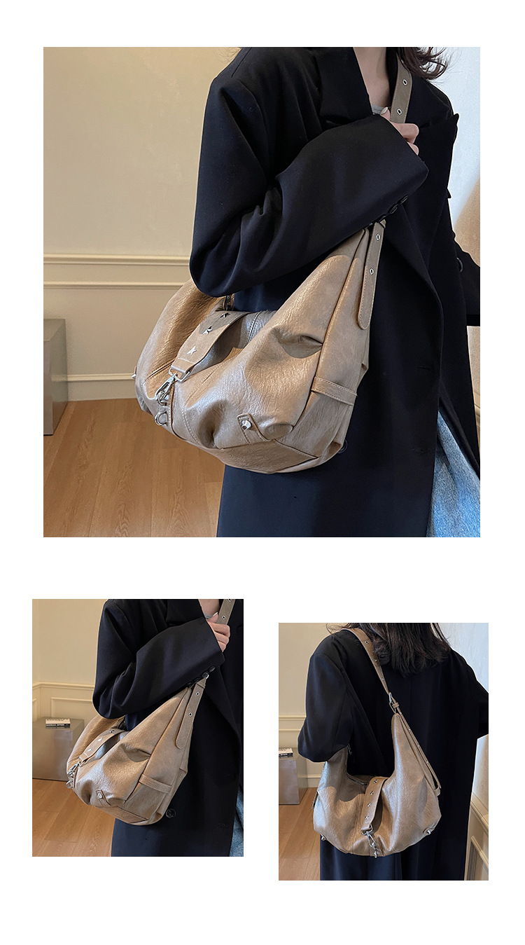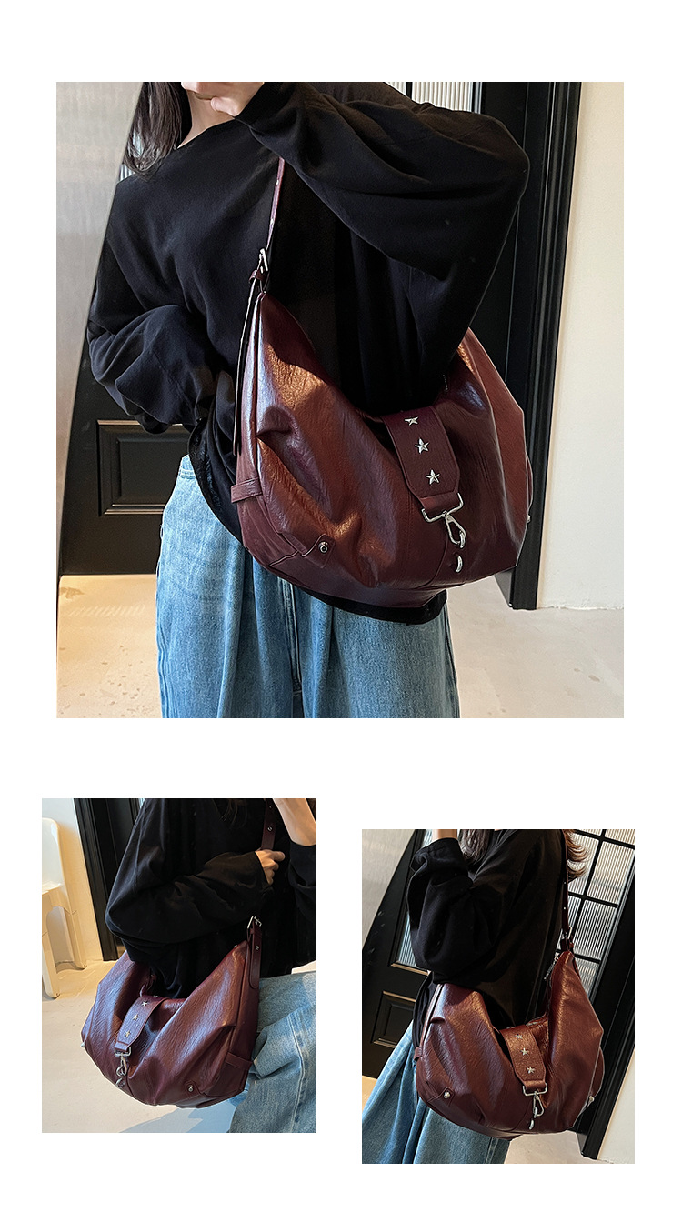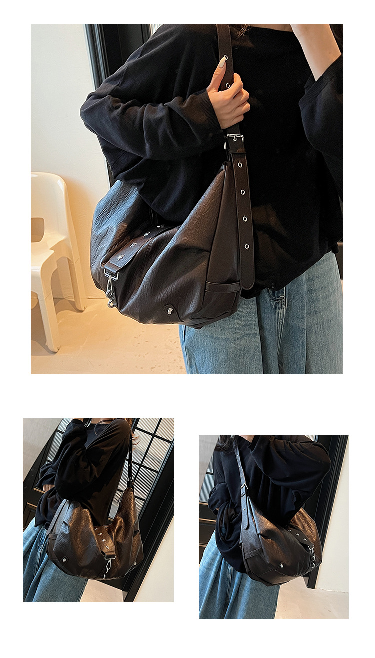 대외 무역 국경 간 게으른 스타일 대용량 토트 백 새로운 하이 엔드 기관차 스타일 올 매치 리벳 휴대용 어깨 가방