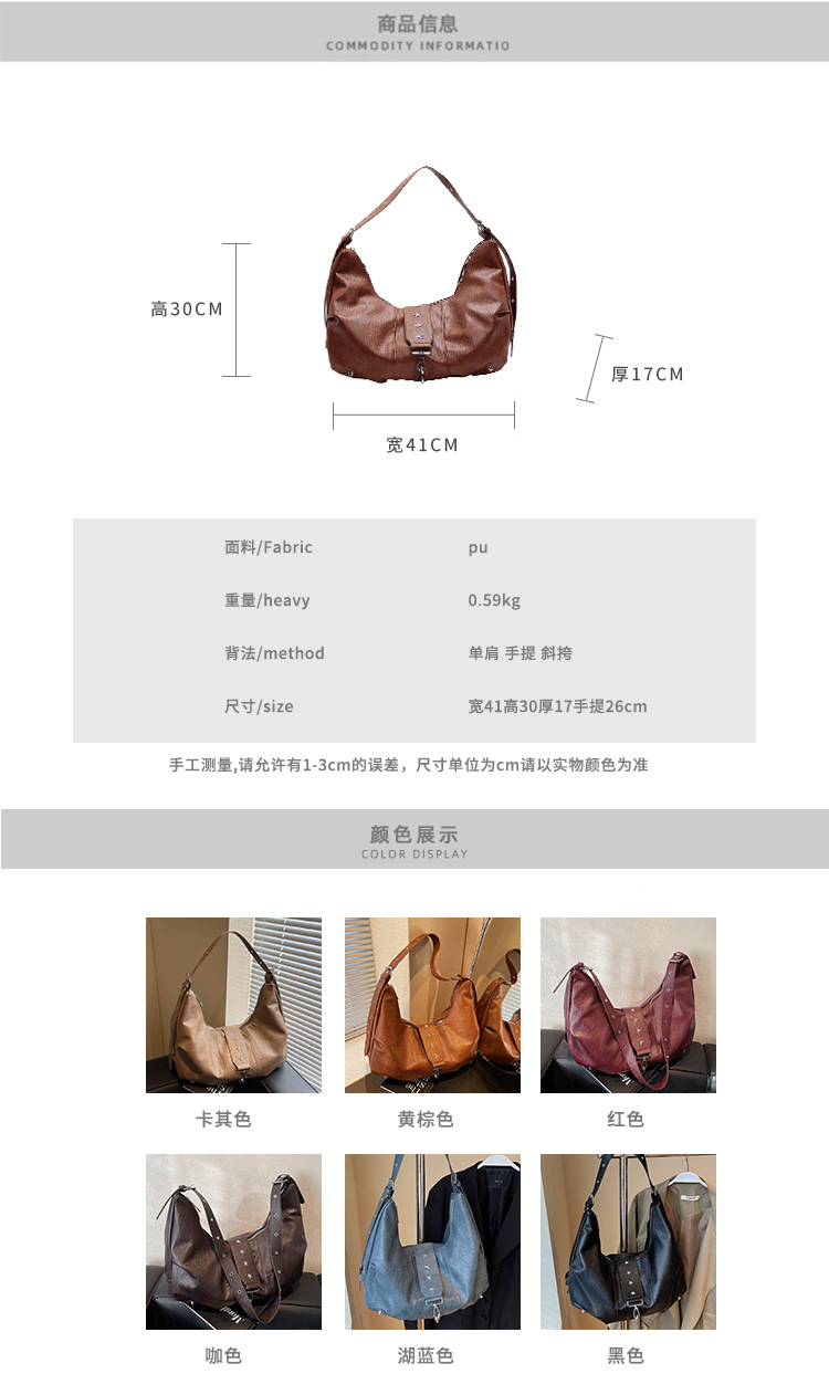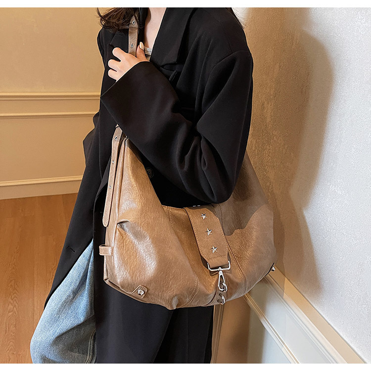 대외 무역 국경 간 게으른 스타일 대용량 토트 백 새로운 하이 엔드 기관차 스타일 올 매치 리벳 휴대용 어깨 가방스토어 가기