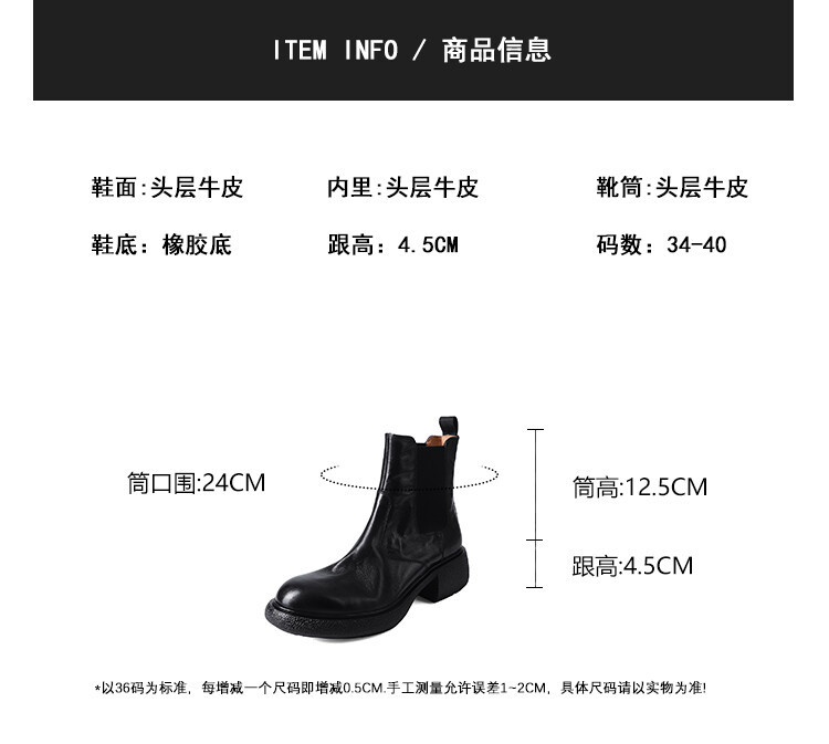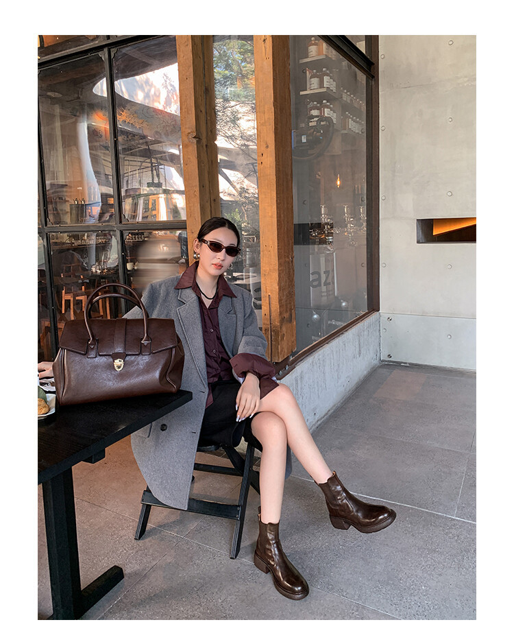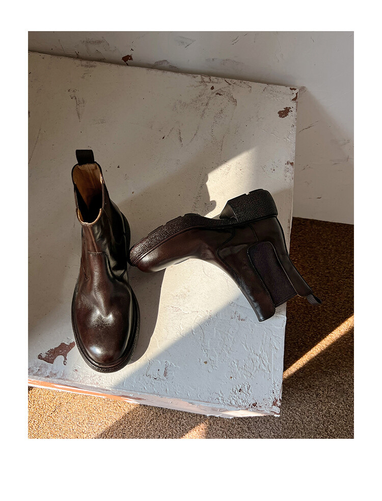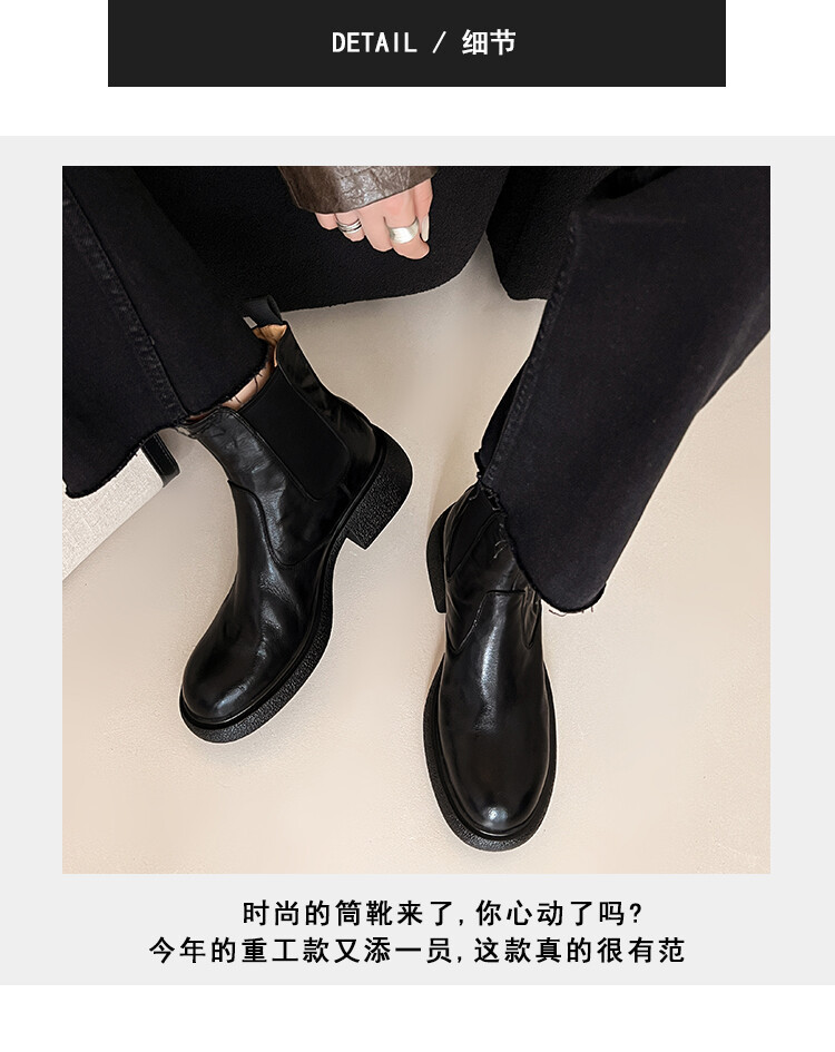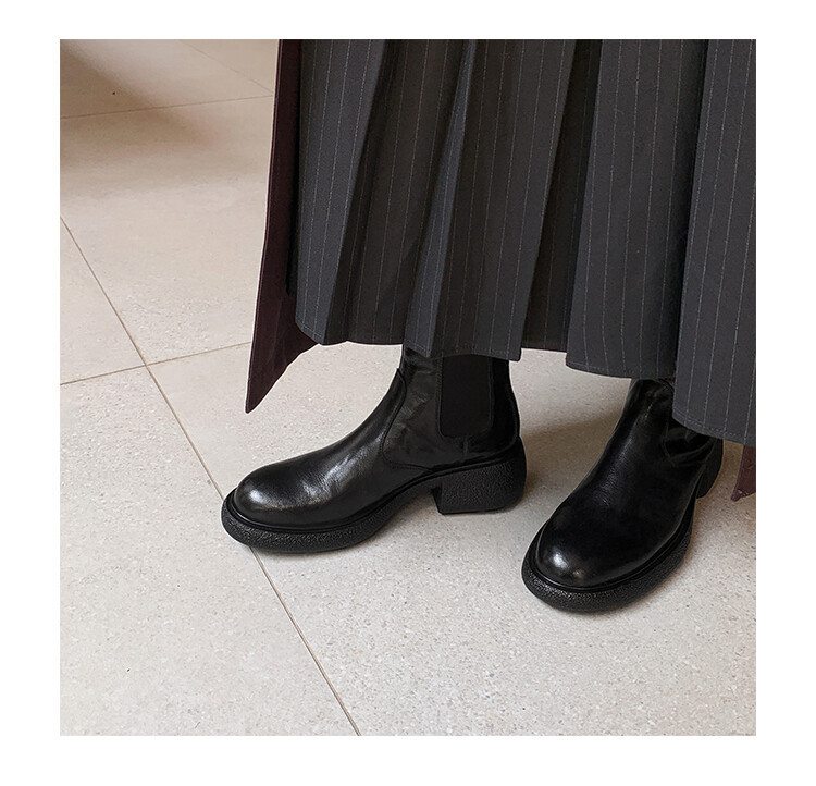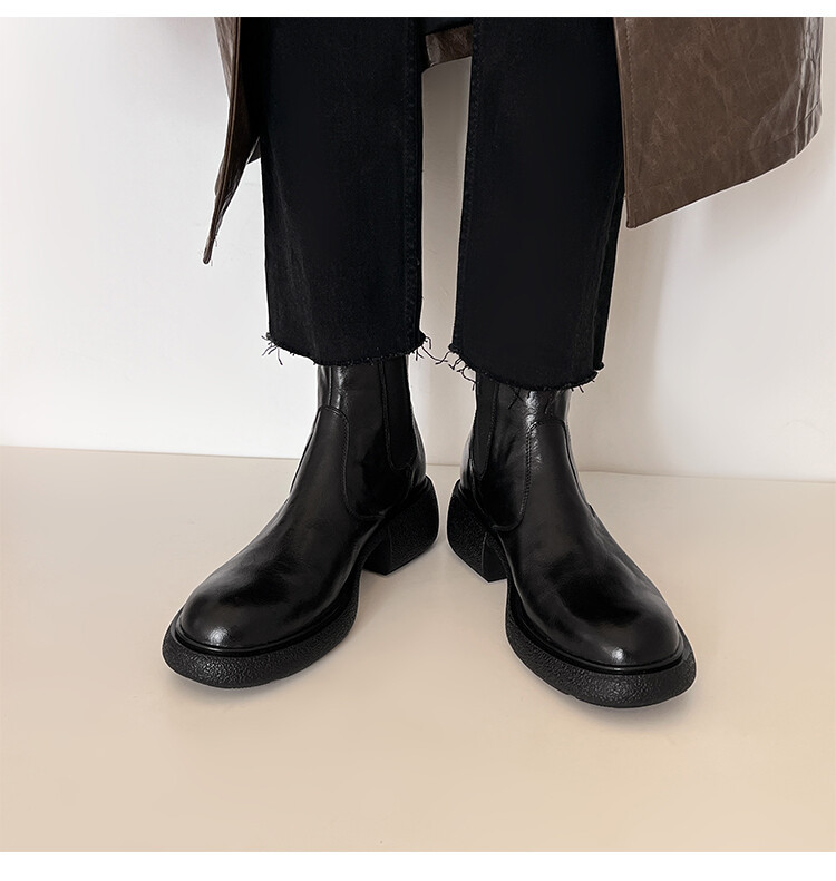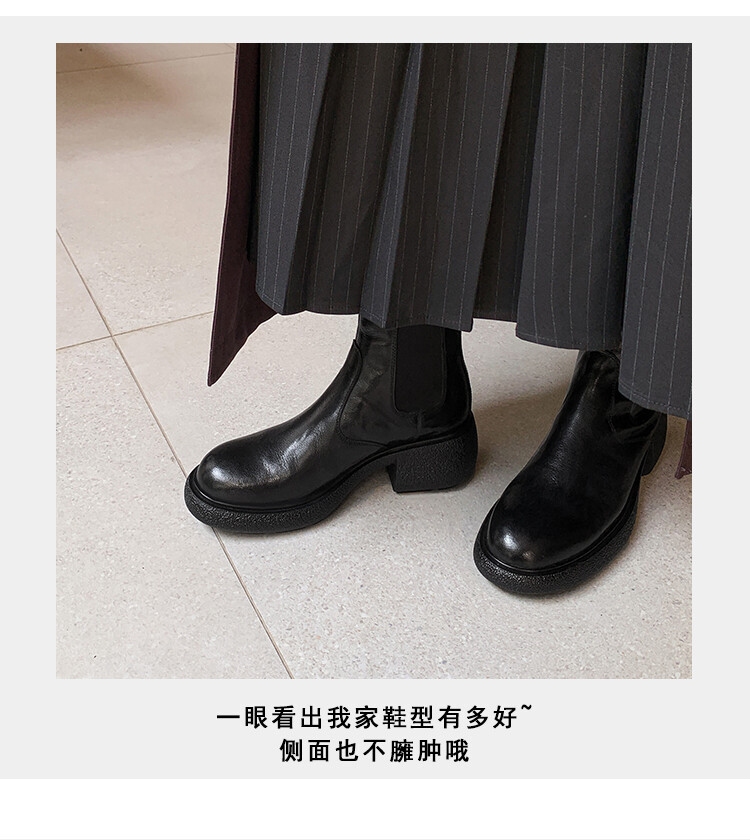 Cowhide 버전 ~ 레트로 다크 브라운 첼시 짧은 부츠 여자 가을과 겨울 2024 새로운 두꺼운 밑창 증가 마틴 부츠 여성스토어 가기