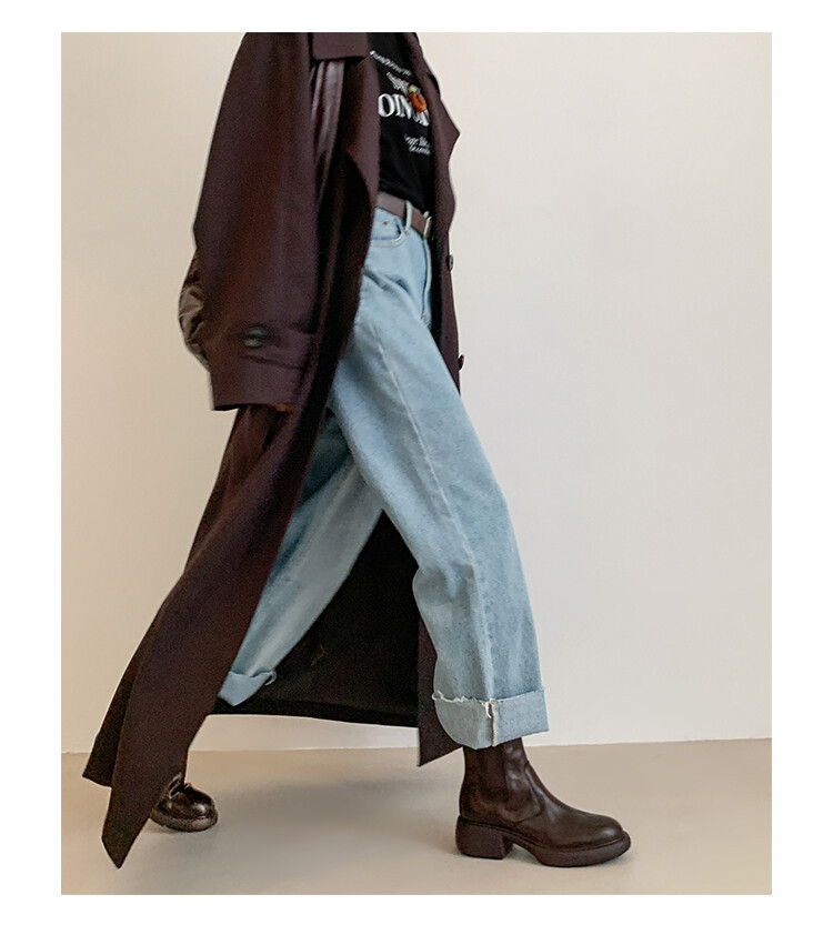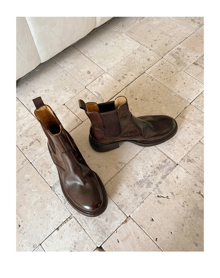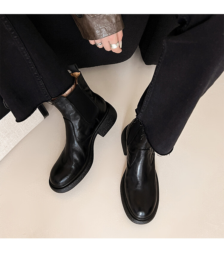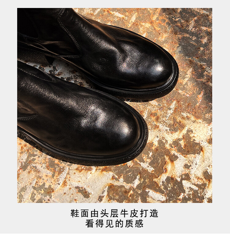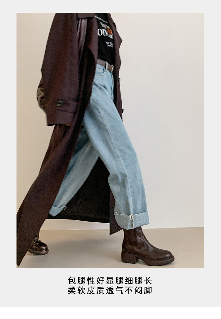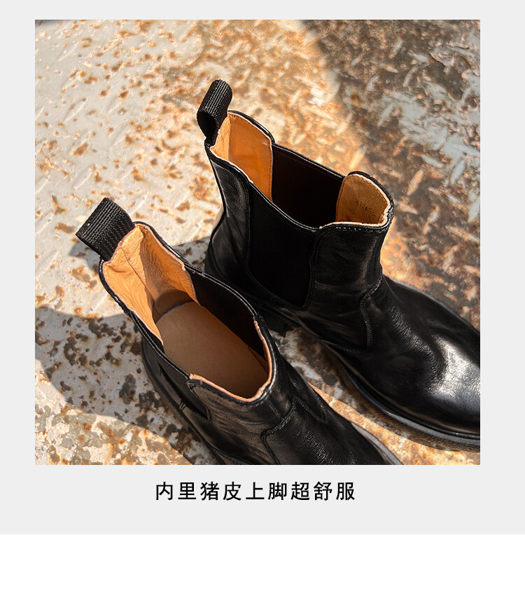 Cowhide 버전 ~ 레트로 다크 브라운 첼시 짧은 부츠 여자 가을과 겨울 2024 새로운 두꺼운 밑창 증가 마틴 부츠 여성스토어 가기