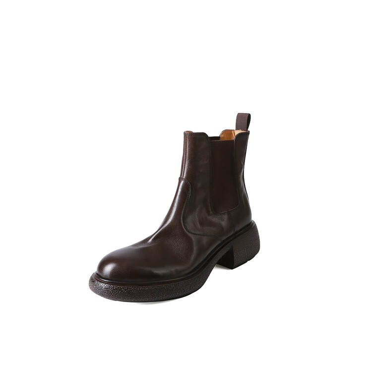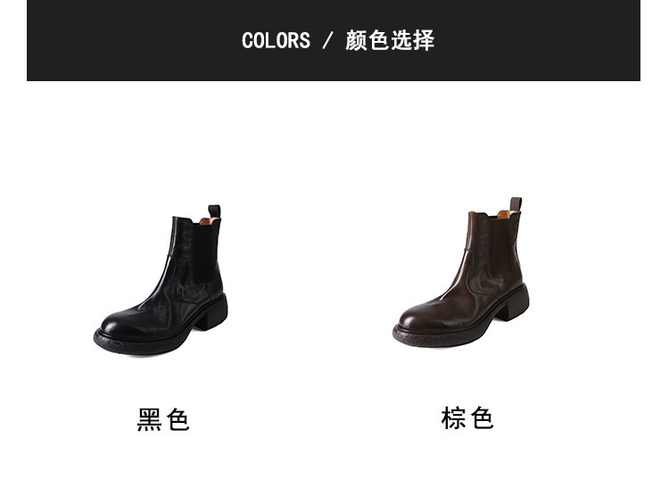 Cowhide 버전 ~ 레트로 다크 브라운 첼시 짧은 부츠 여자 가을과 겨울 2024 새로운 두꺼운 밑창 증가 마틴 부츠 여성