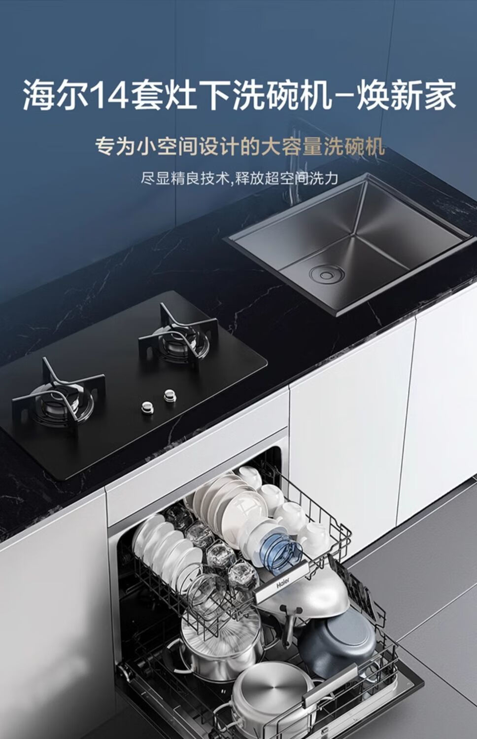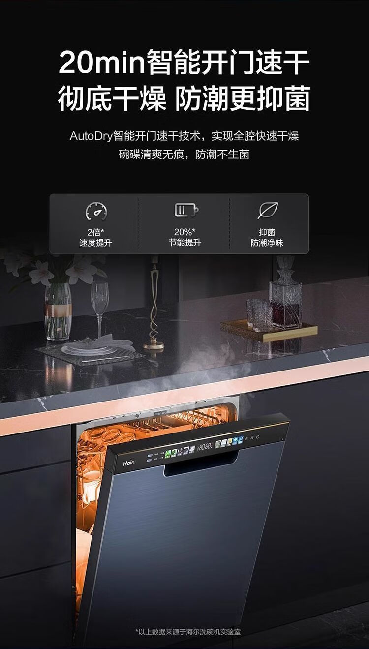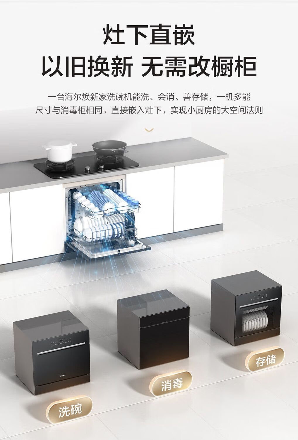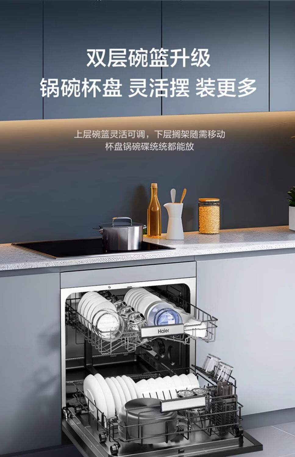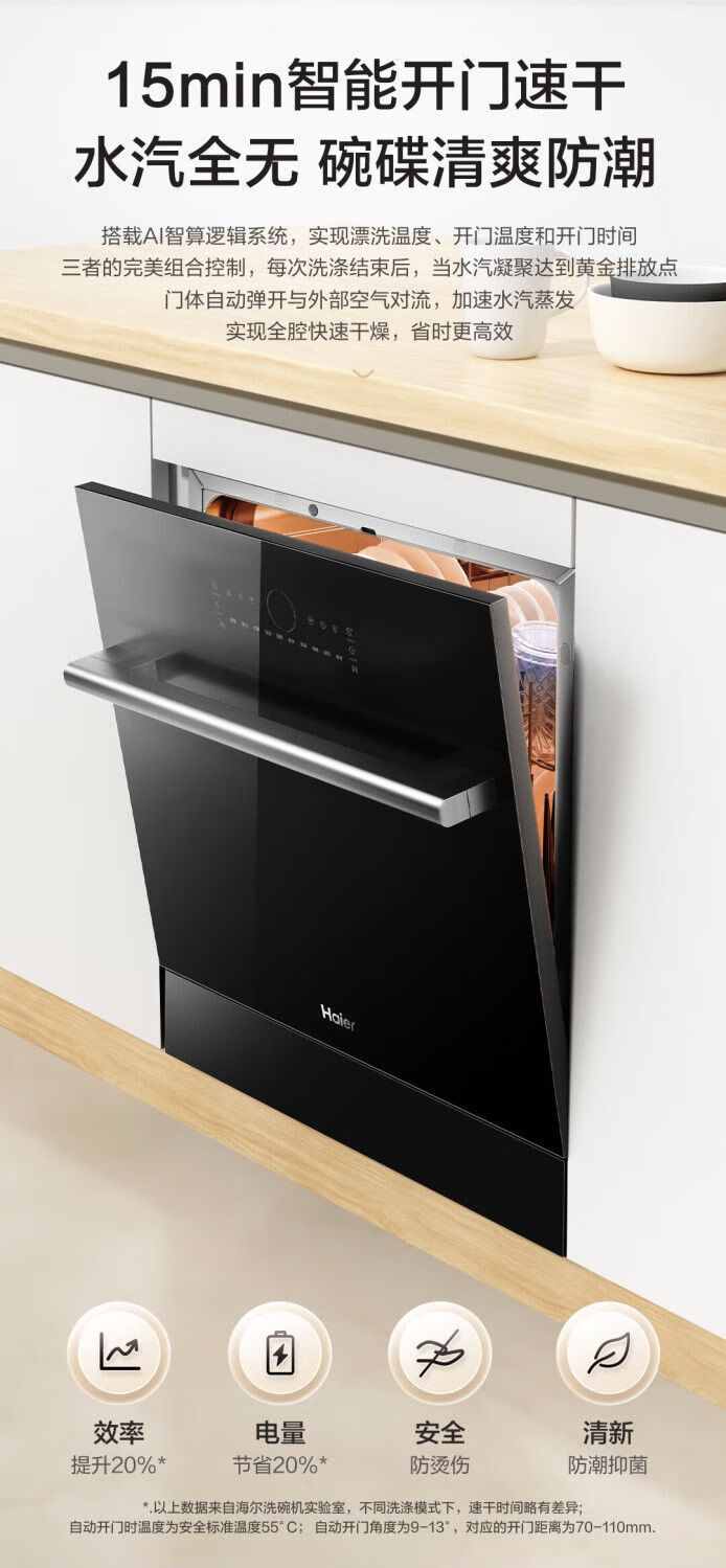 Haier 가정용 12세트 내장형 벽걸이형 식기세척기, 소독, 일체형 1급 수중량 효율 저장, 세척 가능한 냄비 스마트스토어 가기