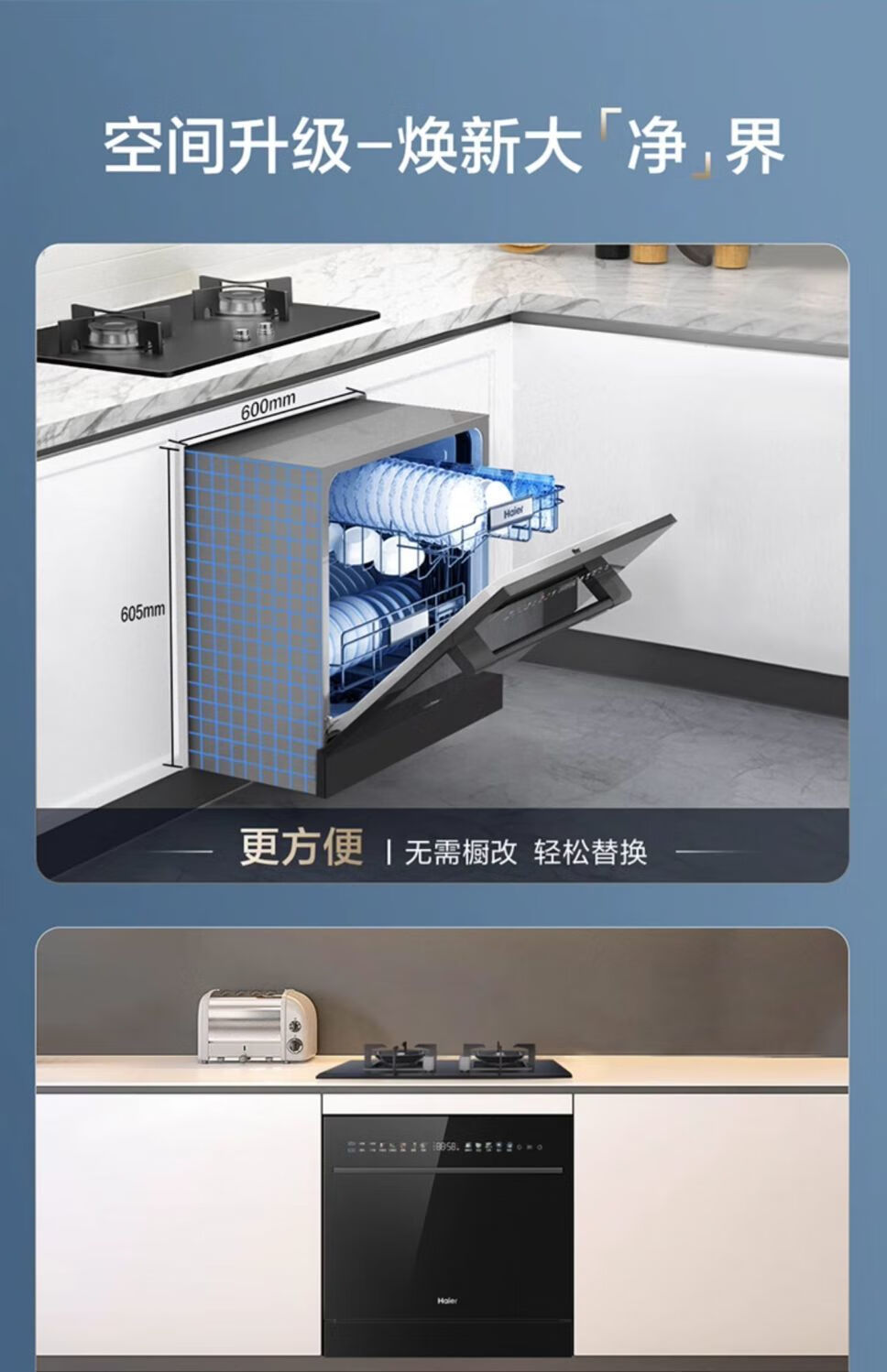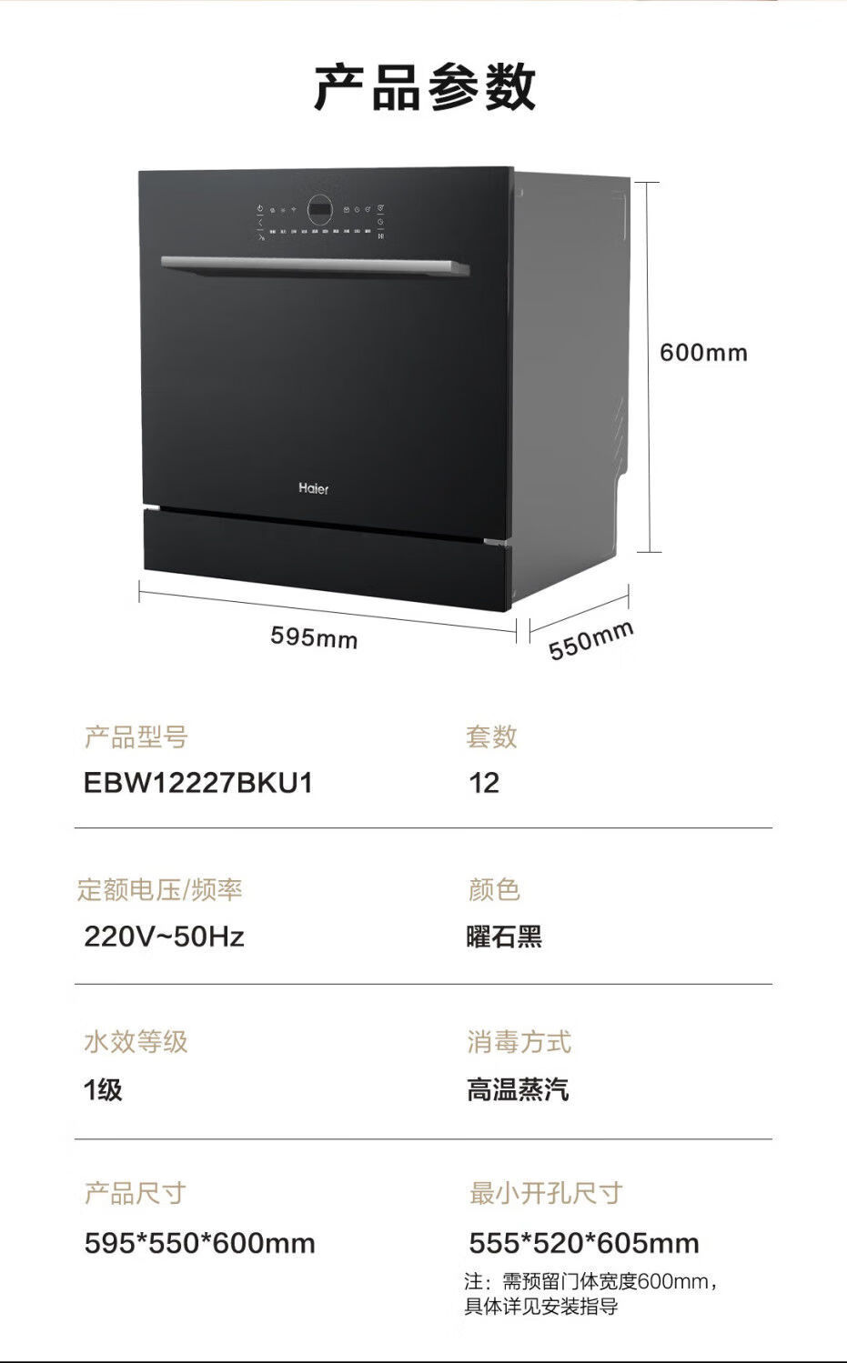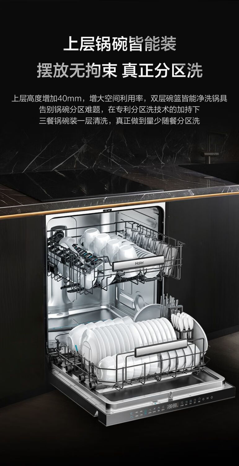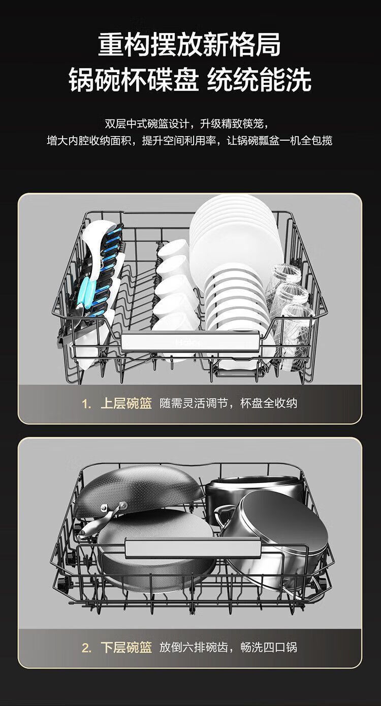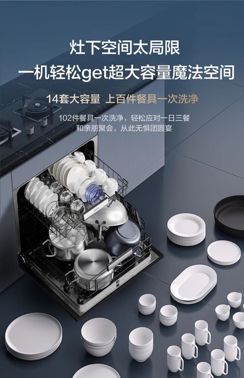 Haier 가정용 12세트 내장형 벽걸이형 식기세척기, 소독, 일체형 1급 수중량 효율 저장, 세척 가능한 냄비 스마트스토어 가기