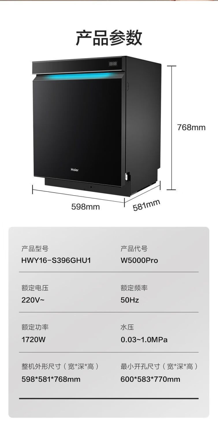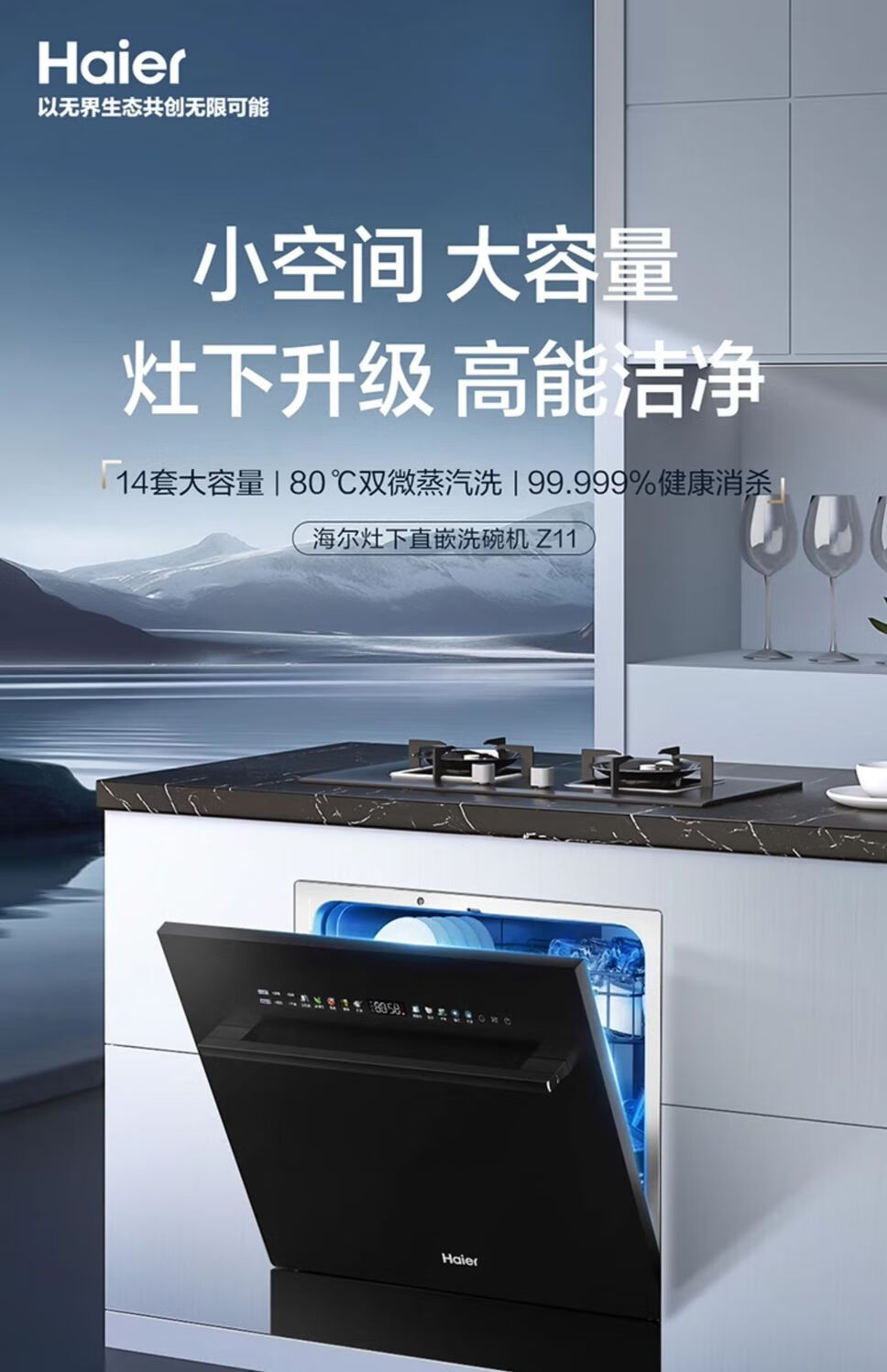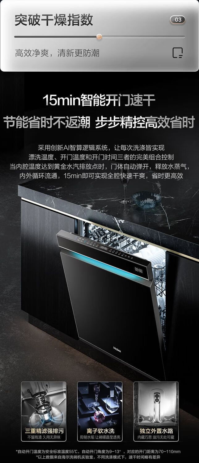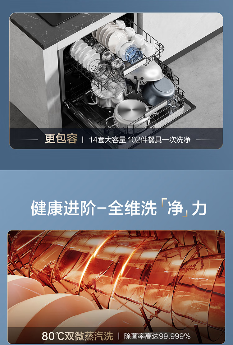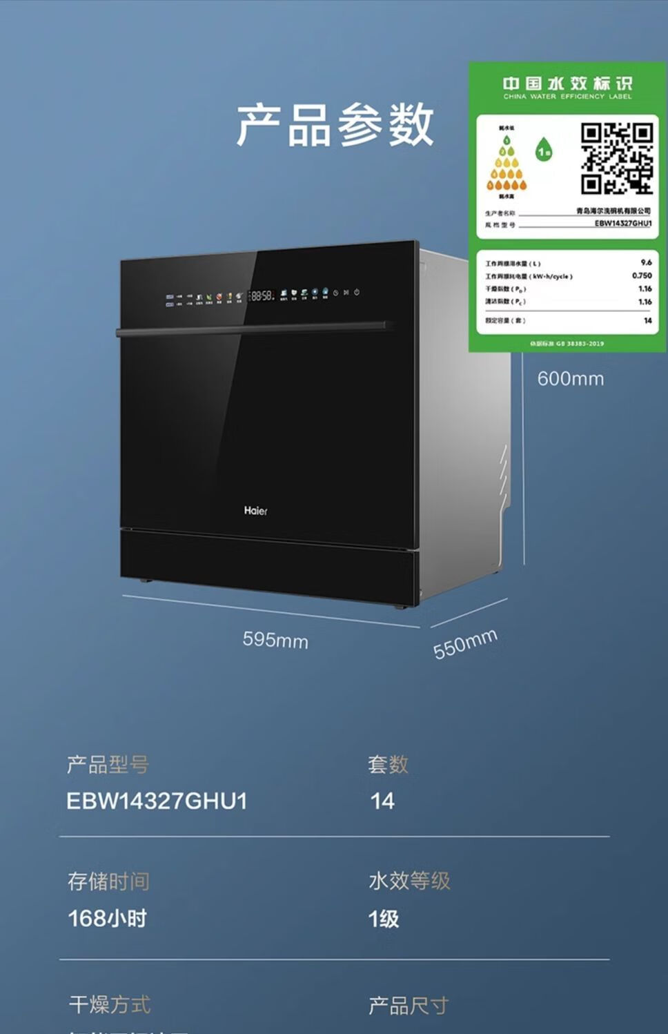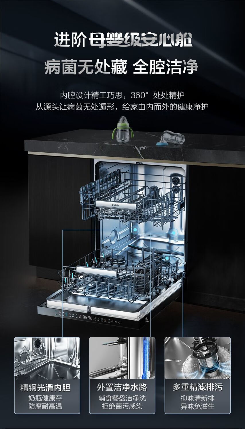Haier 가정용 12세트 내장형 벽걸이형 식기세척기, 소독, 일체형 1급 수중량 효율 저장, 세척 가능한 냄비 스마트스토어 가기