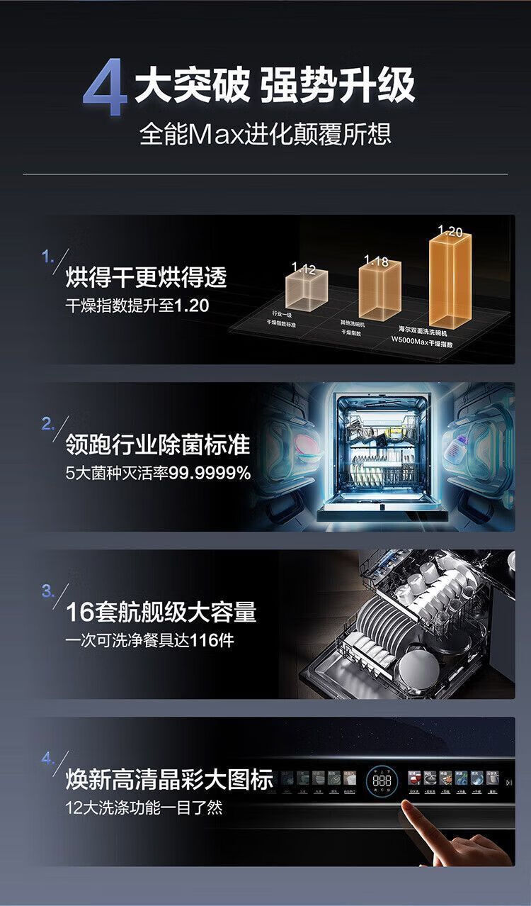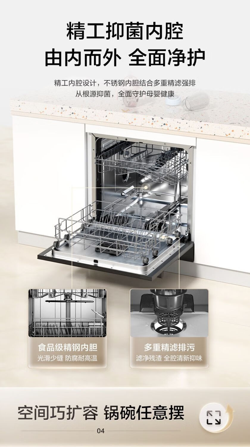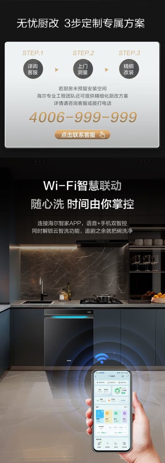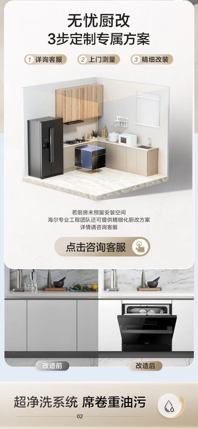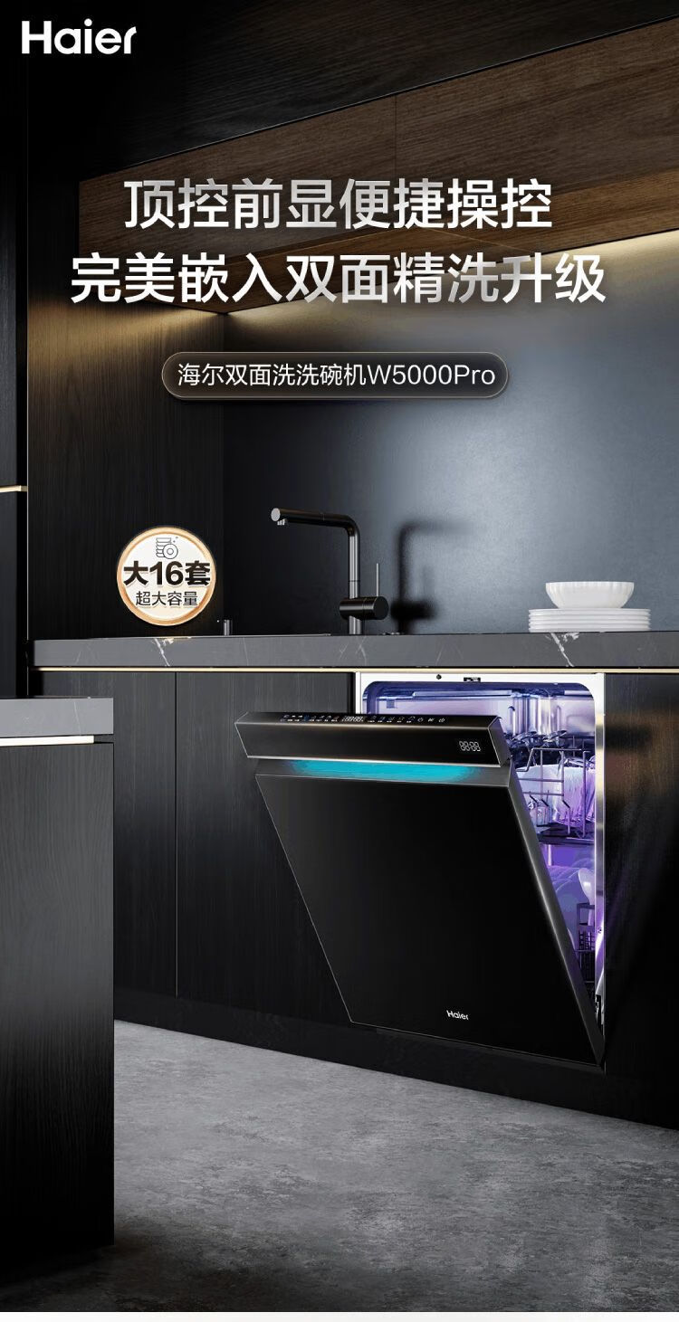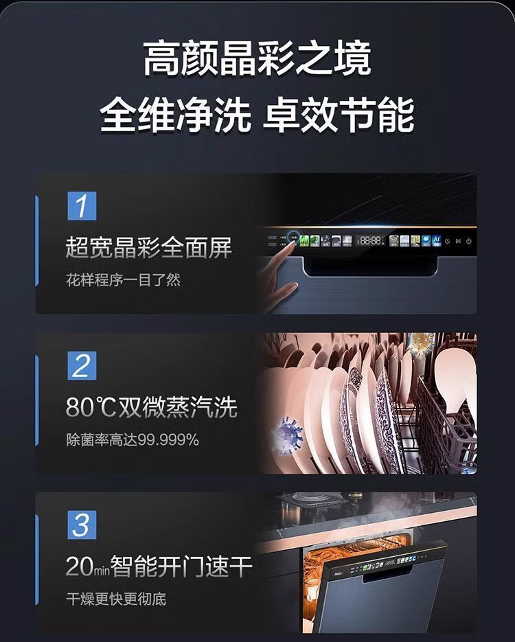 Haier 가정용 12세트 내장형 벽걸이형 식기세척기, 소독, 일체형 1급 수중량 효율 저장, 세척 가능한 냄비 스마트스토어 가기
