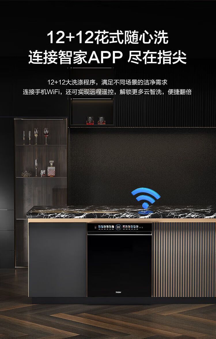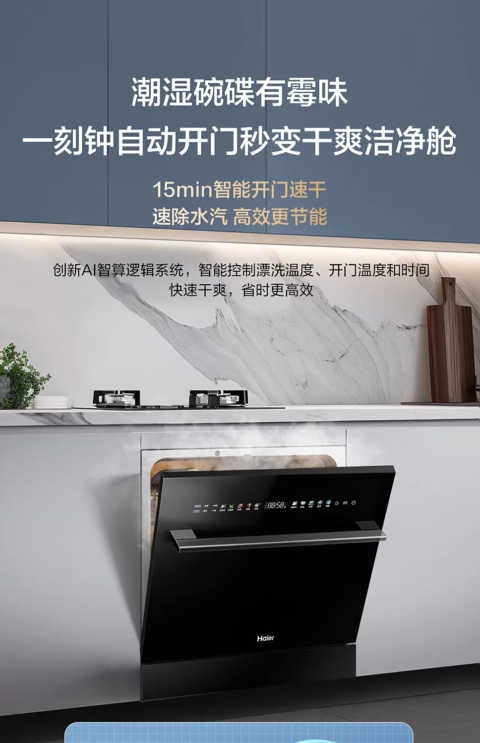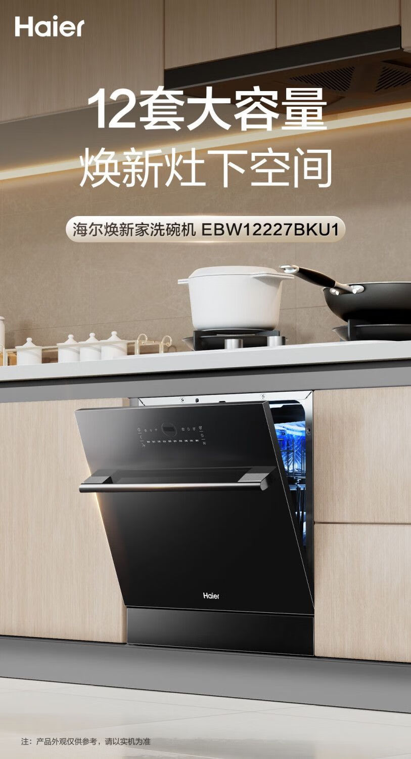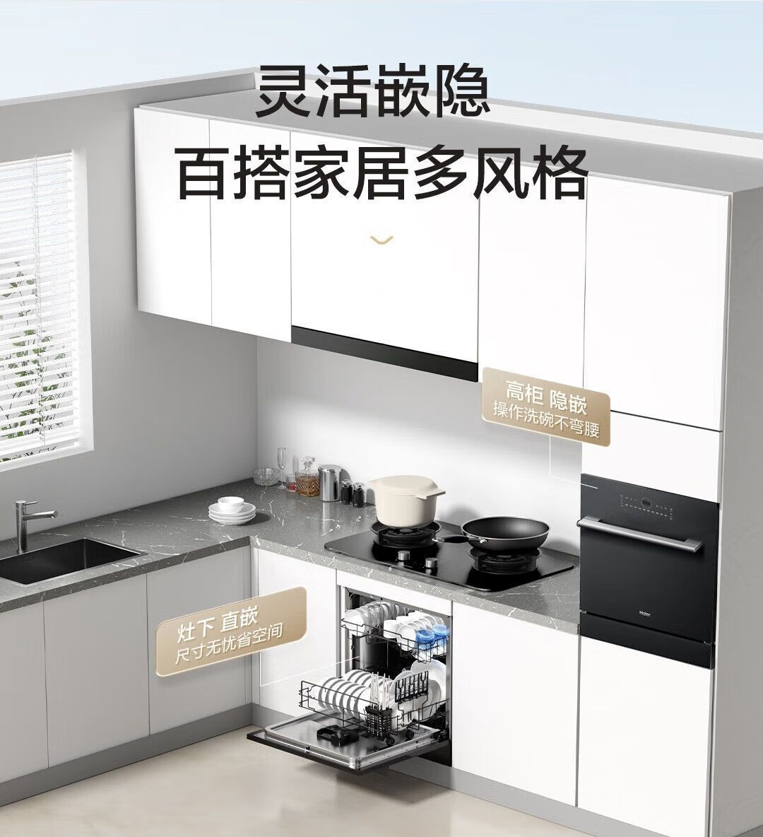 Haier 가정용 12세트 내장형 벽걸이형 식기세척기, 소독, 일체형 1급 수중량 효율 저장, 세척 가능한 냄비 스마트
