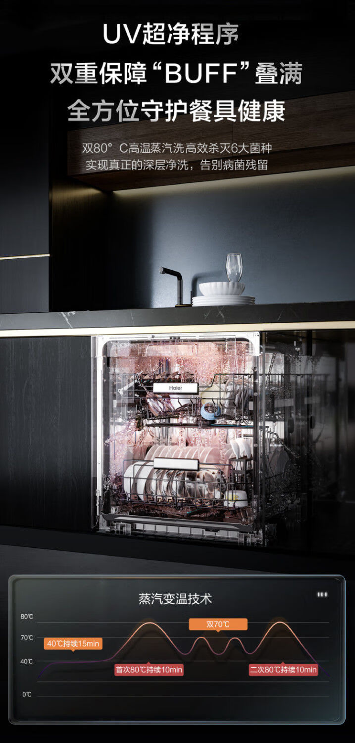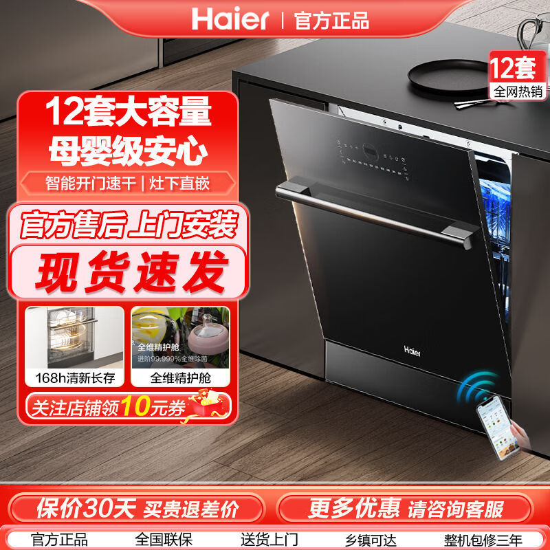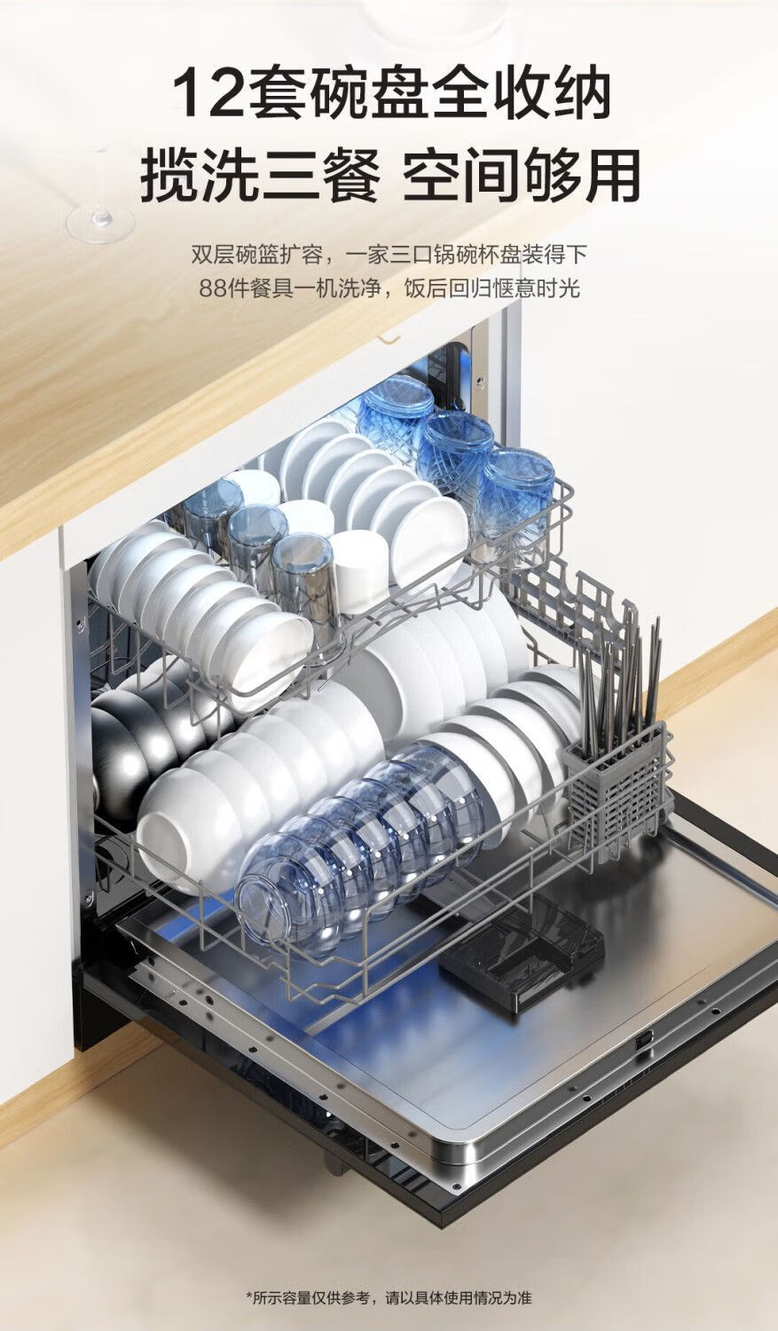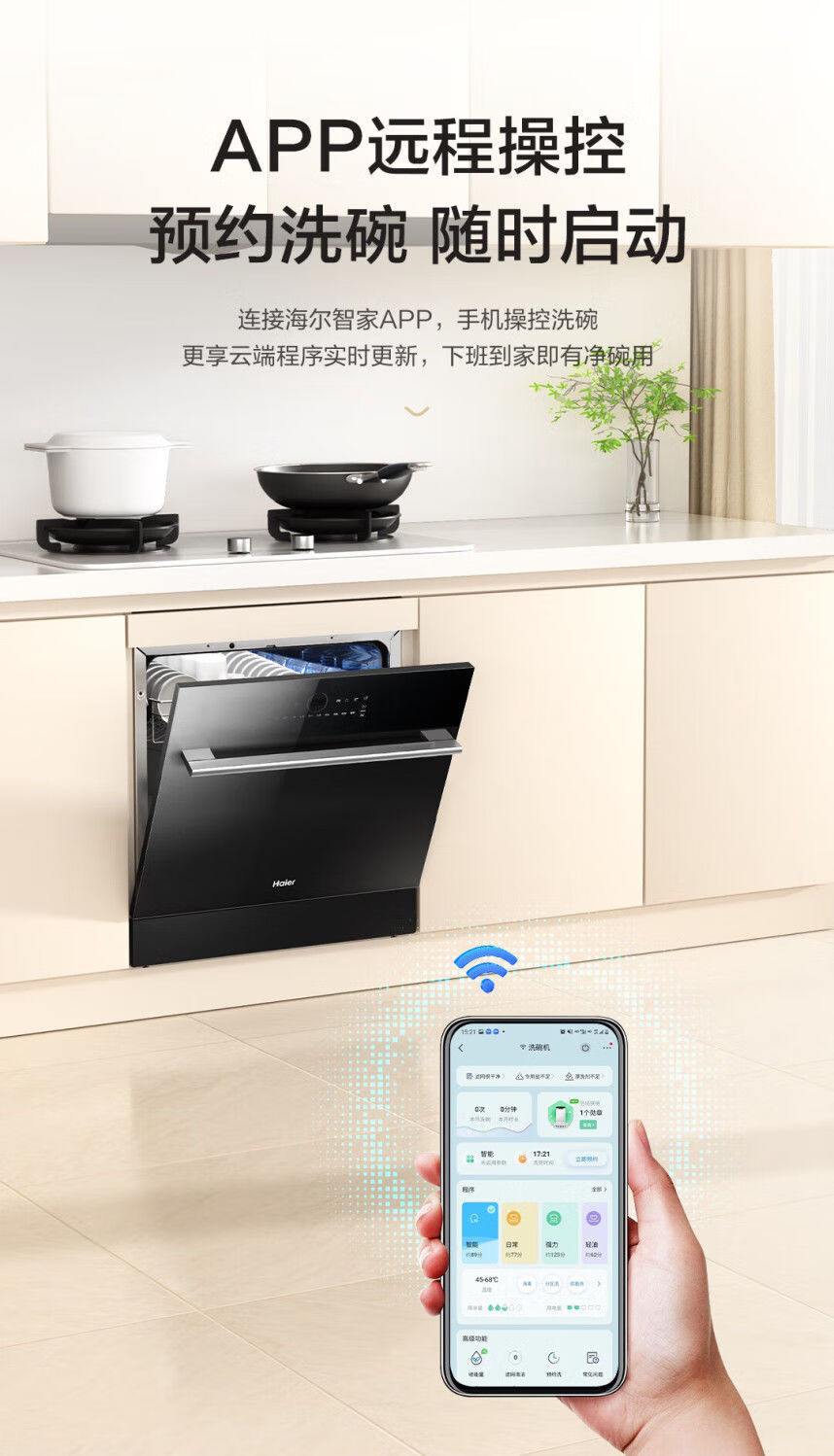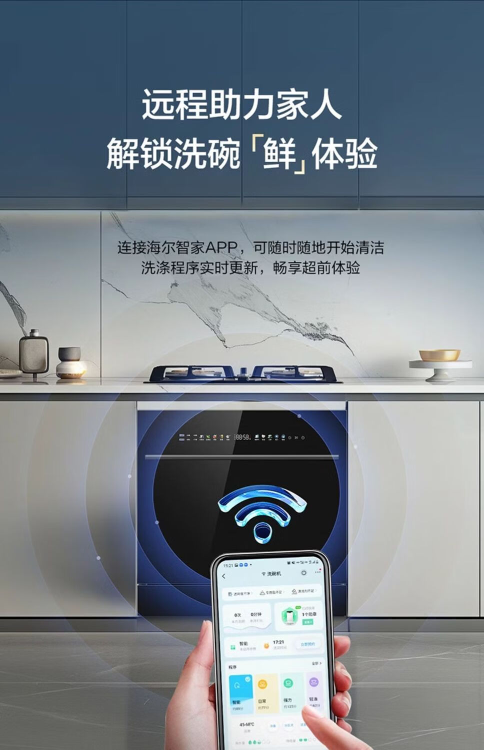 Haier 가정용 12세트 내장형 벽걸이형 식기세척기, 소독, 일체형 1급 수중량 효율 저장, 세척 가능한 냄비 스마트