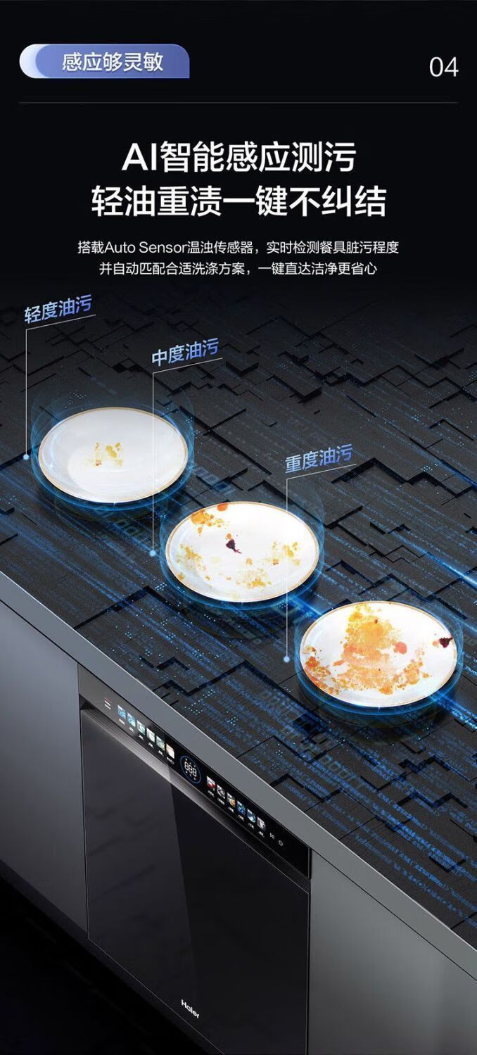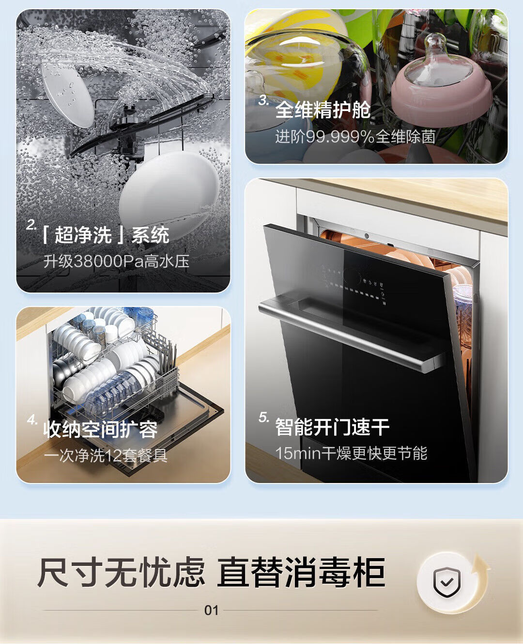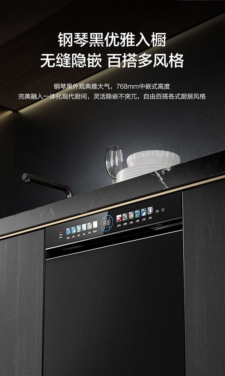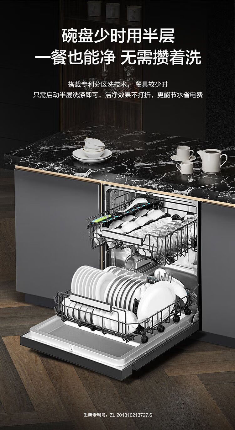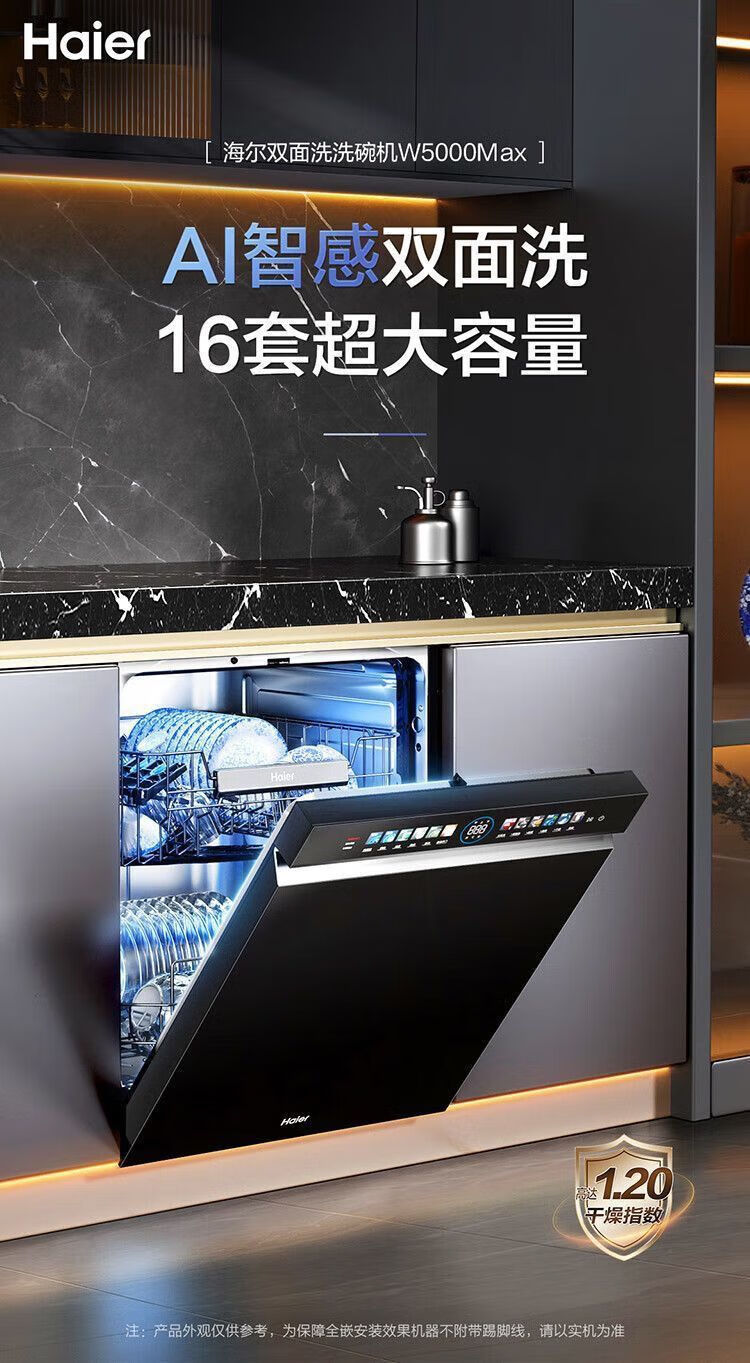 Haier 가정용 12세트 내장형 벽걸이형 식기세척기, 소독, 일체형 1급 수중량 효율 저장, 세척 가능한 냄비 스마트
