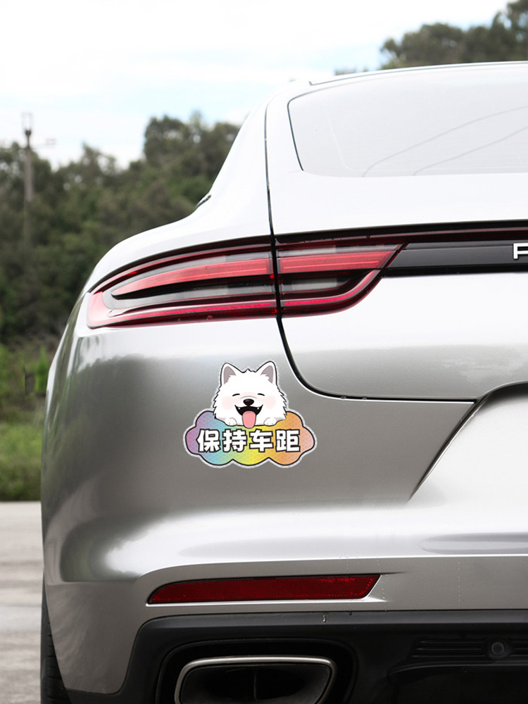 차 뒤쪽을 경고하기 위해 차 사이의 거리를 유지하십시오. 자기 스티커. 반사 스티커. 창조적 인 텍스트. 스크래치 장식 스티커. 안전한 여행