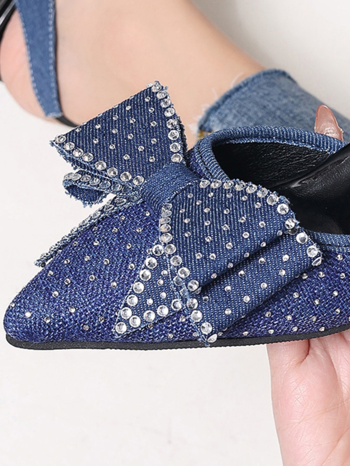 작은 우아한 라인스톤 포인팅 활 하이힐 여성 여름 2025 새로운 스틸레토 힐 대외 무역 Baotou 샌들 43