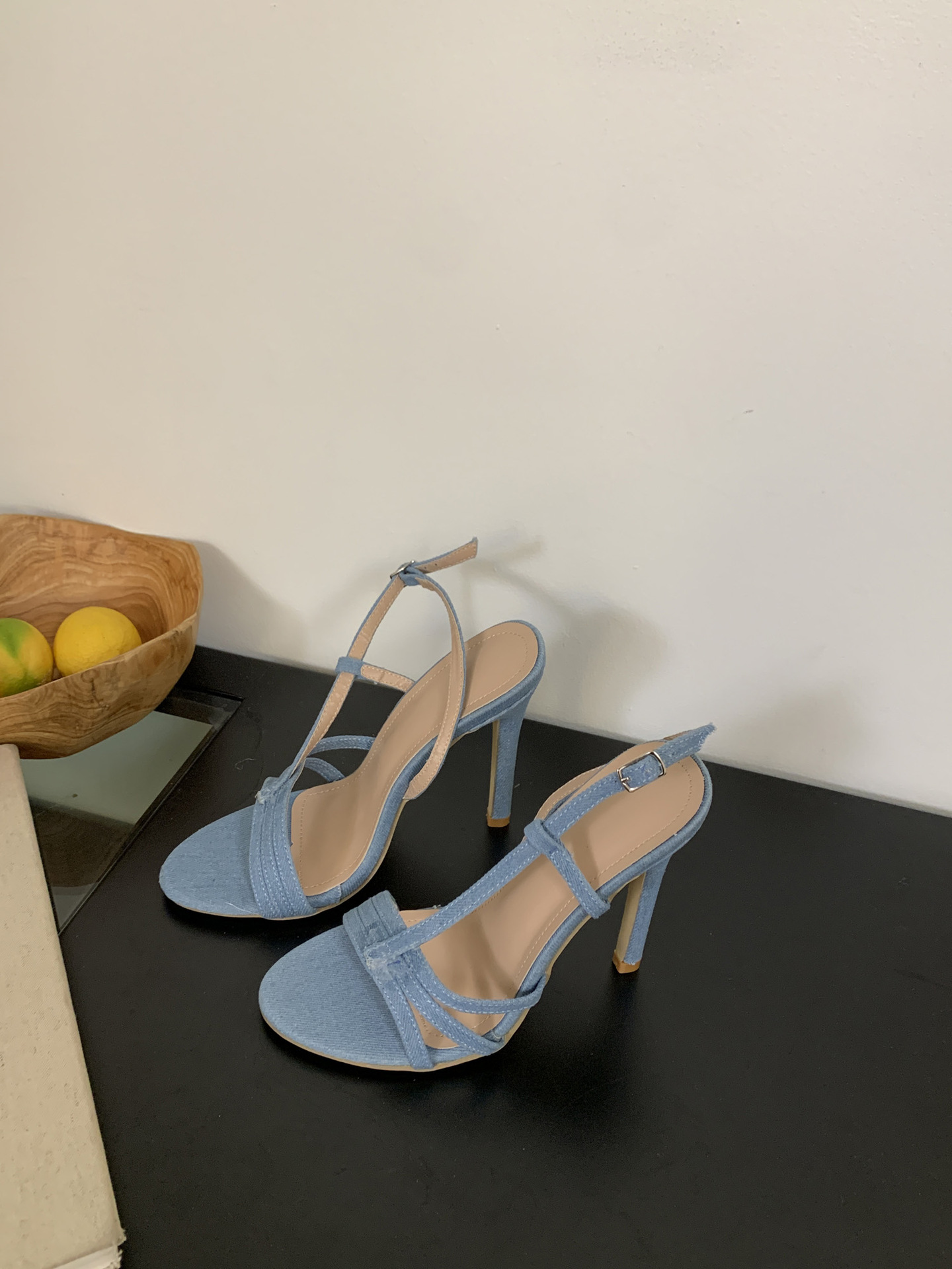 하이힐 샌들 여름 새로운 올매치 인터넷 인기 11cm 캣워크 섹시 침대 한 단어 하이힐 샌들, 스틸레토 힐스