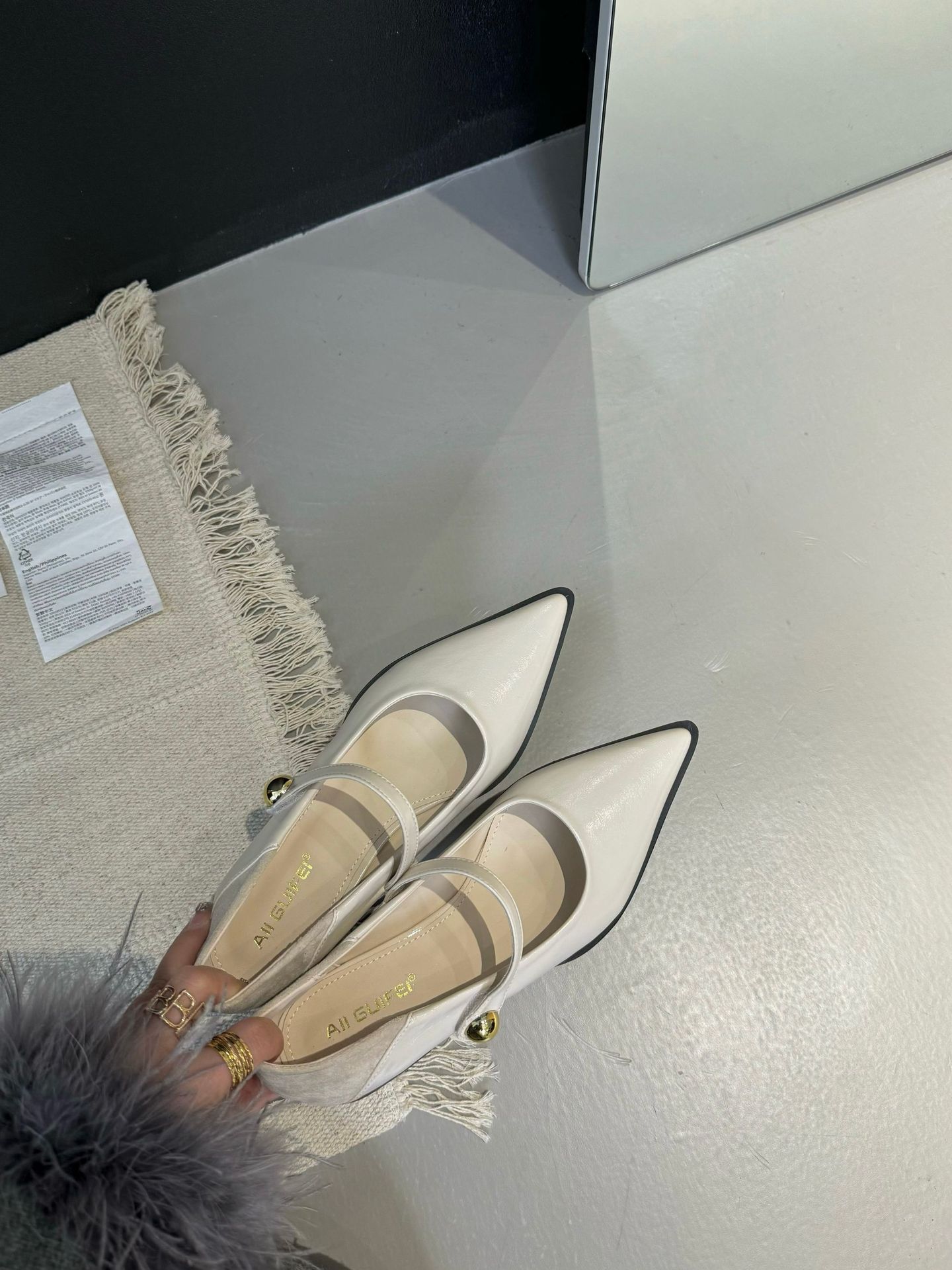프랑스 스타일의 우아한 싱글 레이어 신발 여성용 얕은 탑 소프트 가죽 펌프 복고풍 뾰족한 발가락 높이 증가 메리 제인 신발스토어 가기
