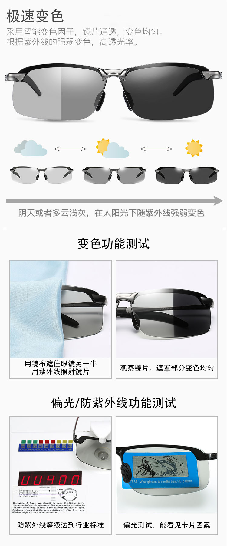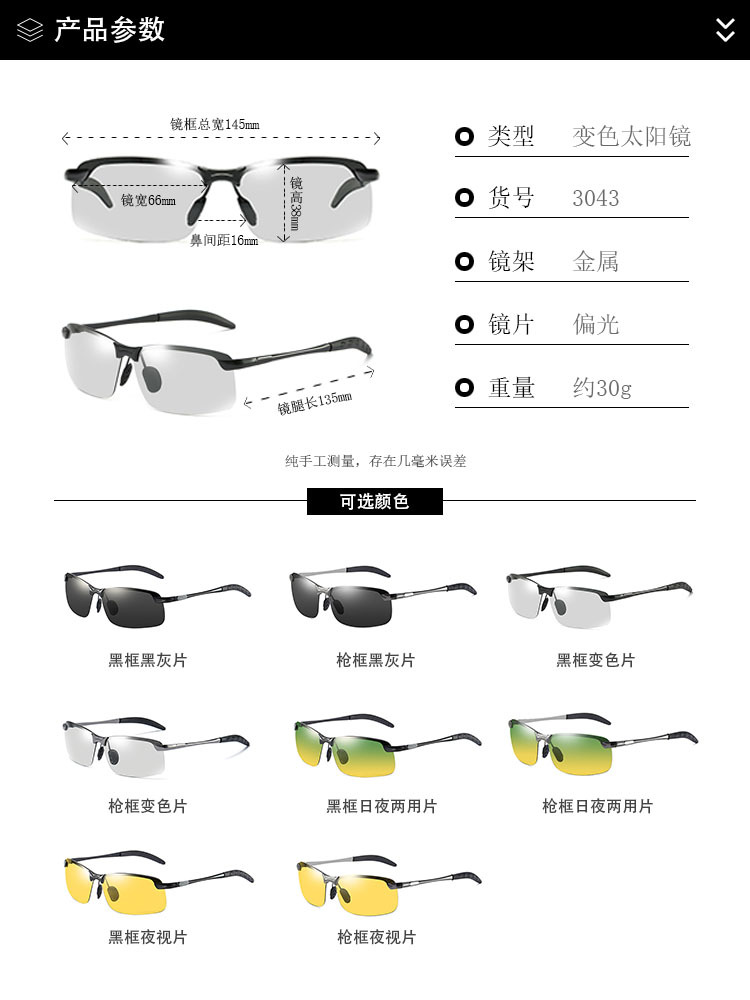 3043 야외 낚시 남성용 편광 스마트 감광성 금속 색상 변경 선글라스 운전일 및 야간 선글라스스토어 가기