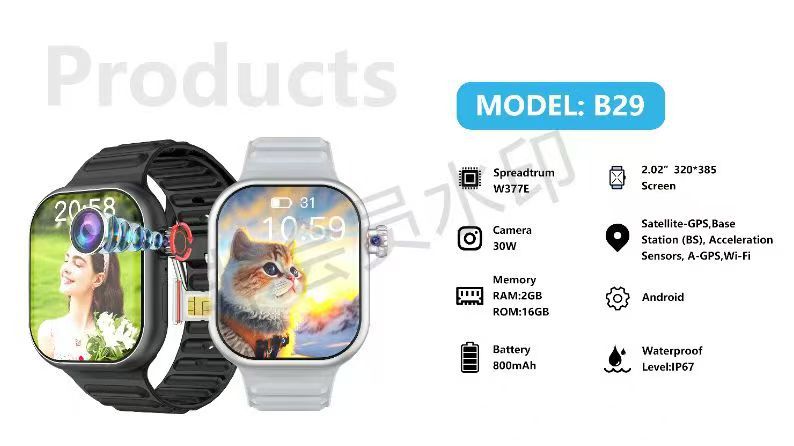 • [B29A 크로스보더 버전] 5G 블랙 190°텔레스코픽 회전 카메라 4K 울트라 클리어 스크린 아시아, 유럽, 홍콩, 마카오, 대만, 다국어 옵션 심박수/혈중 산소/