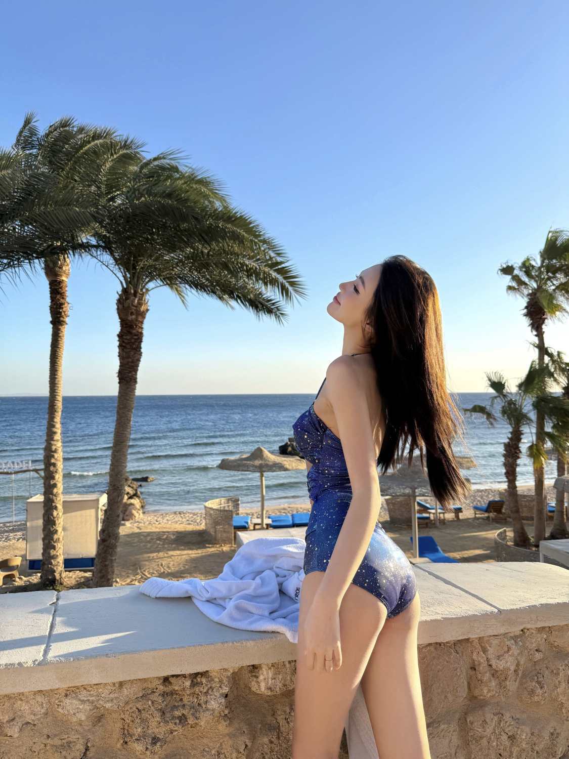 2025 새로운 하이파이 연인 사파이어 블루 아일랜드 휴일 결합 된 비치 롱 원피스 수영복 여성의 섹시한 화이트 여름