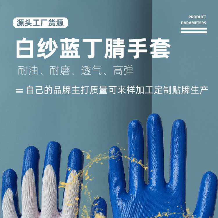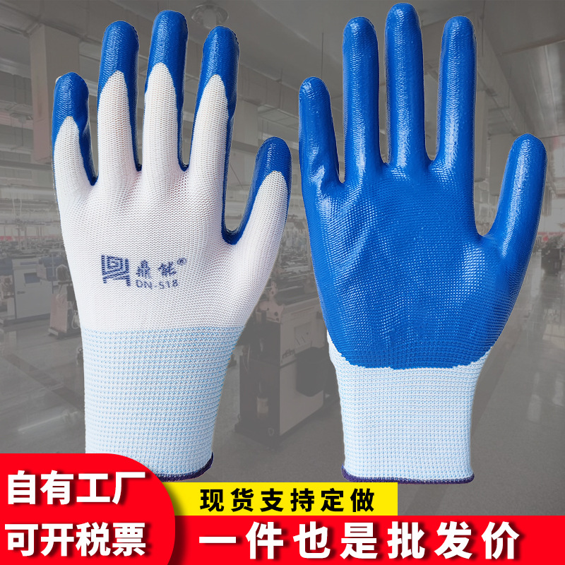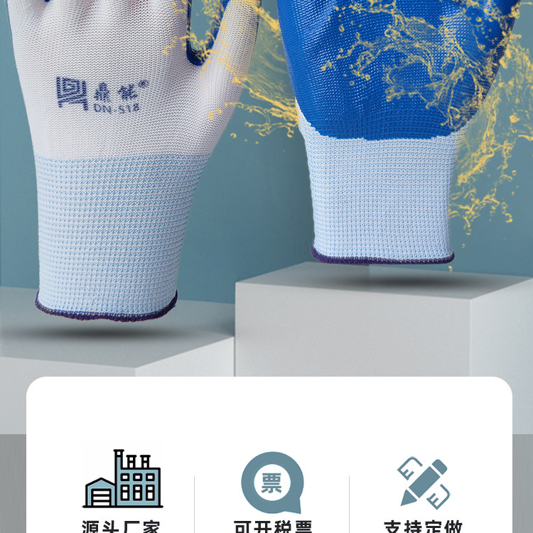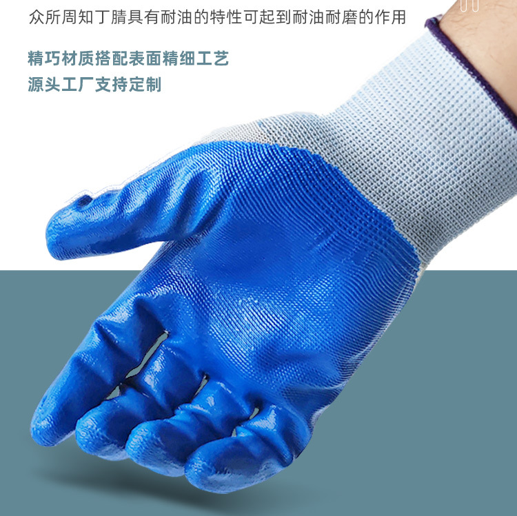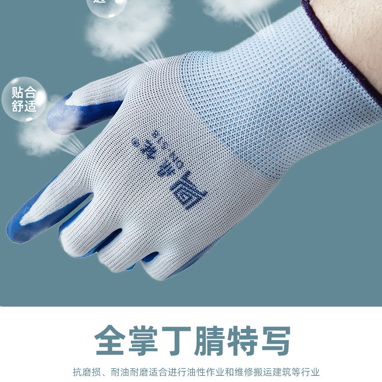 도매 노동 장갑 나일론 니트릴 내마모성 미끄럼 방지 보호 접착제 담그는 창고 취급 작업 장갑스토어 가기