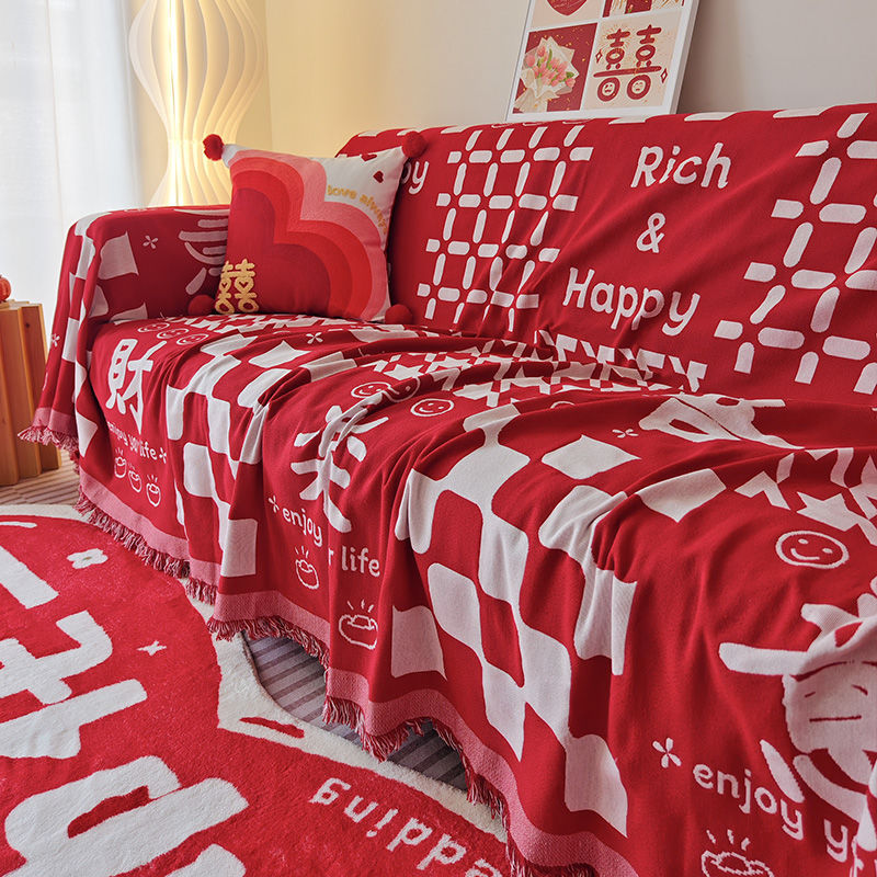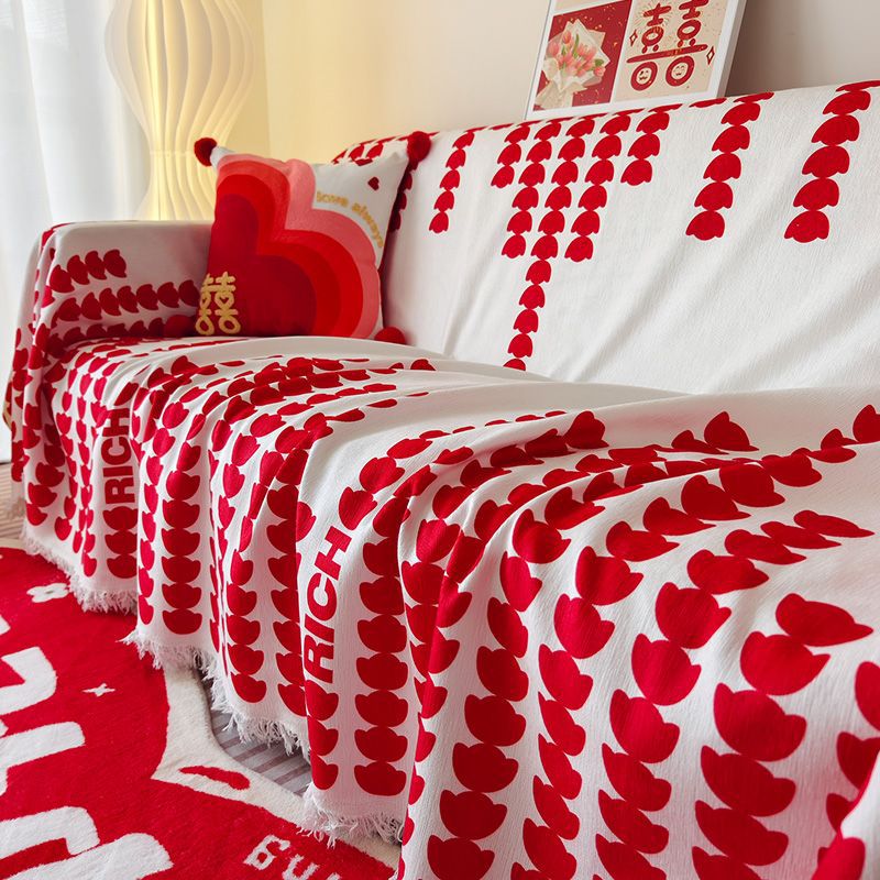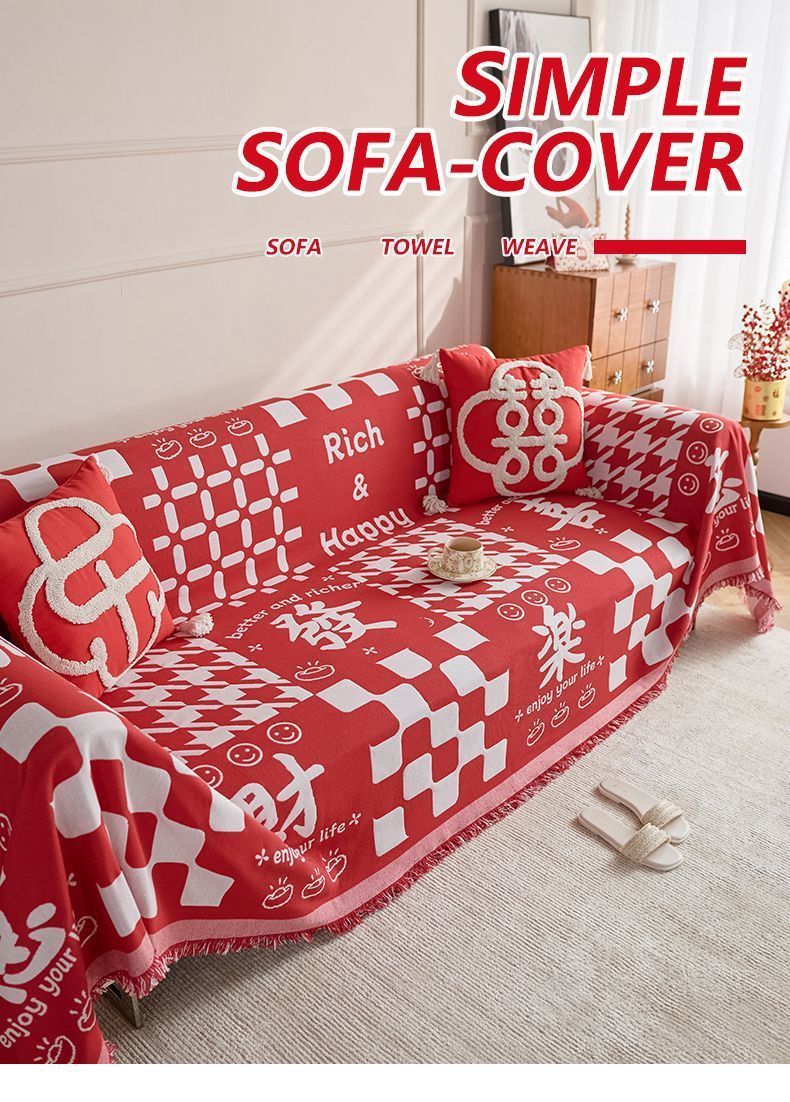 새해 소파 커버 천 레드 축제 유니버설 소파 커버 웨딩 소파 수건 원피스 풀 커버 담요 새로운스토어 가기