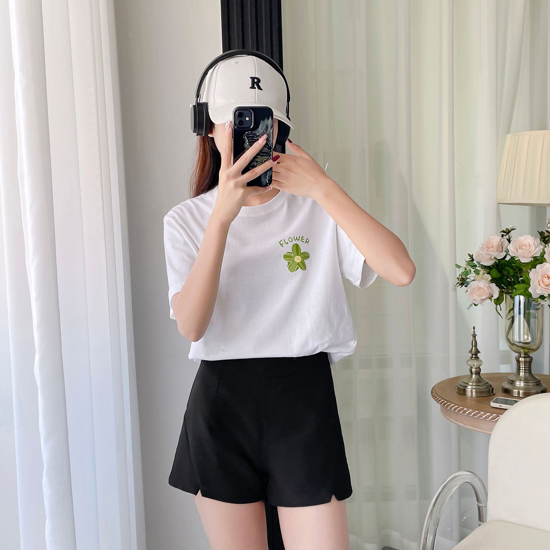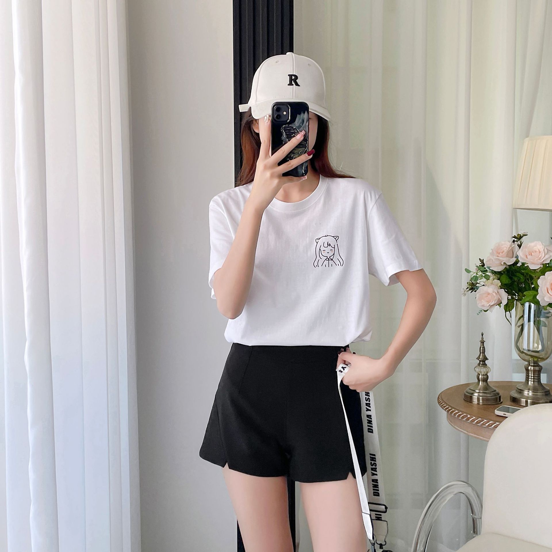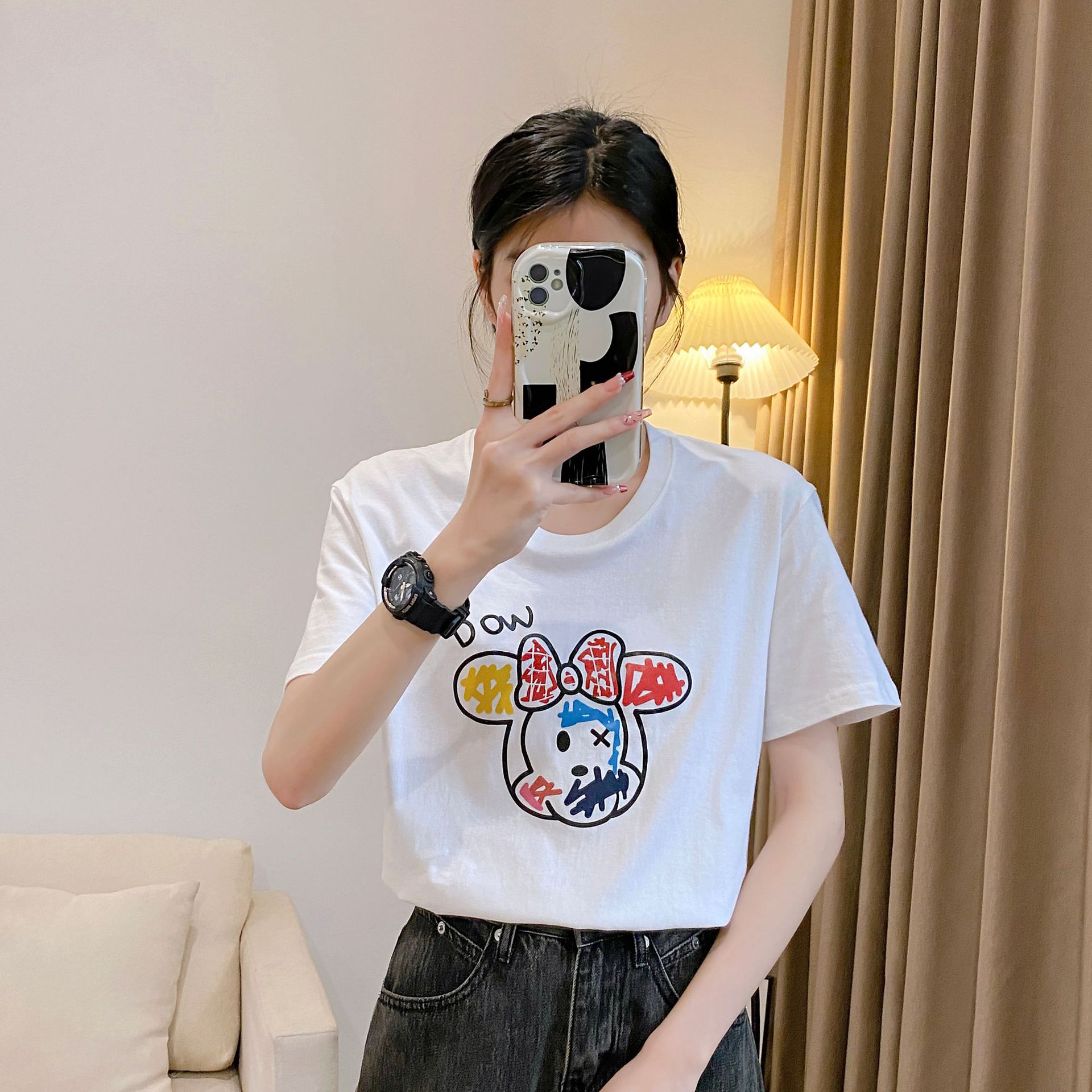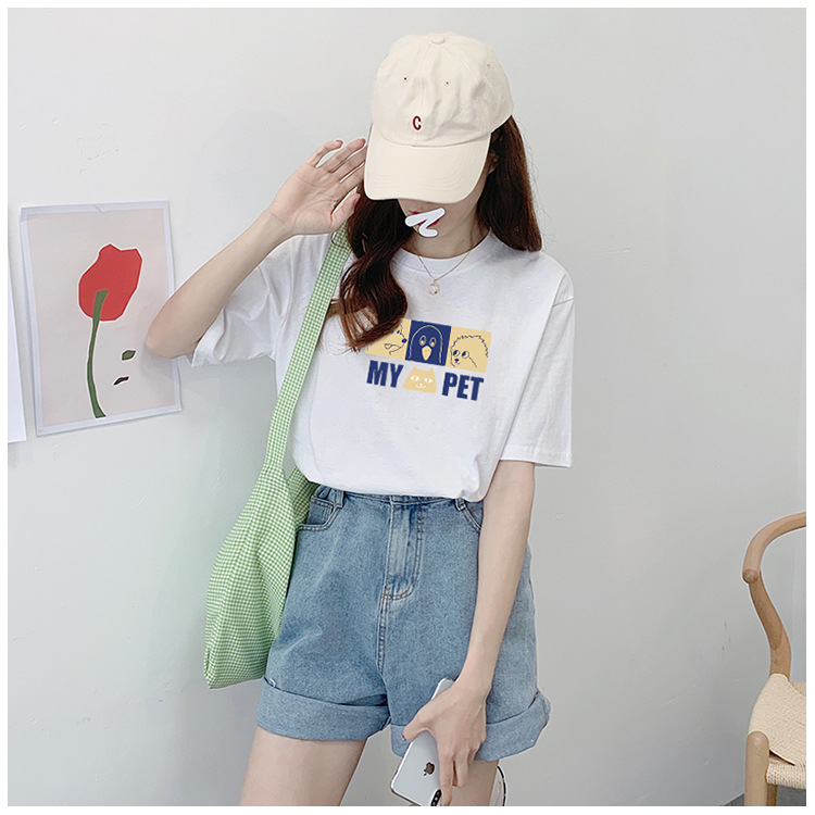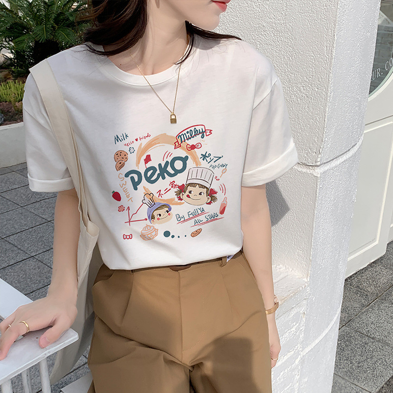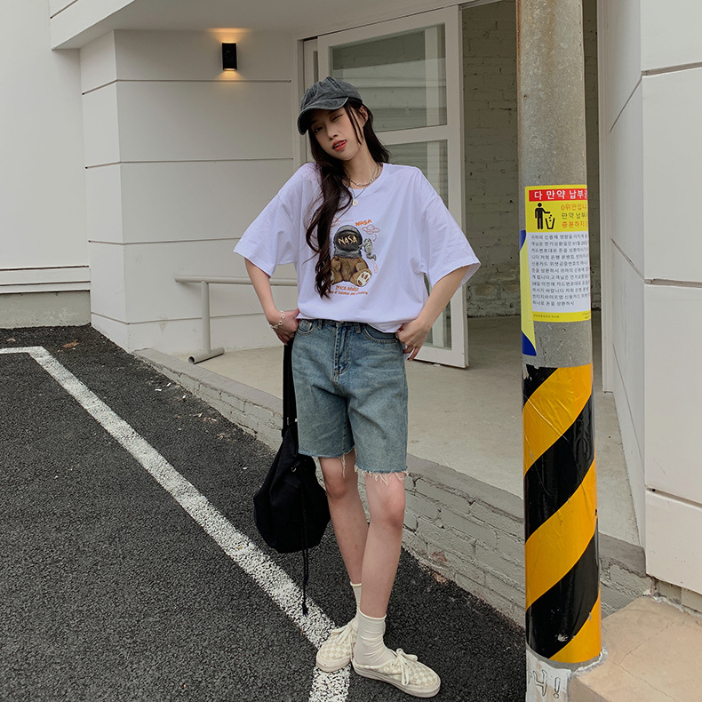 순면 어깨 반소매 티셔츠 여성 톱 2025 여름 새로운 여성 의류 느슨한 인테리어 화이트 인 여성용 의류스토어 가기