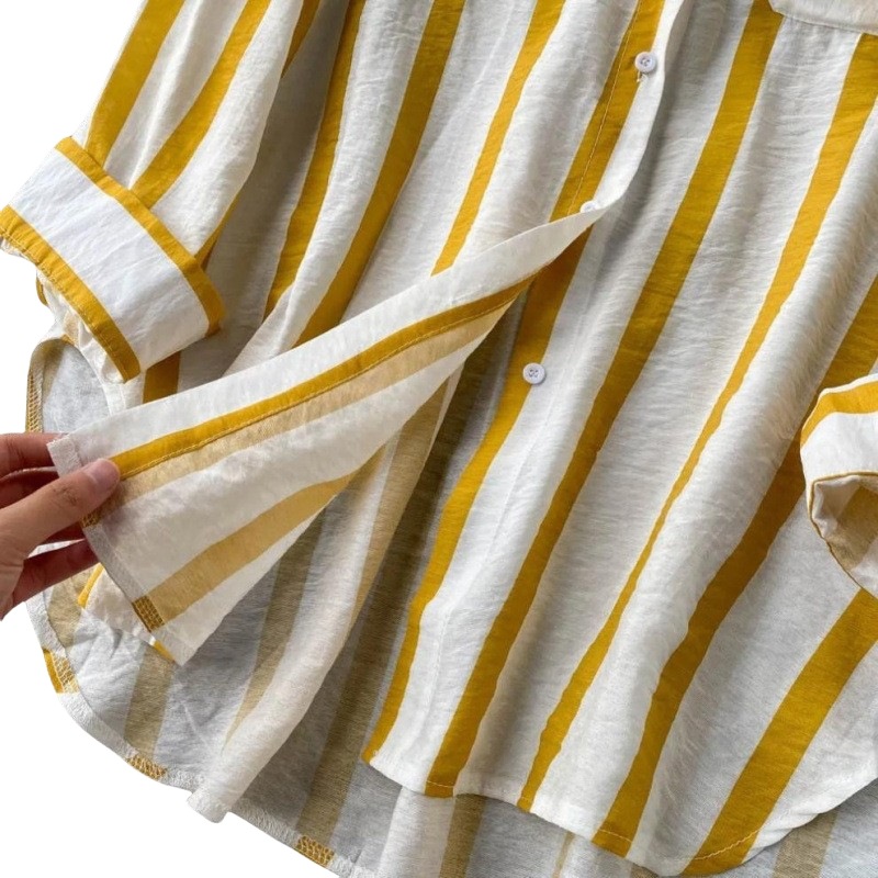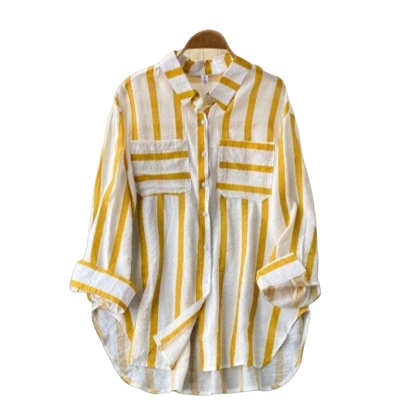 엄선된 일본과 한국 캐주얼 중간 길이 스트라이프 싱글 행 포켓 카디건 여성 캐주얼 탑 도매