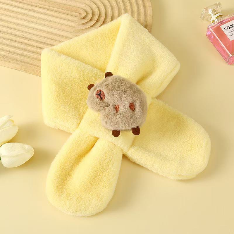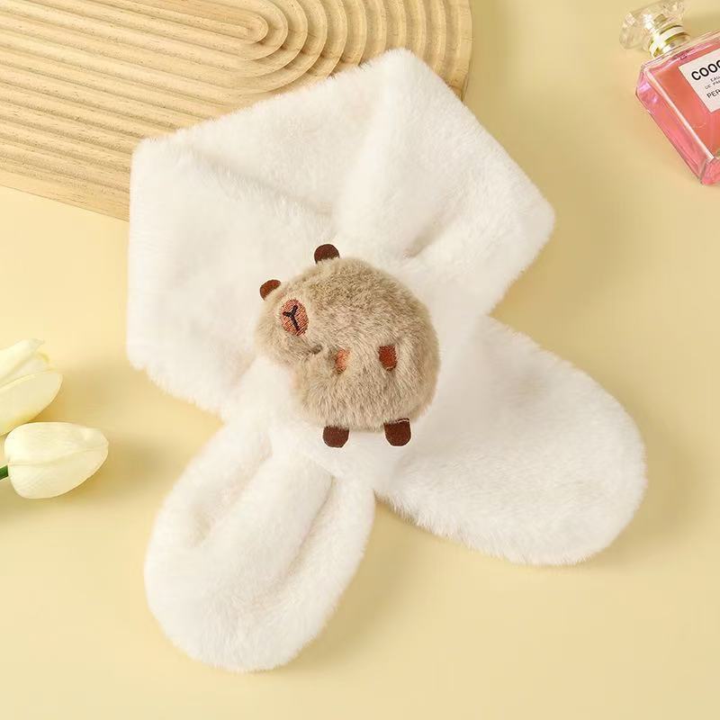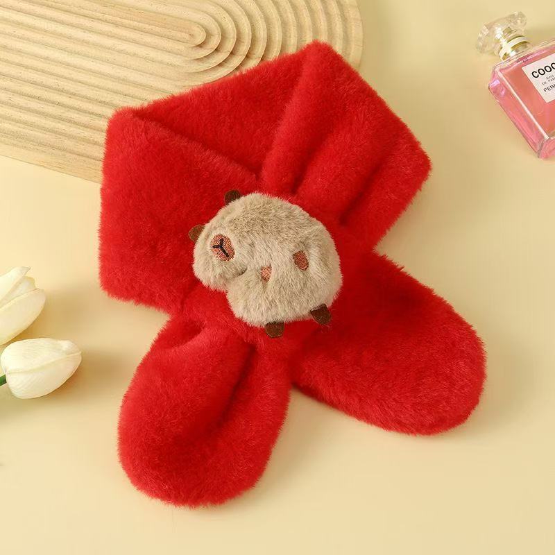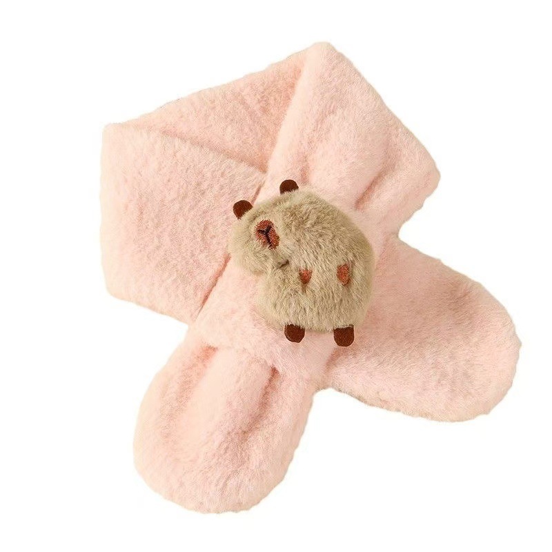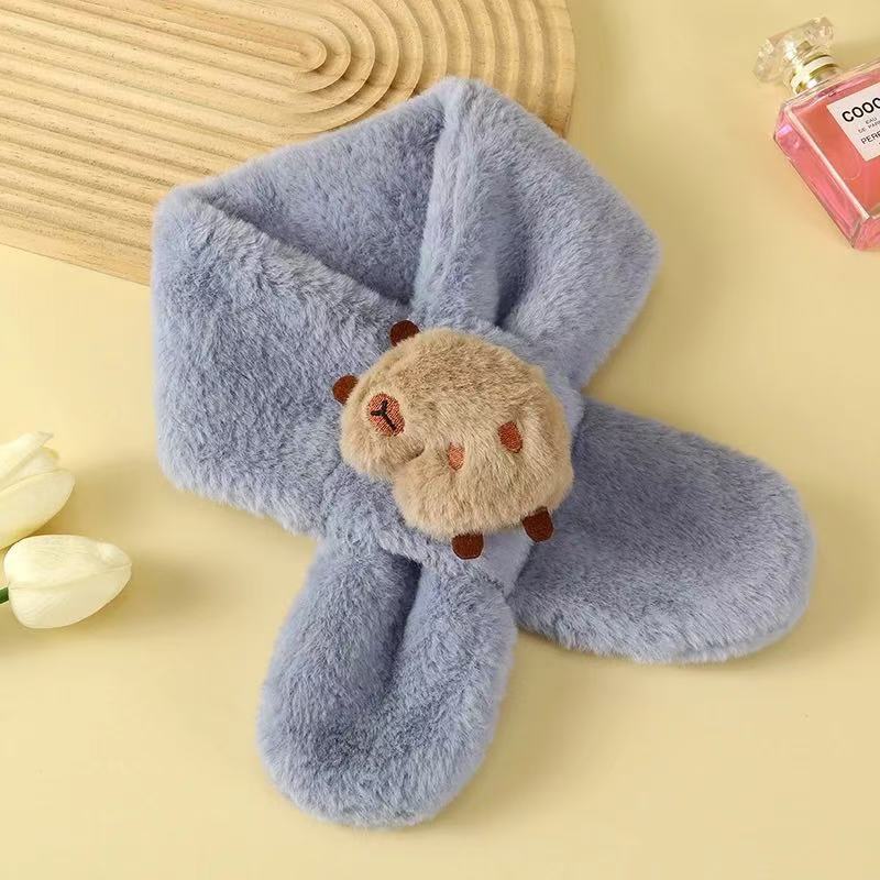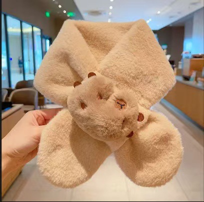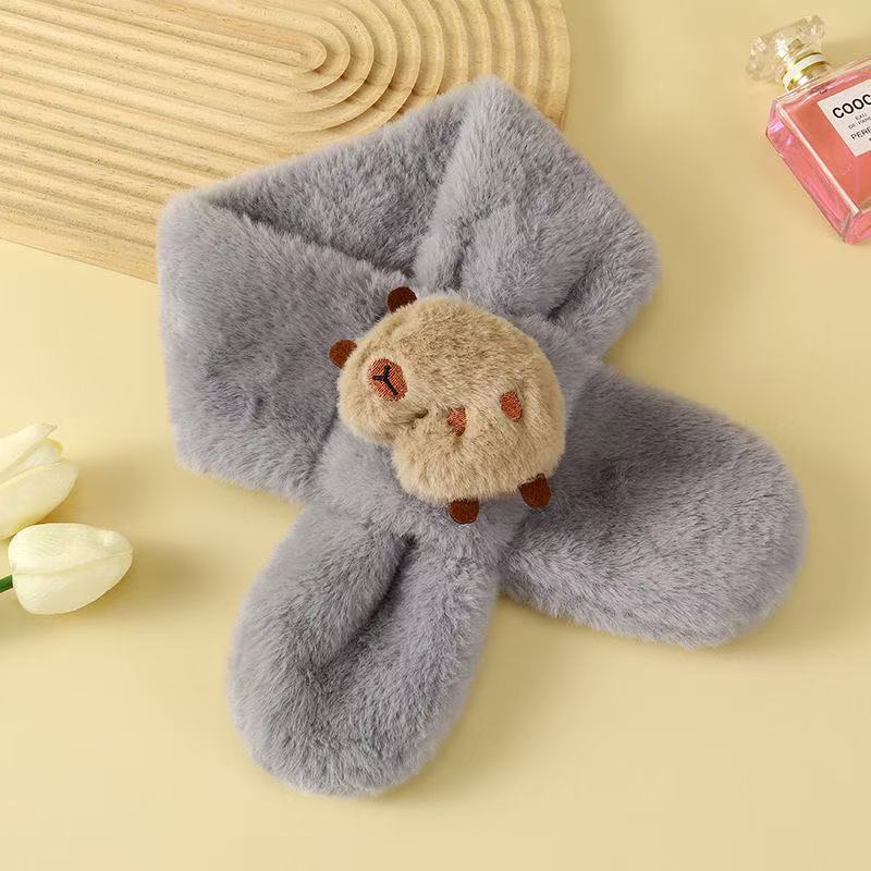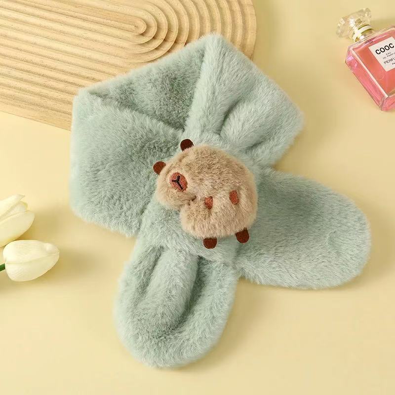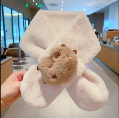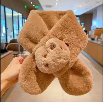 2025 새로운 어린이 모피 스카프 겨울 귀여운 만화 기모 소년 소녀를위한 두꺼운 따뜻한 크로스 스카프