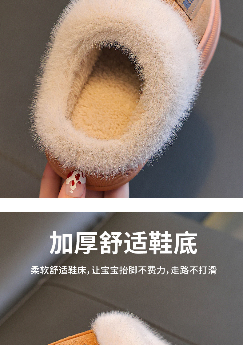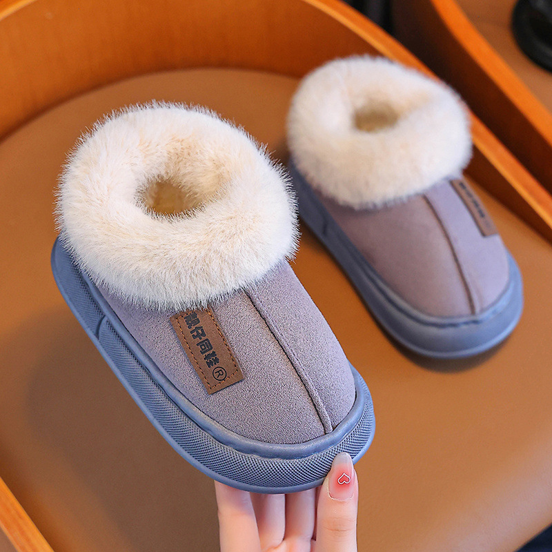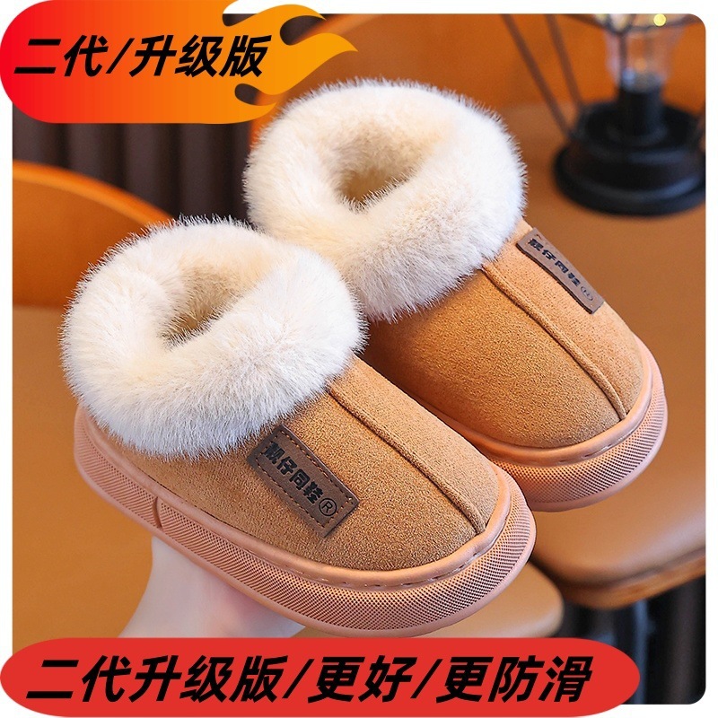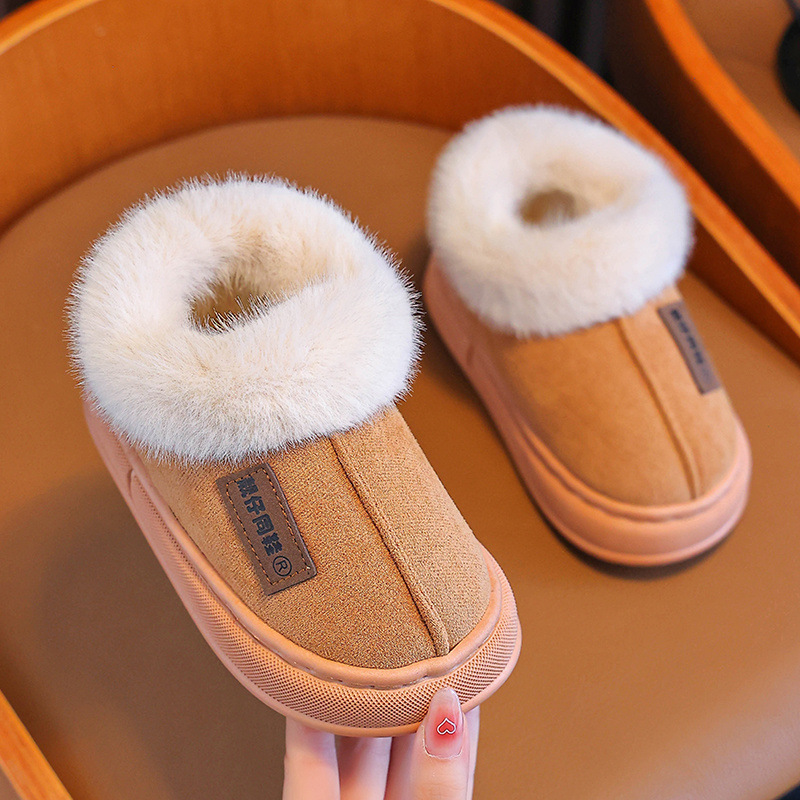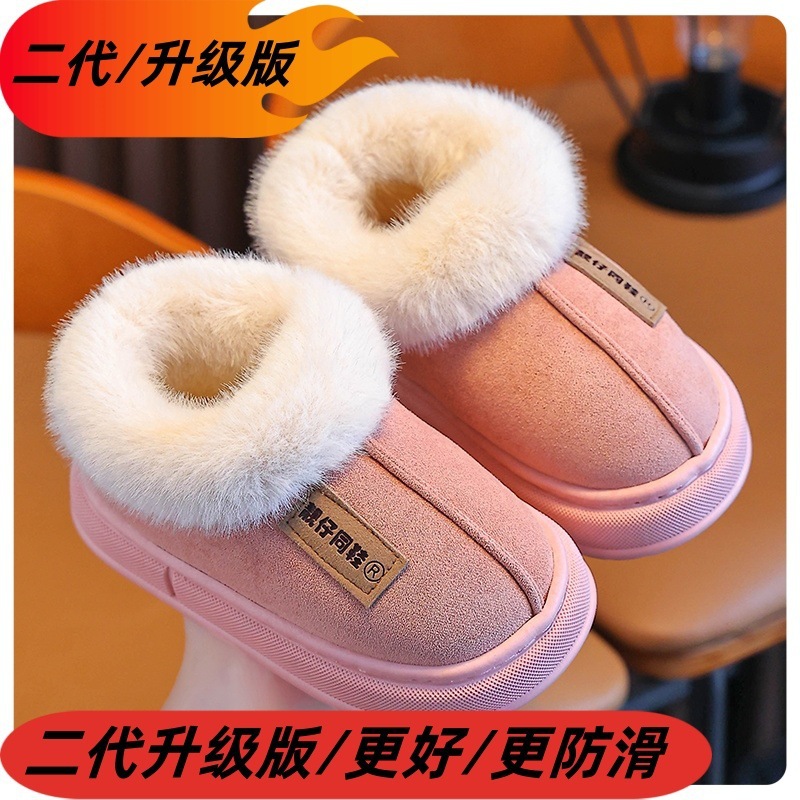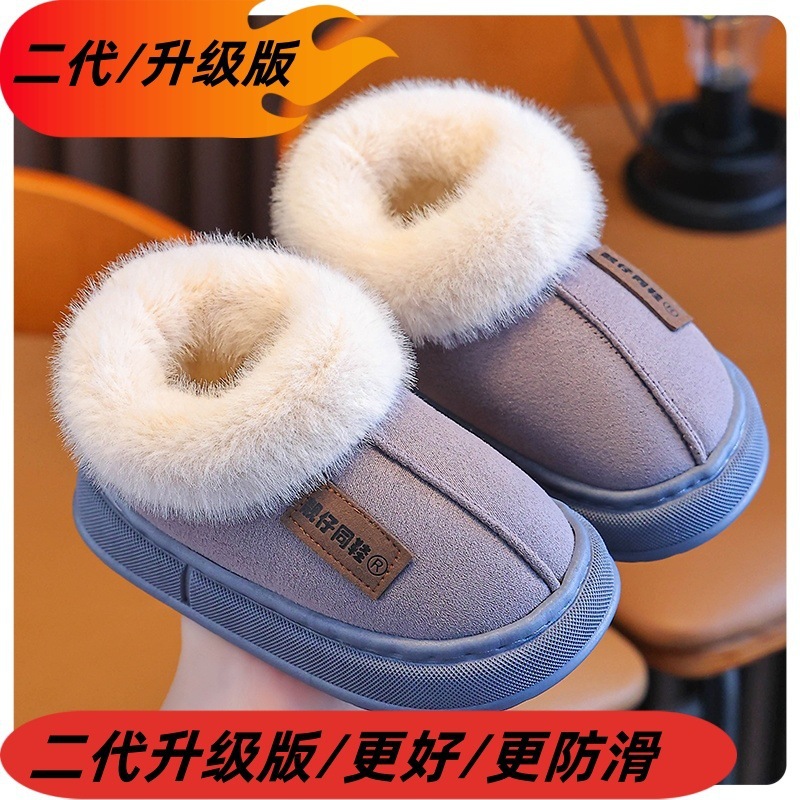 2024 새로운 어린이 면화 슬리퍼 신발 가방 따뜻한 남성과 여성의 어린이 미끄럼 방지 실내 및 실외 스노우 코튼 부츠 슬립 온